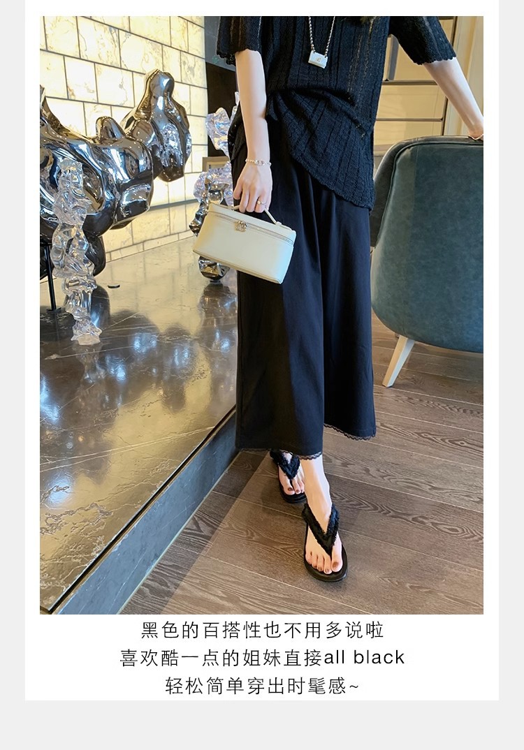 现货秒发!葡萄妈同款鞋时尚真丝毛边平底夹趾真皮软底凉鞋女外穿
