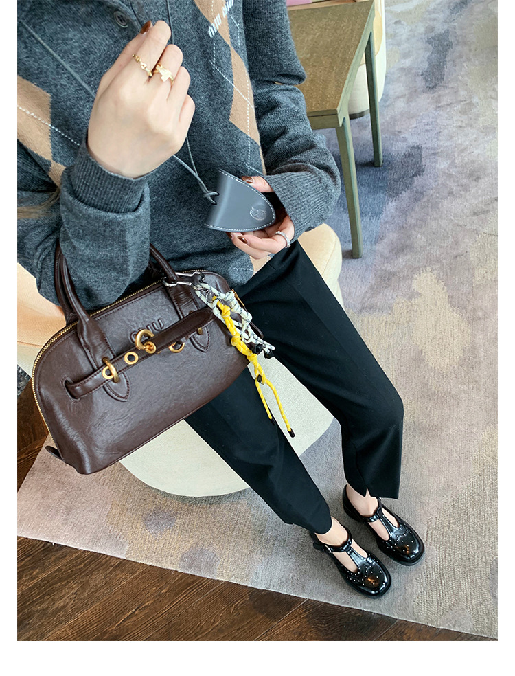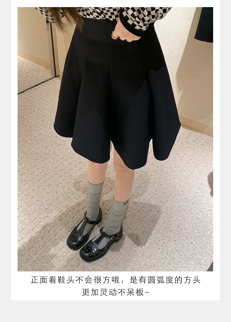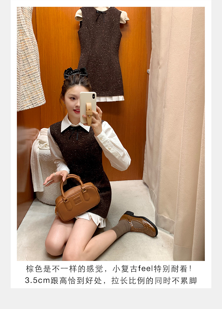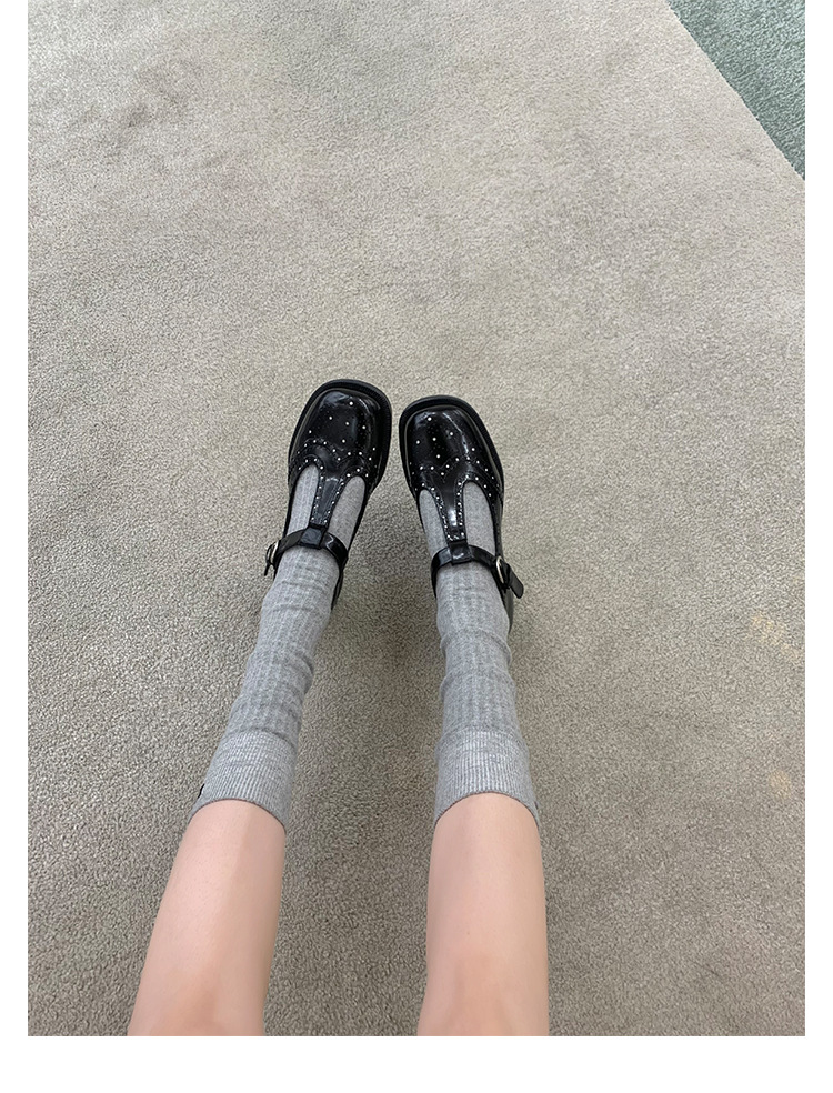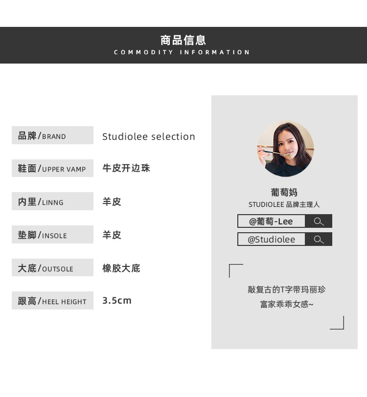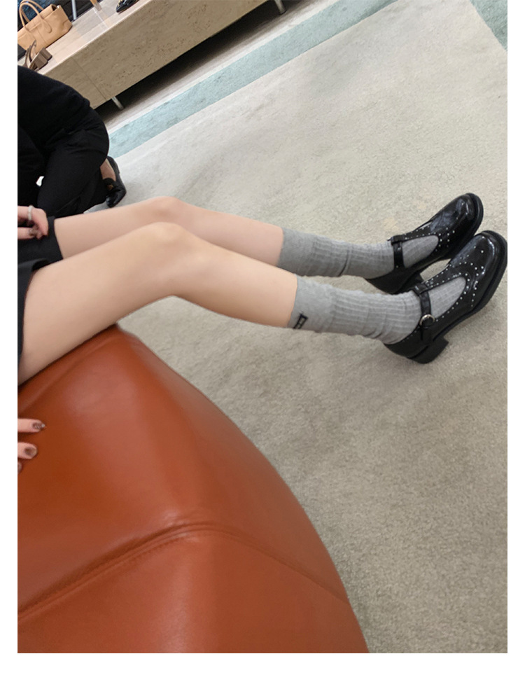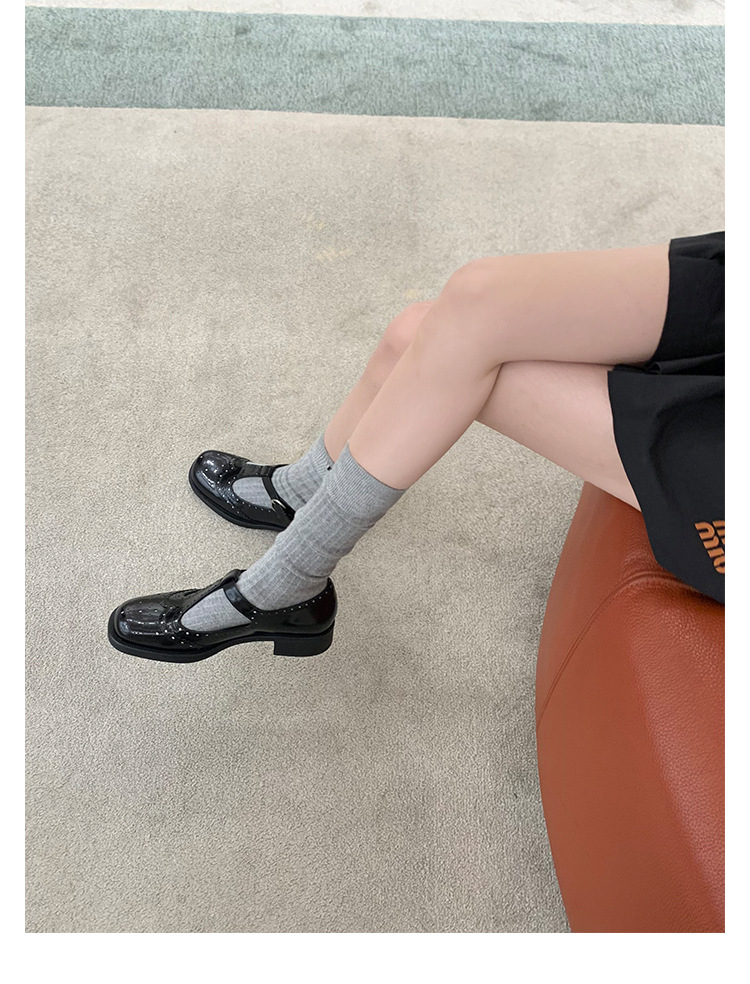 葡萄妈同款布洛克雕花T字带真皮英伦风玛丽珍小皮鞋