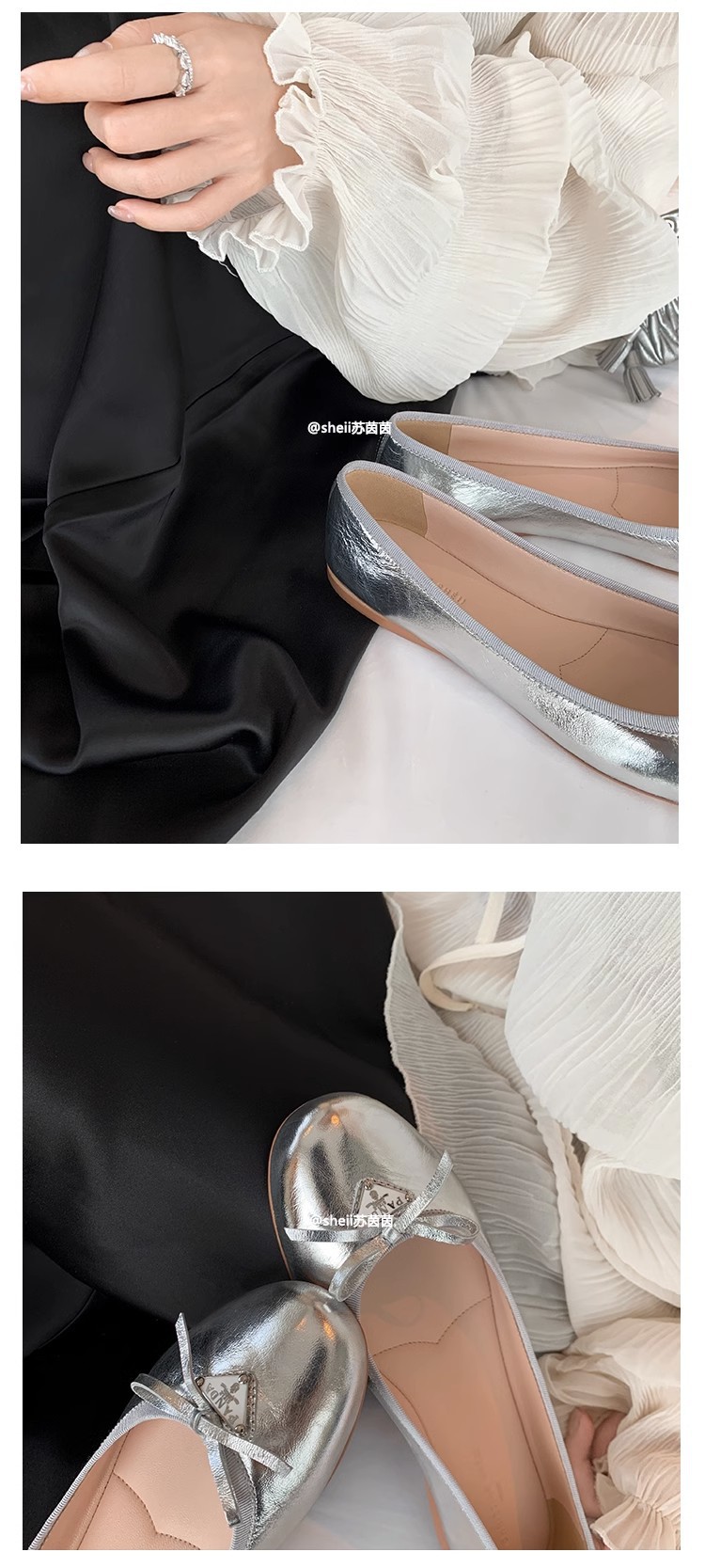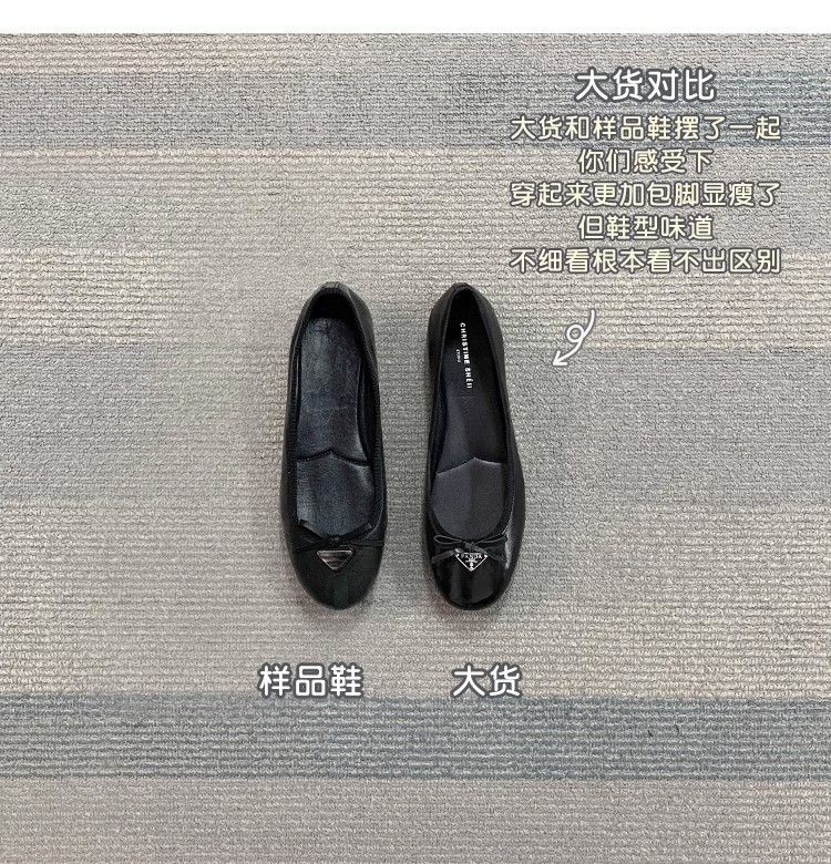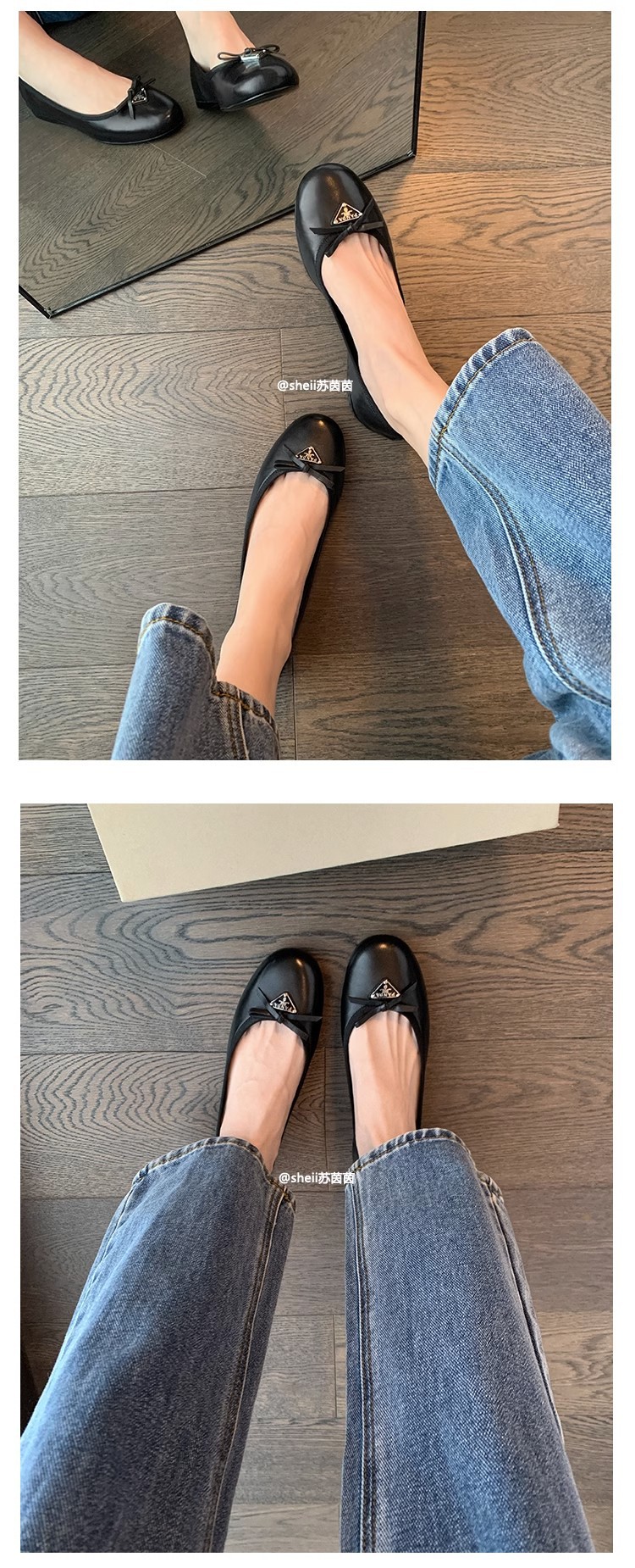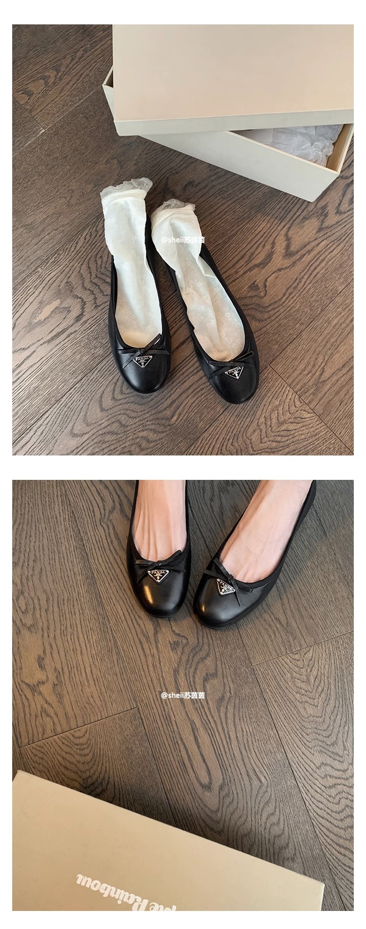 现货秒发!苏茵茵同款鞋进口胎羊皮三角标蝴蝶结平底芭蕾鞋女平底单鞋