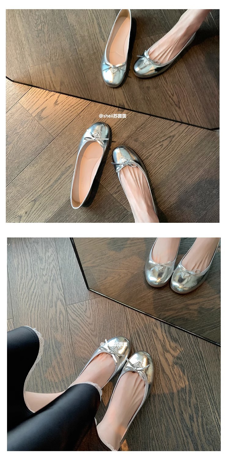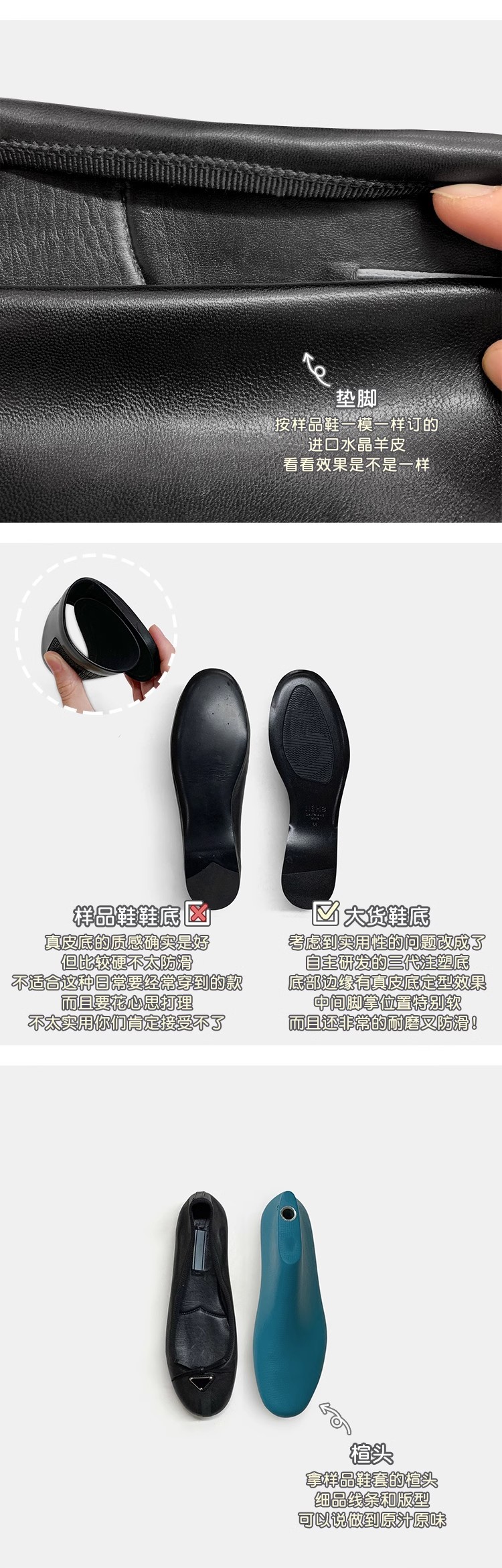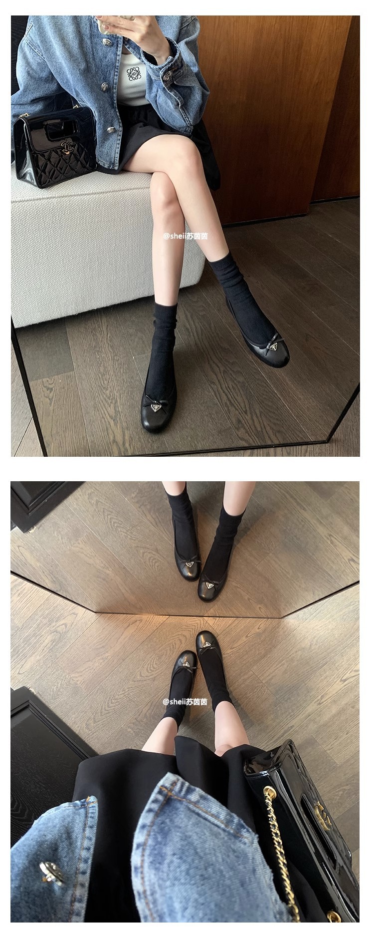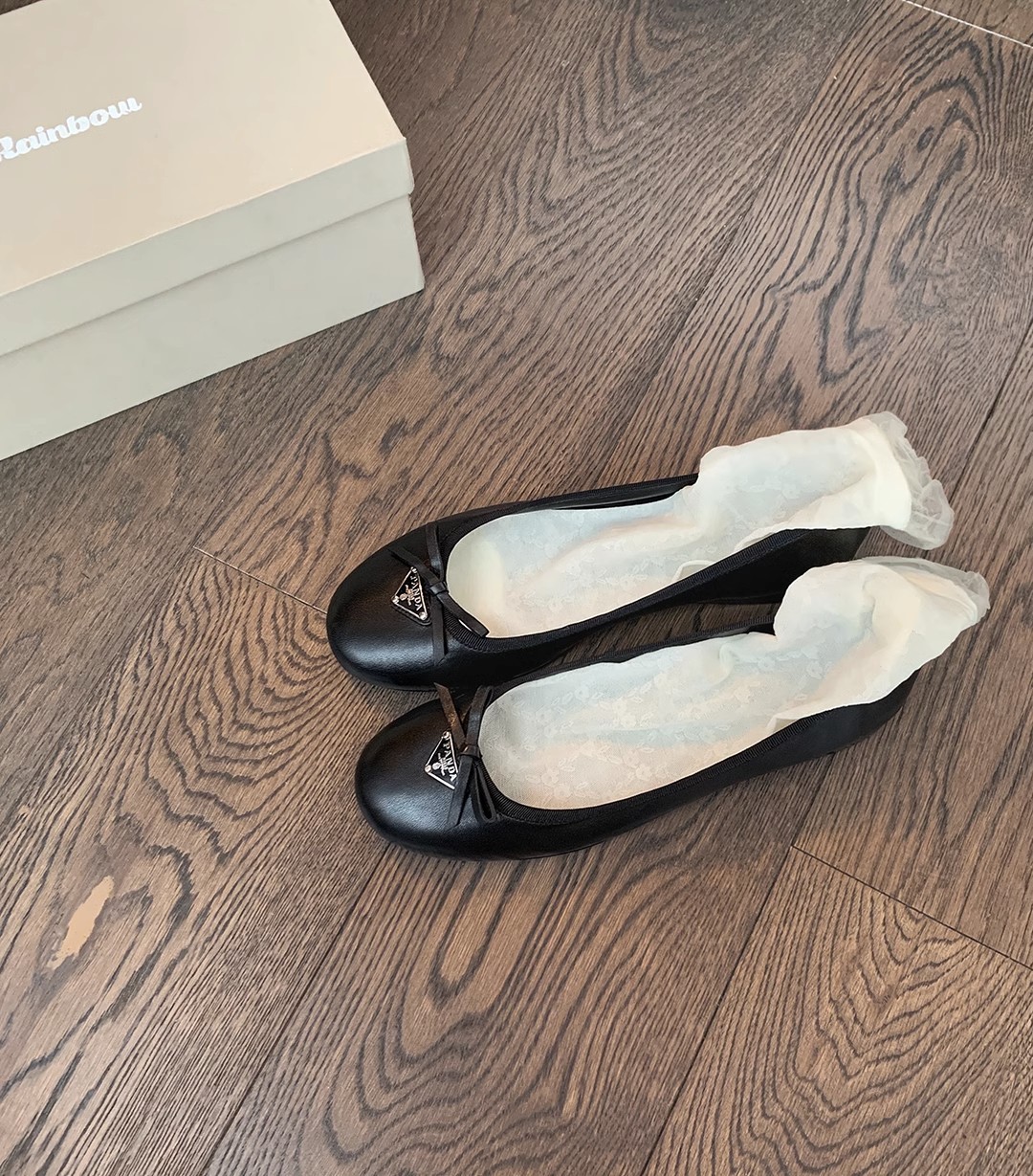 现货秒发!苏茵茵同款鞋进口胎羊皮三角标蝴蝶结平底芭蕾鞋女平底单鞋