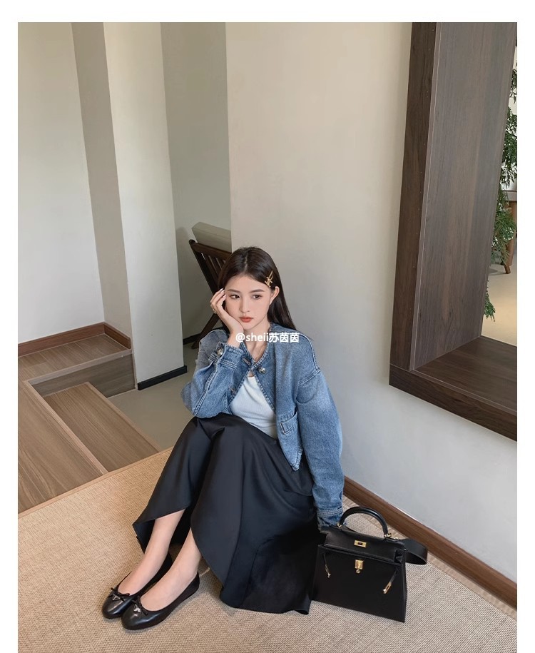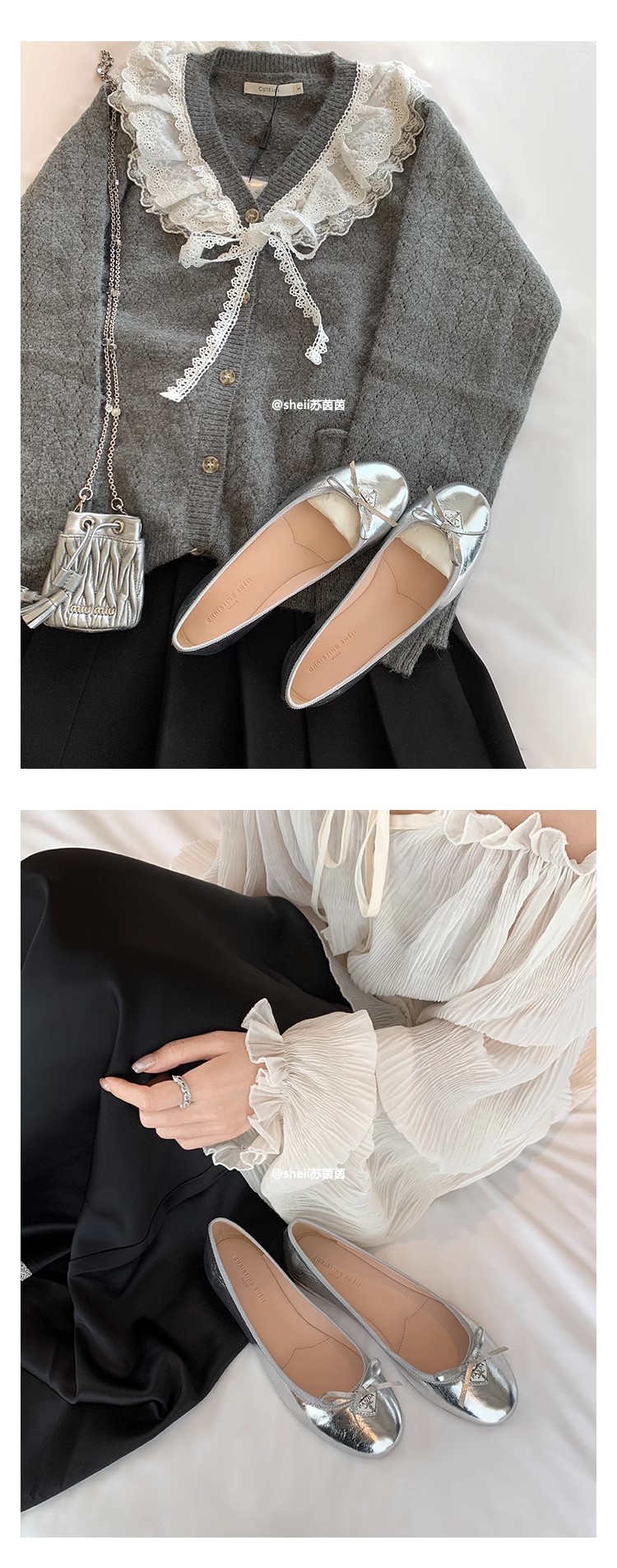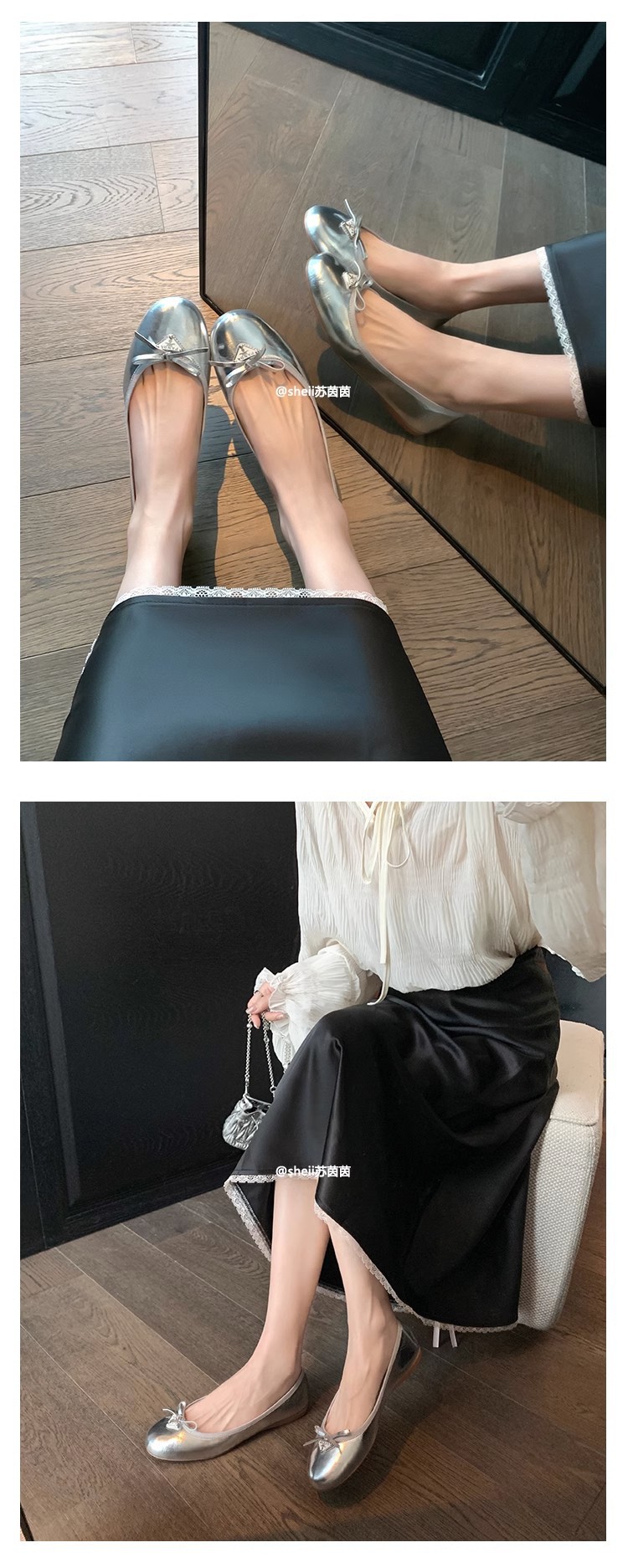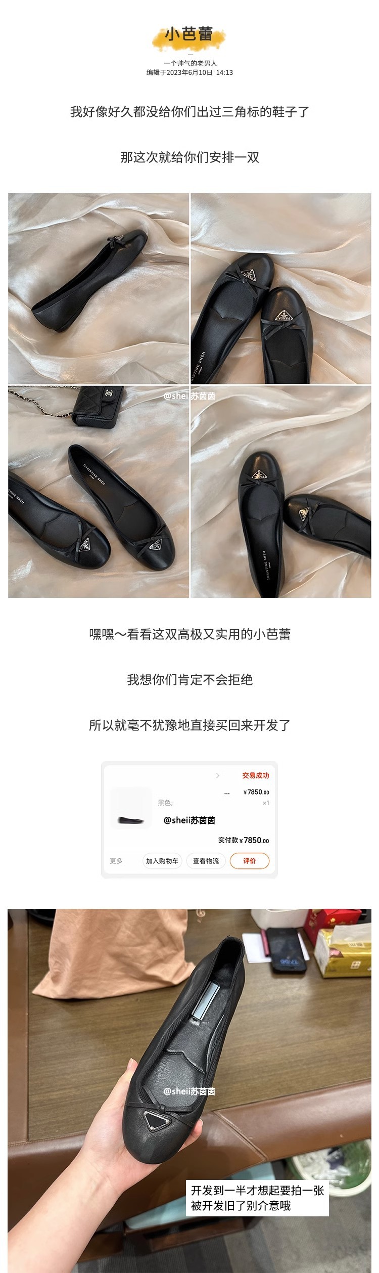 现货秒发!苏茵茵同款鞋进口胎羊皮三角标蝴蝶结平底芭蕾鞋女平底单鞋