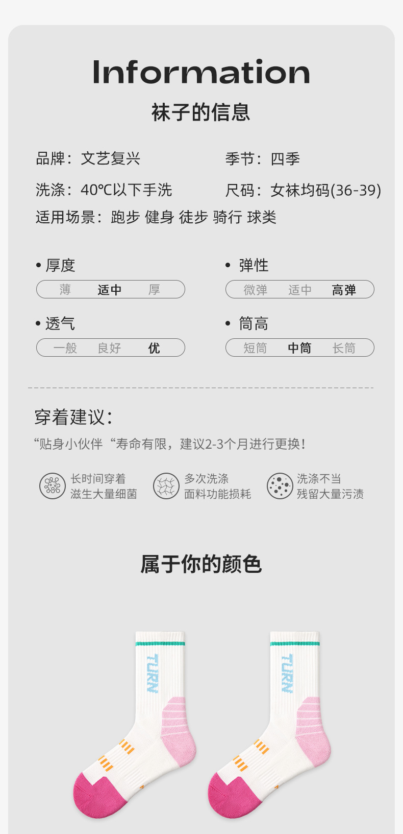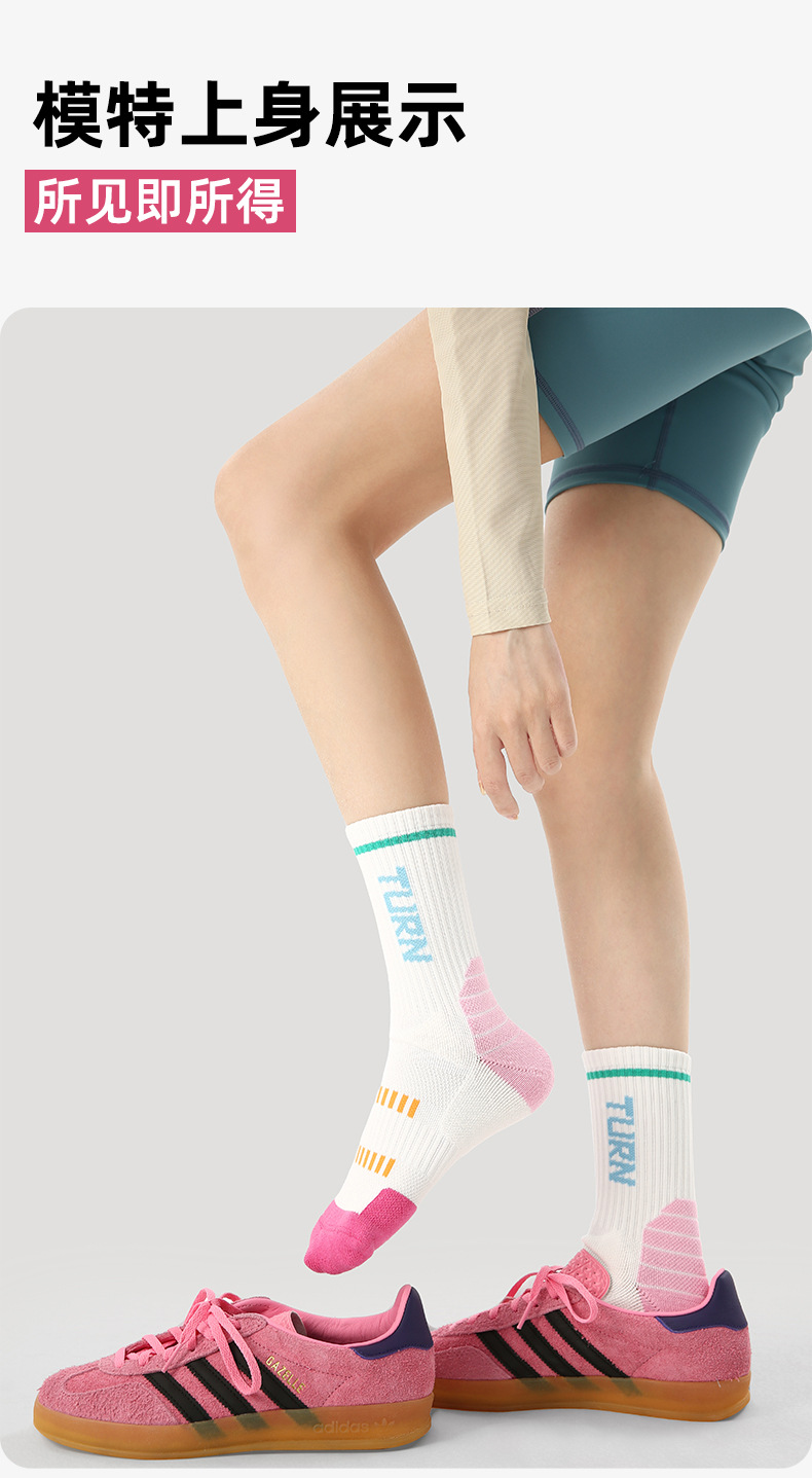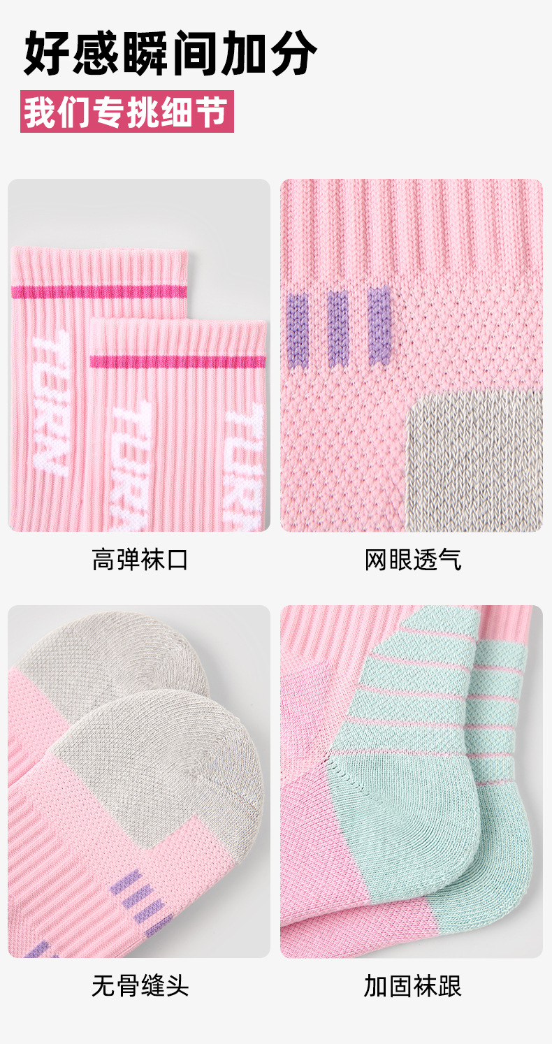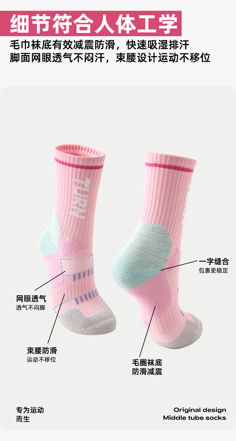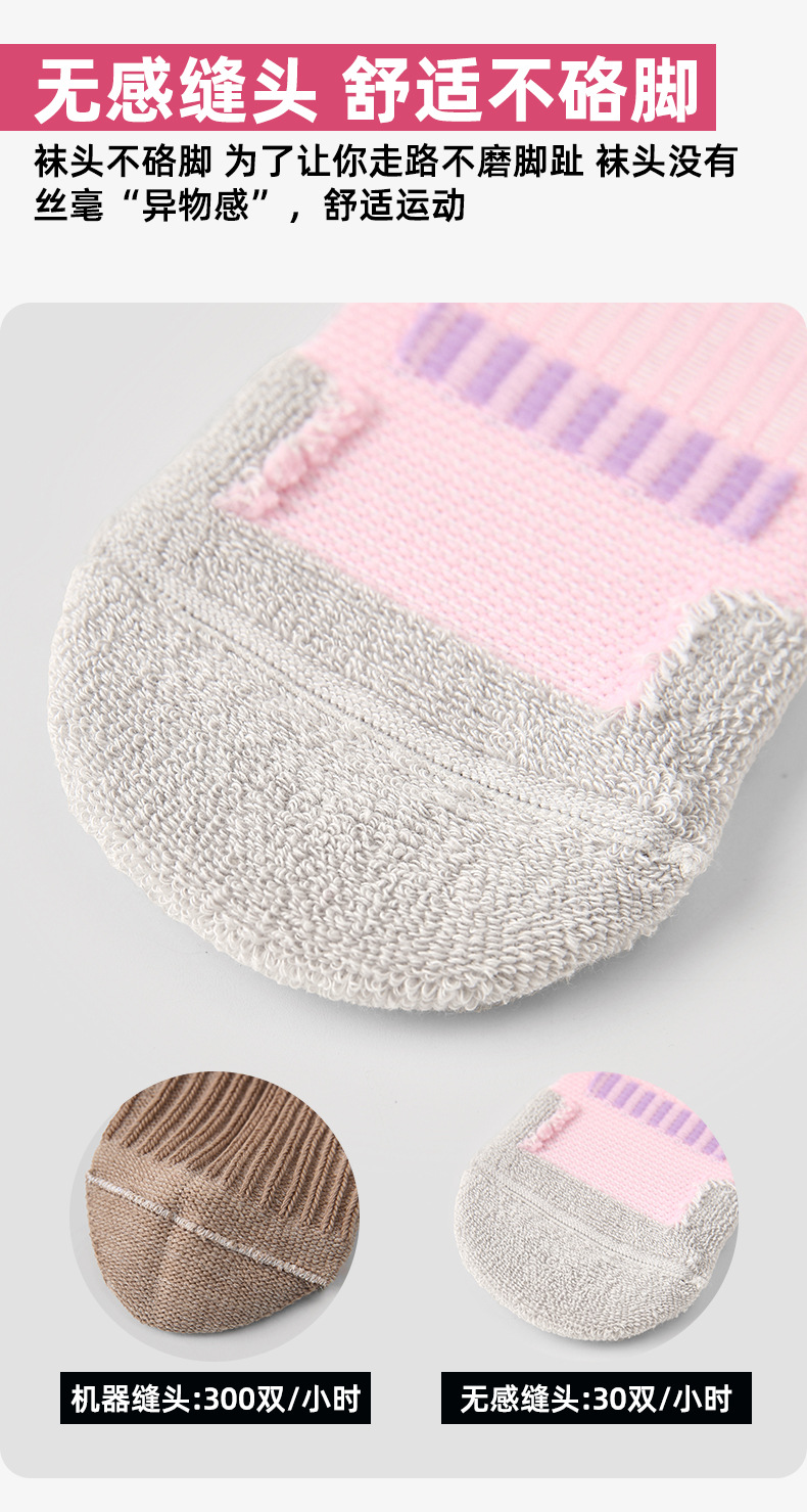 专业毛巾底袜子女跑步跳绳袜吸汗透气白色少女运动袜