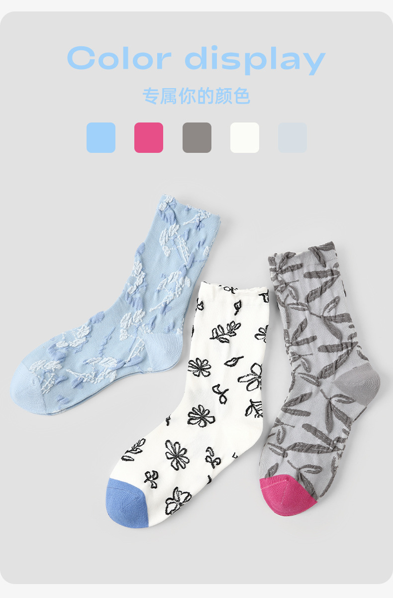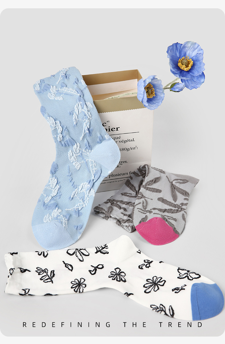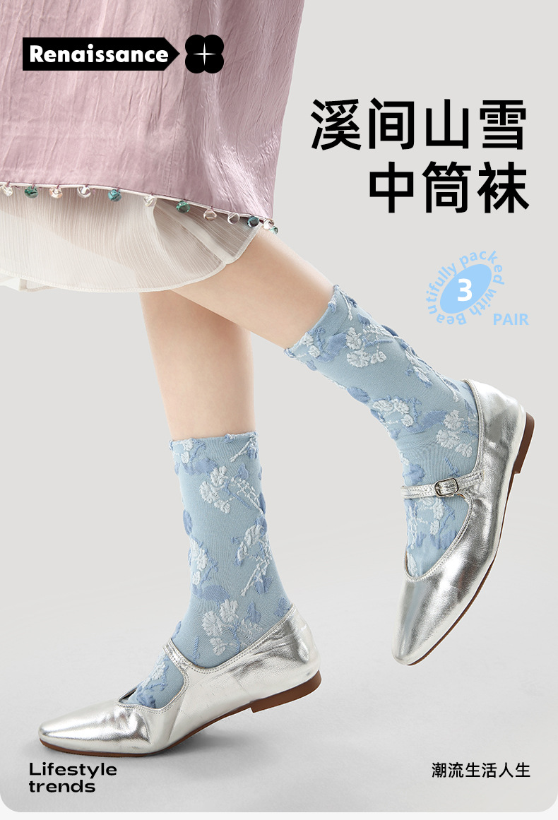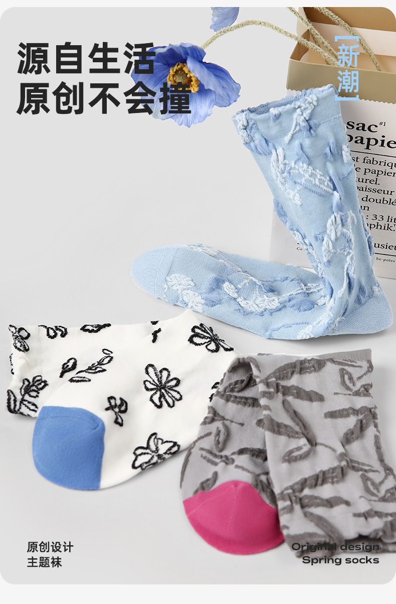 原创女袜春夏季复古浮雕袜子中筒袜文艺ins潮袜子女