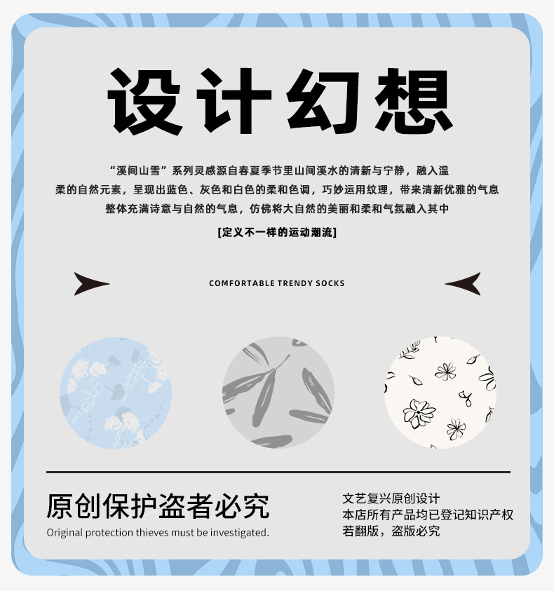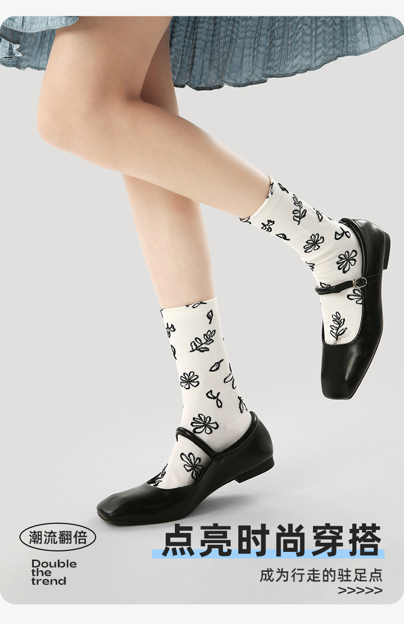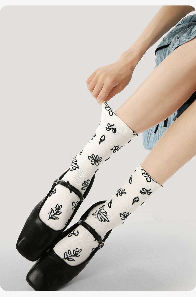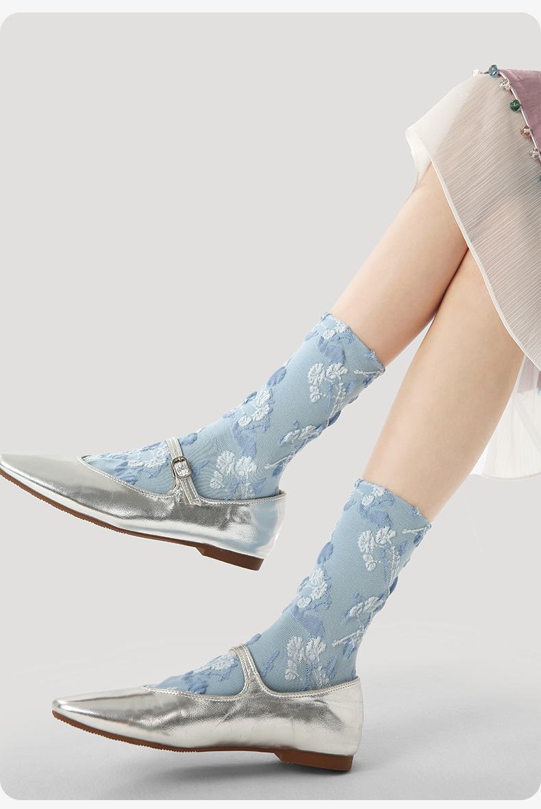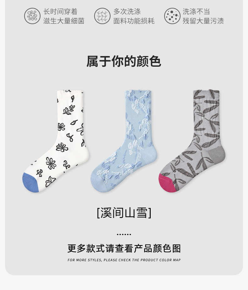 原创女袜春夏季复古浮雕袜子中筒袜文艺ins潮袜子女
