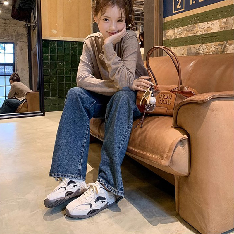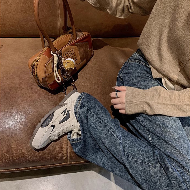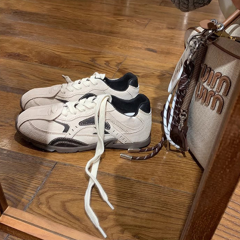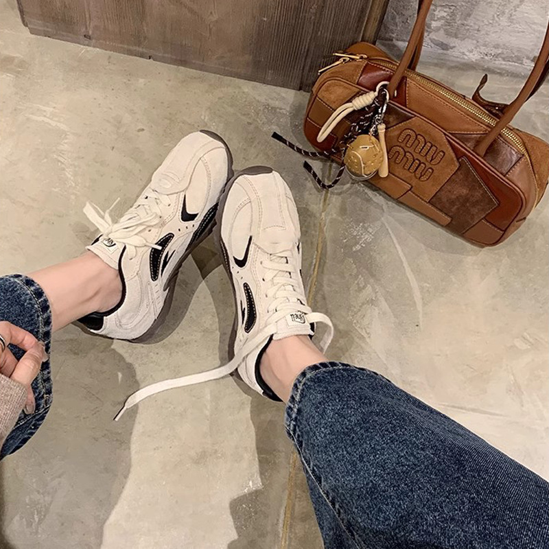 同款韩国练习生~拼色系带增高休闲运动德训鞋女阿甘鞋女