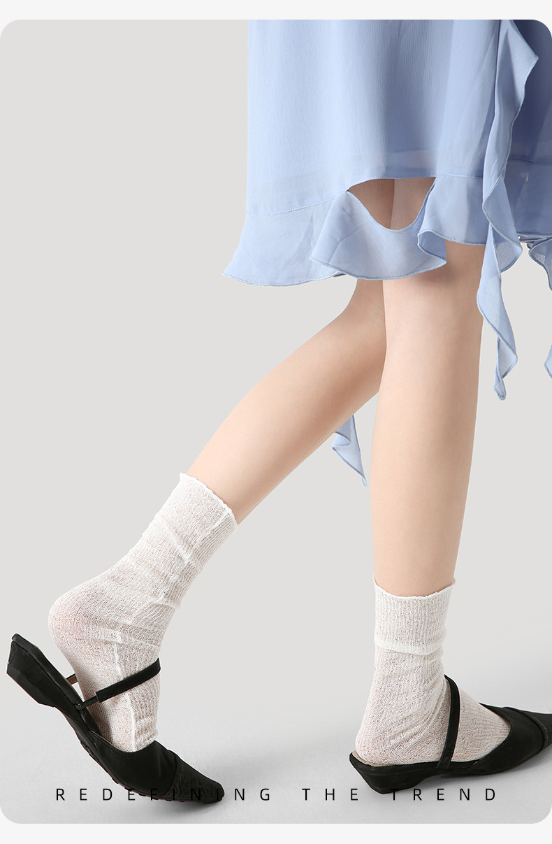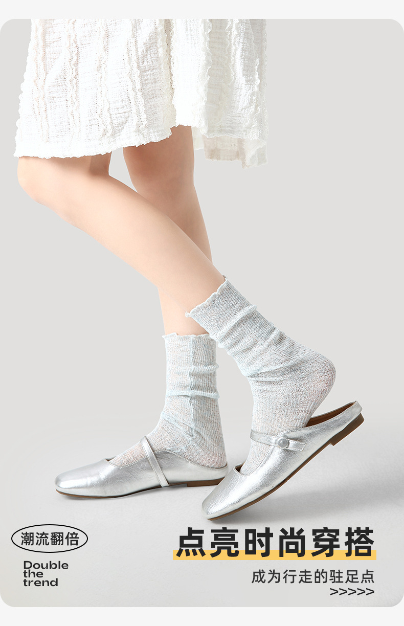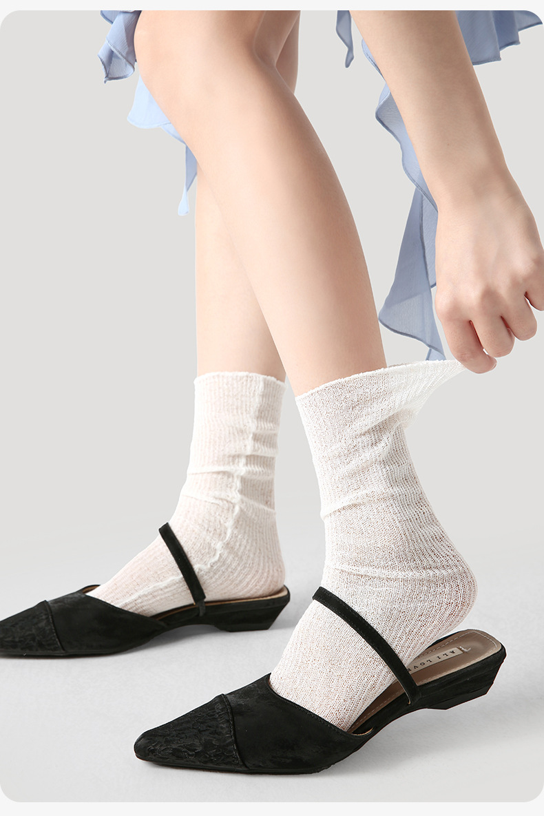 夏季薄款女袜点子纱公主风精编袜网眼夏季透气中筒袜