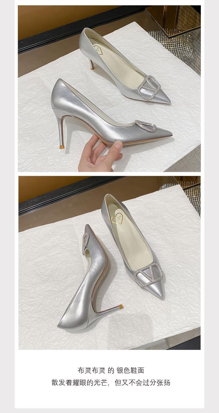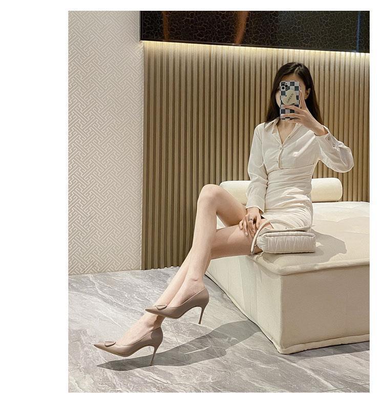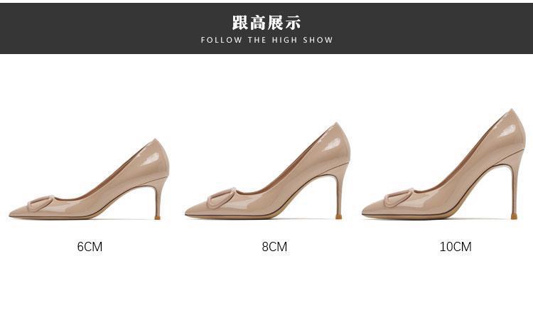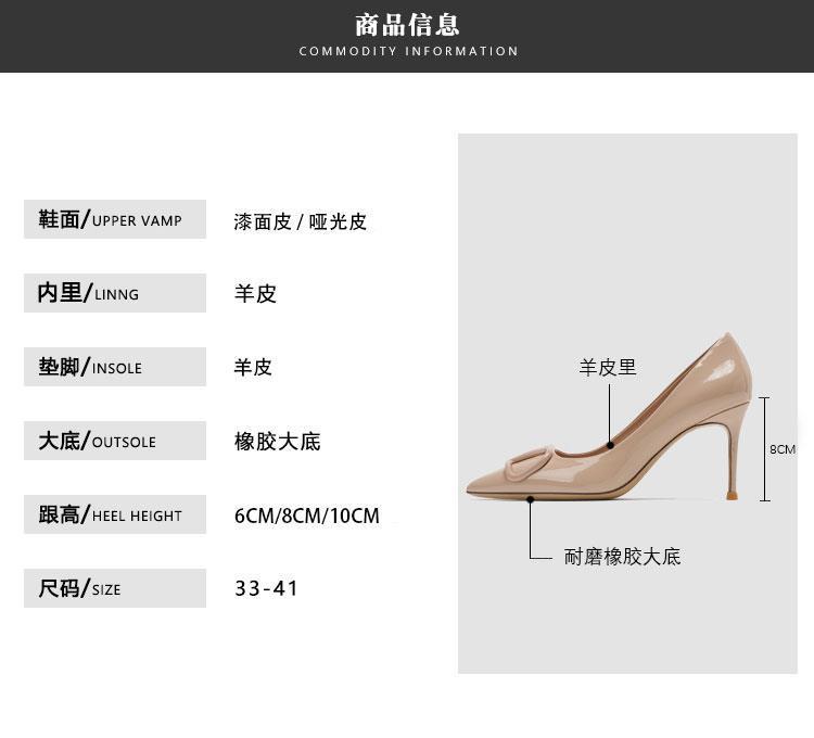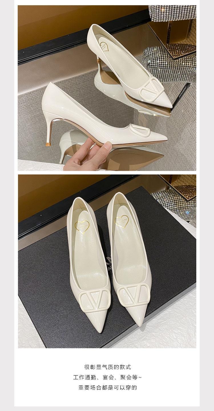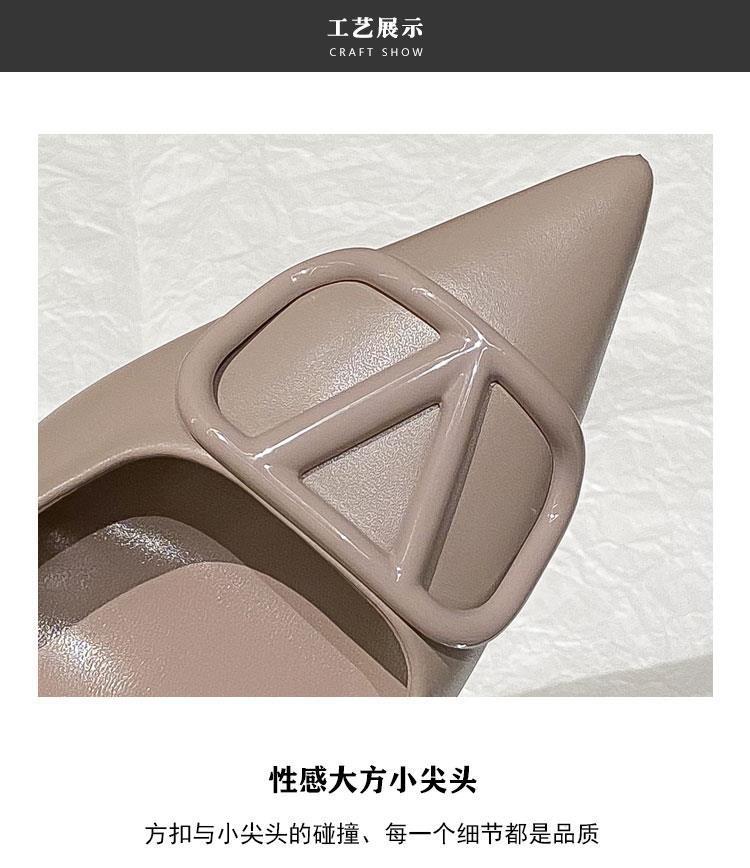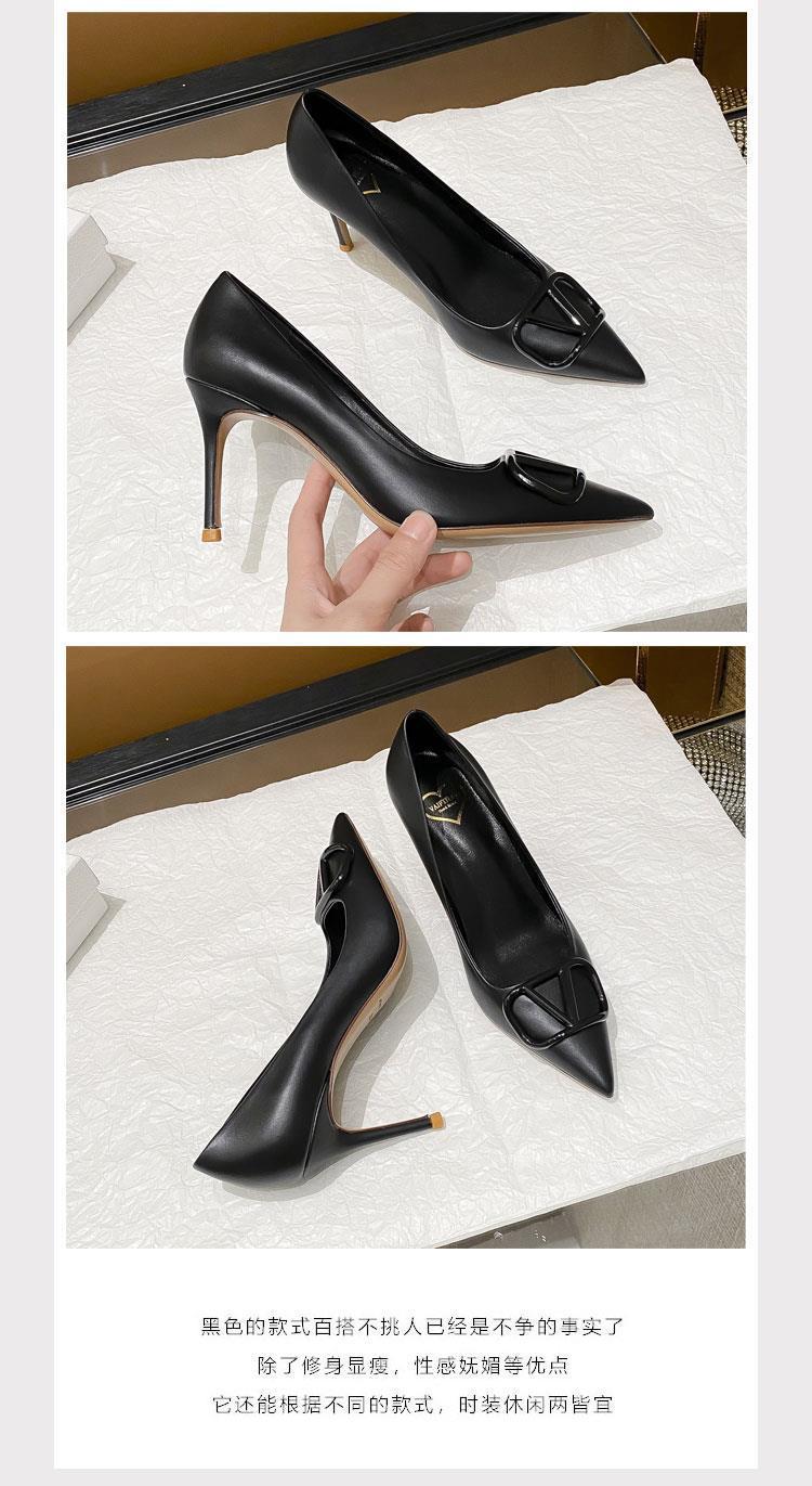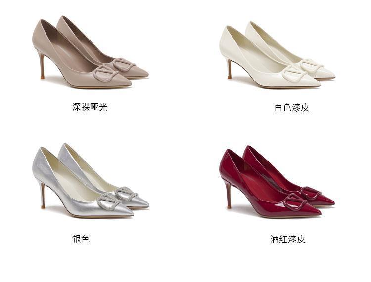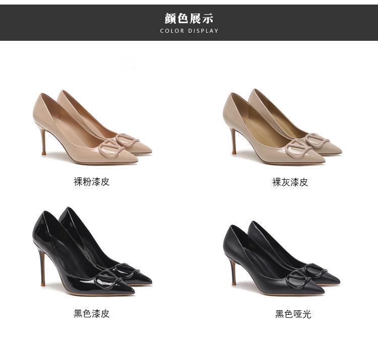 对柜对版 V扣真皮尖头气质名媛包头女鞋单鞋高跟鞋女2024年秋新款
