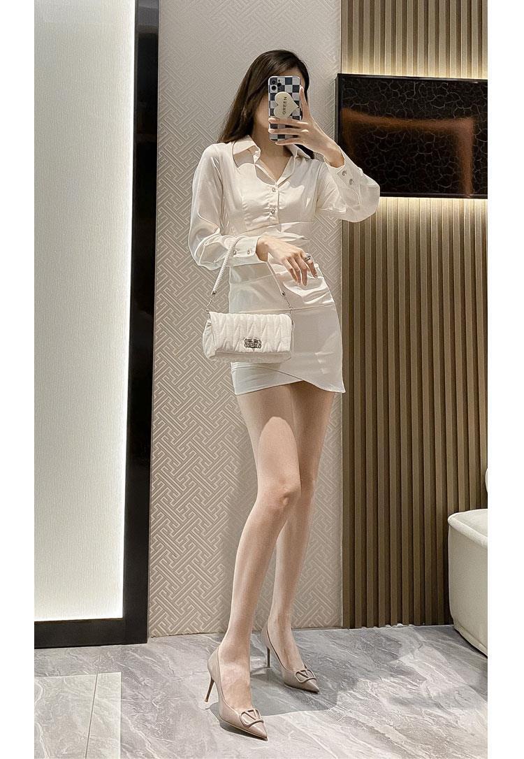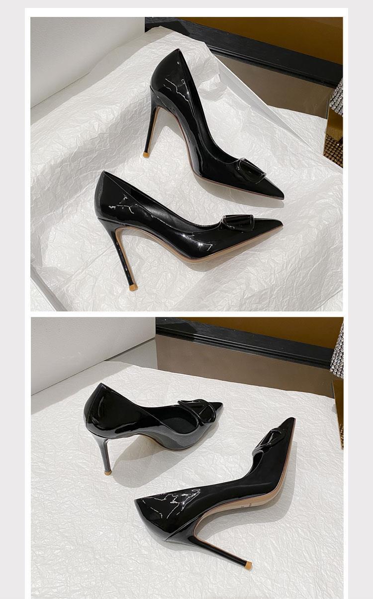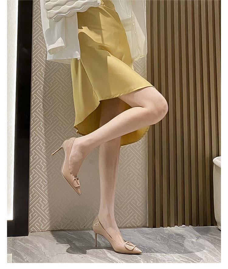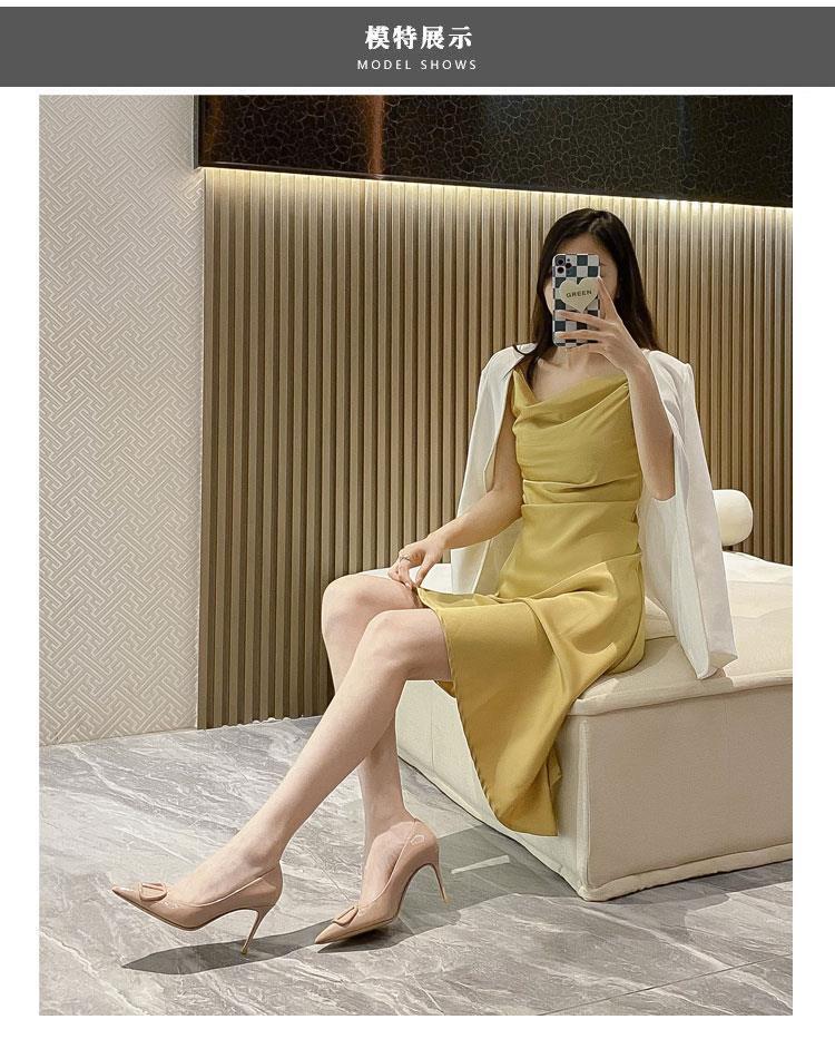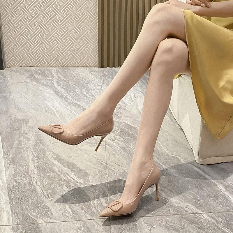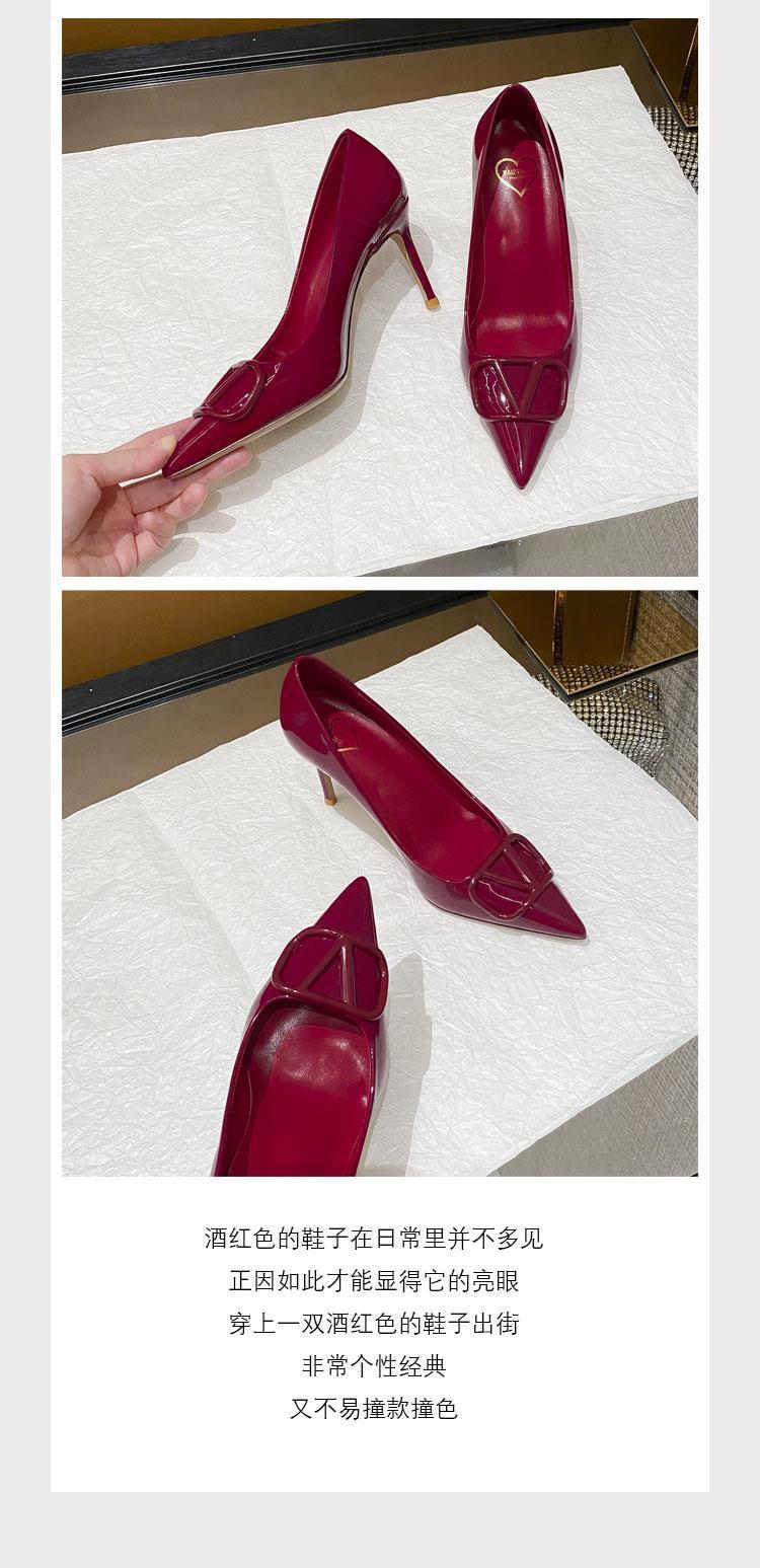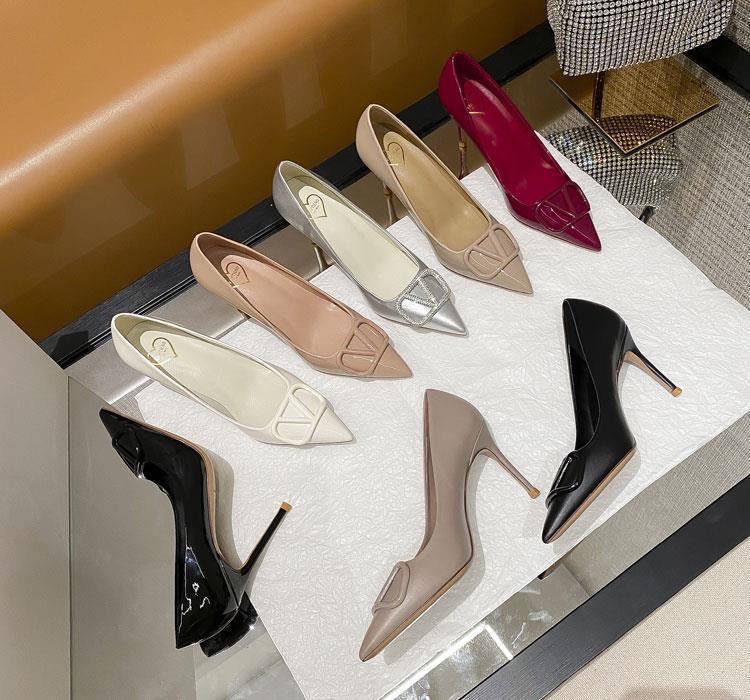 对柜对版 V扣真皮尖头气质名媛包头女鞋单鞋高跟鞋女2024年秋新款