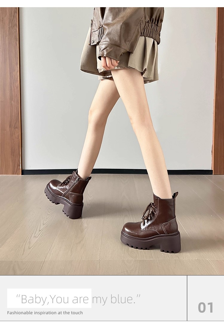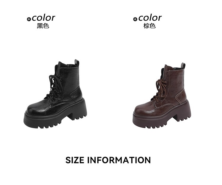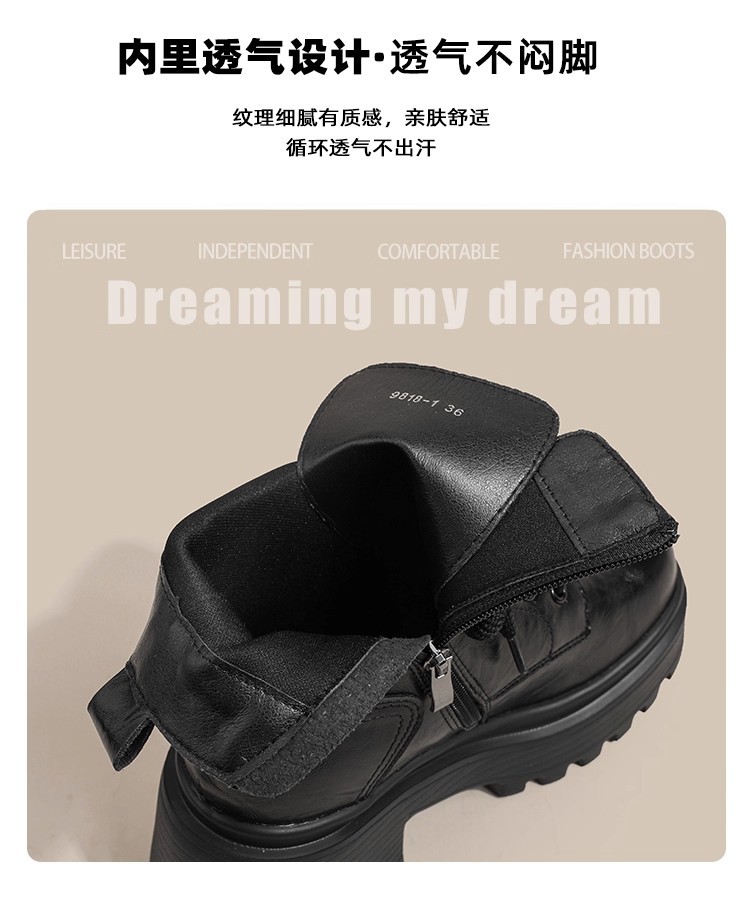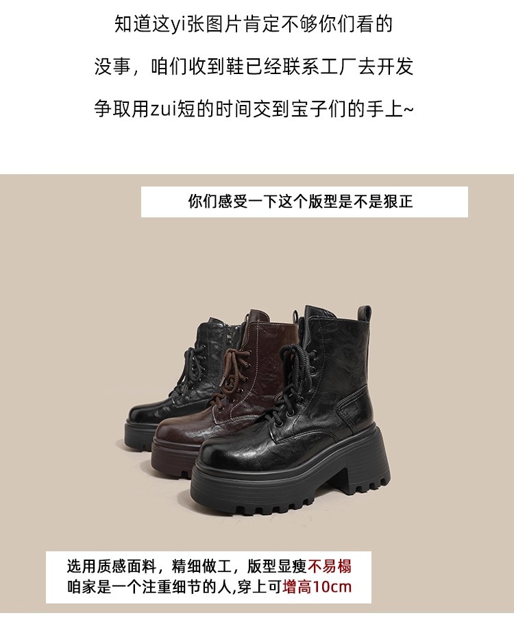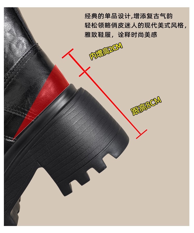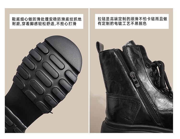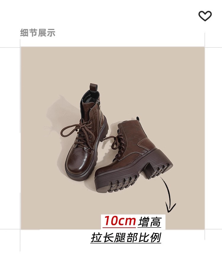 小个子内增高马丁靴女秋冬加绒显瘦厚底粗跟短靴英伦风高跟瘦瘦女靴