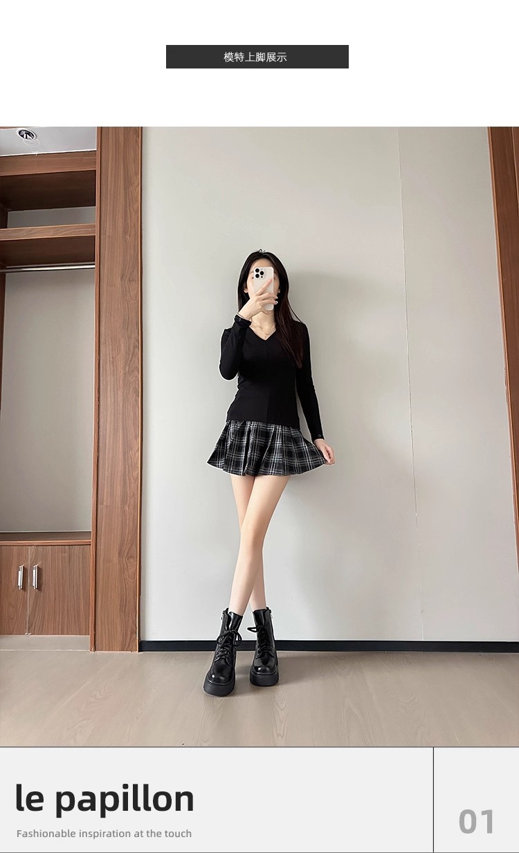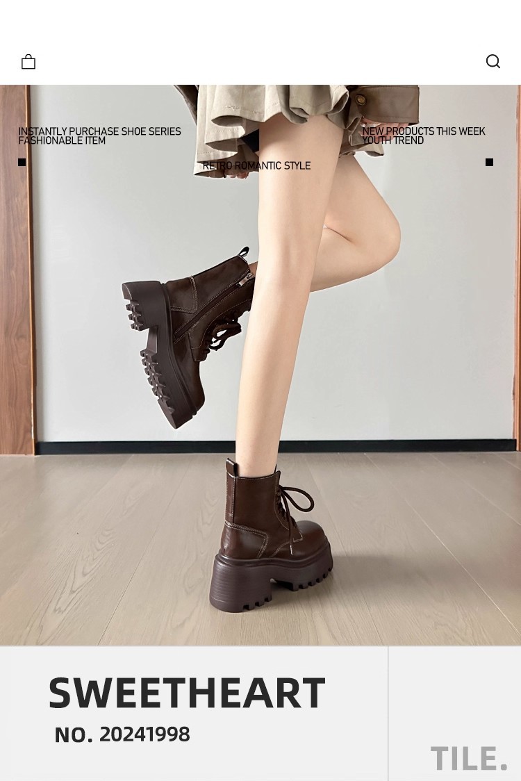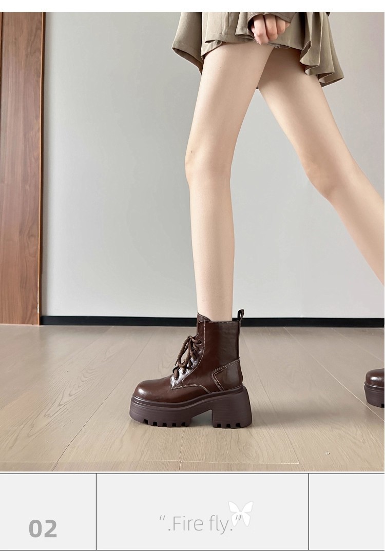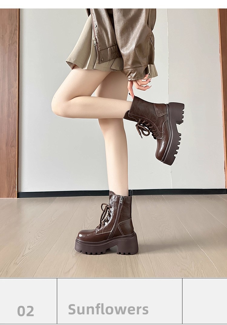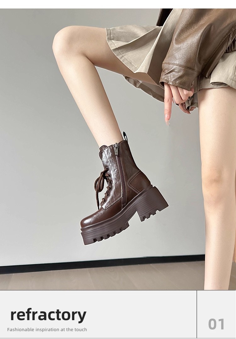 小个子内增高马丁靴女秋冬加绒显瘦厚底粗跟短靴英伦风高跟瘦瘦女靴