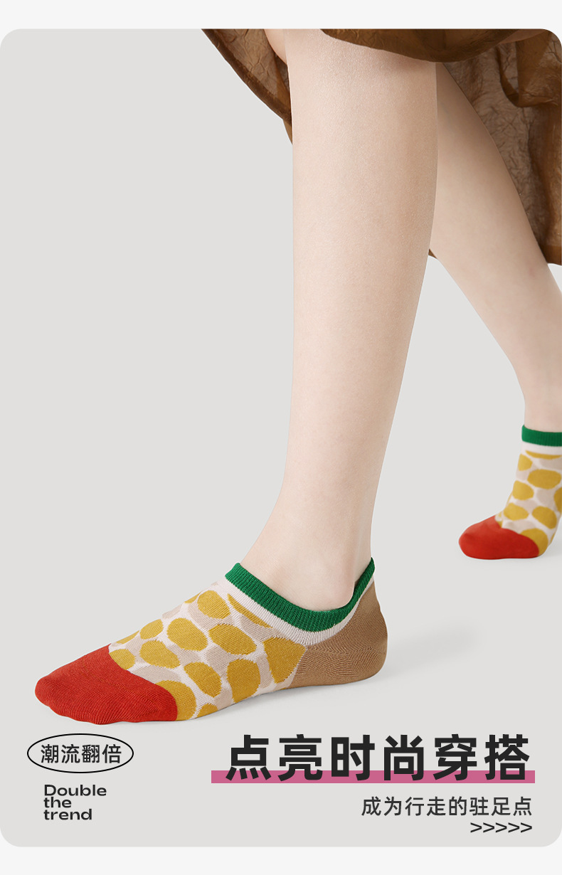 文艺复兴袜子女短袜日系撞色波点春夏船袜女防滑不掉跟浅口隐形袜