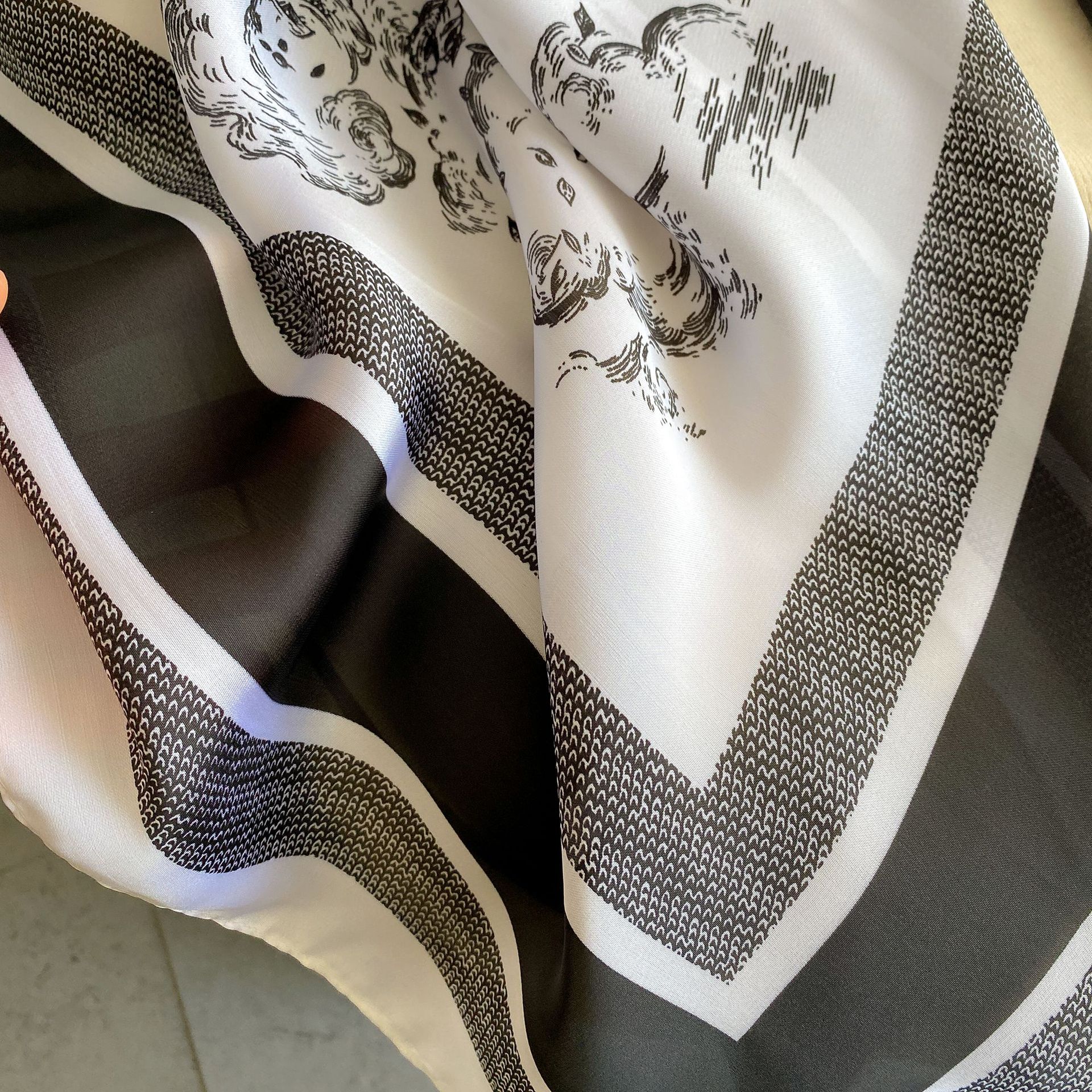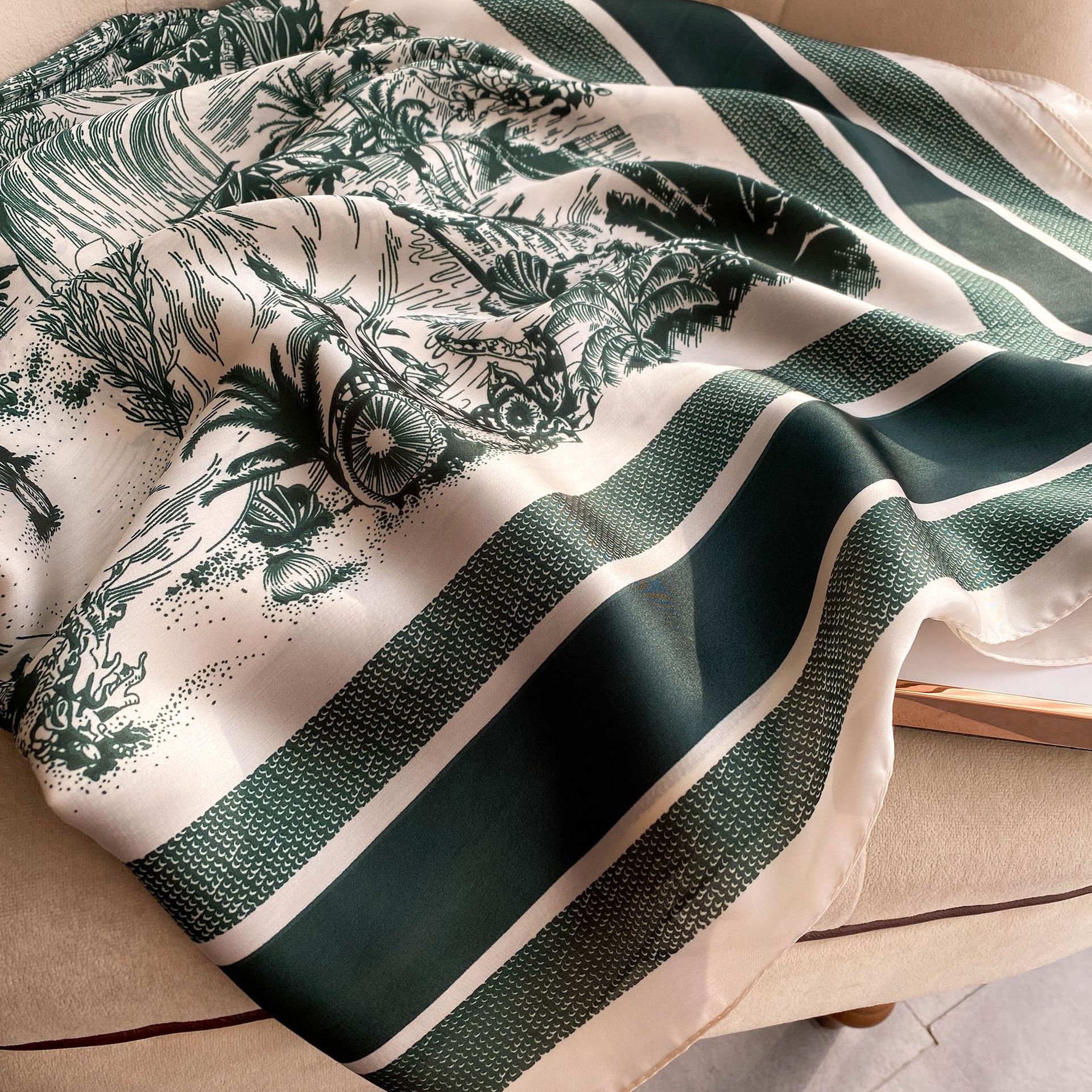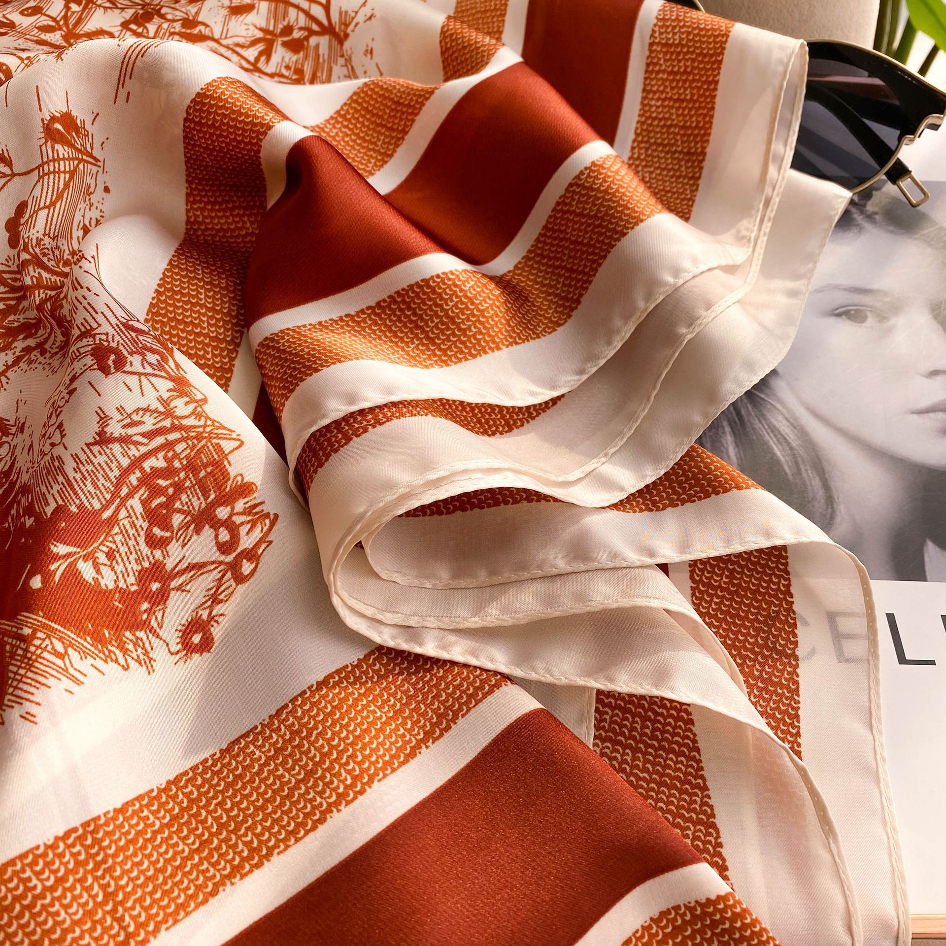 新款真丝丝巾女110cm平纹大方巾百搭印花装饰防晒披肩