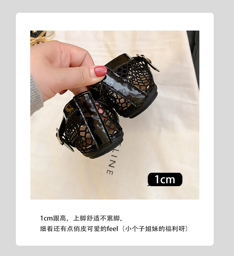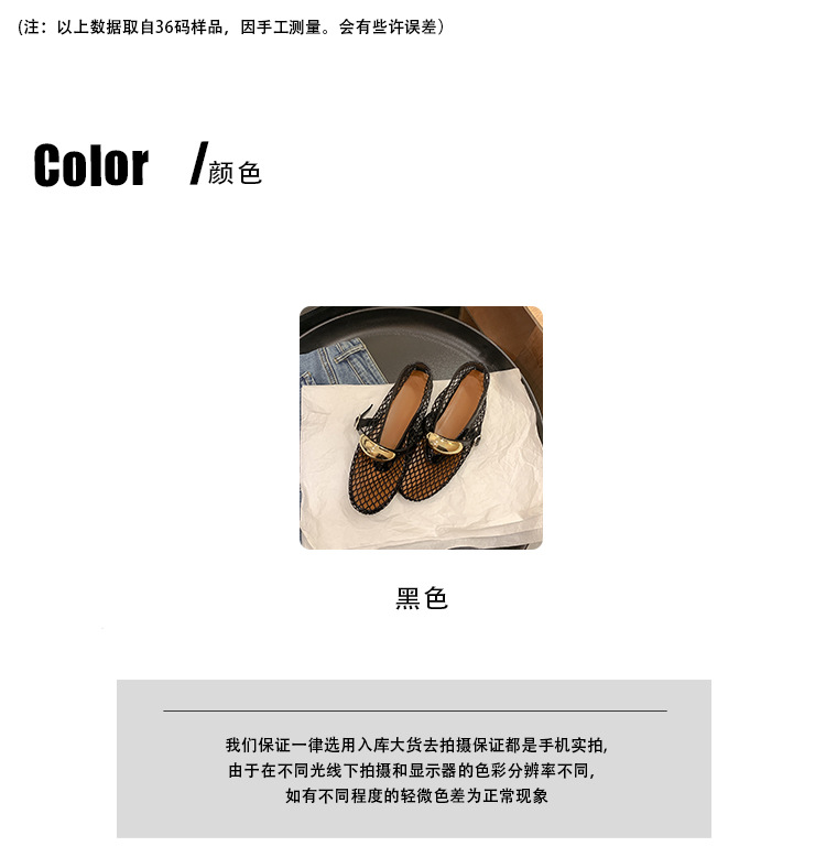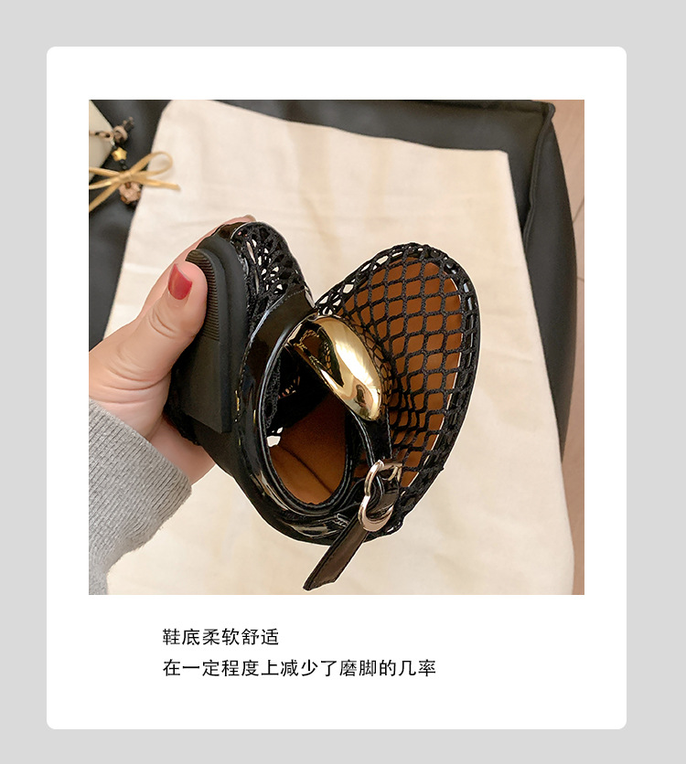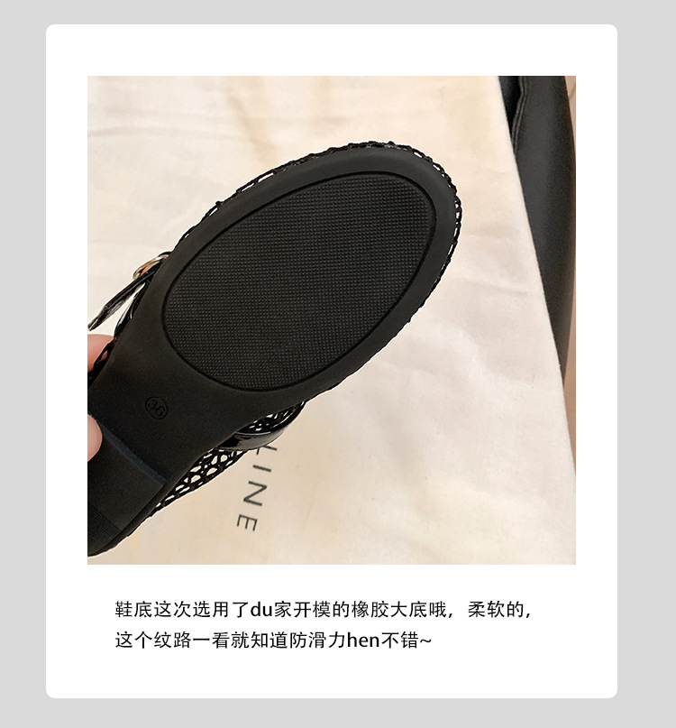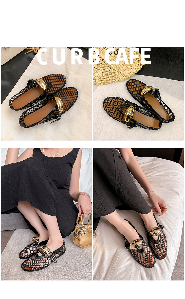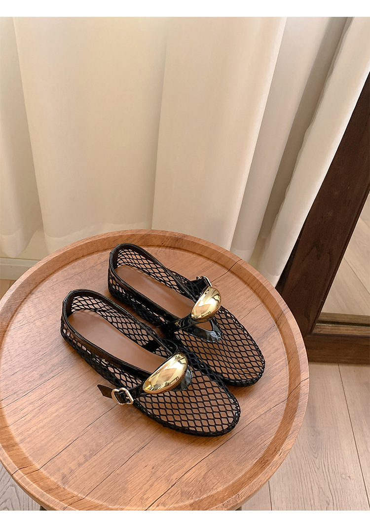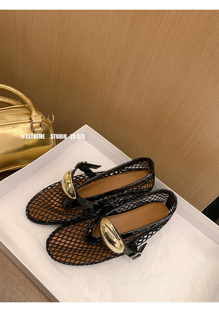 欧美时尚镂空网面凉鞋女夏季新款金属扣圆头平底浅口玛丽珍单鞋