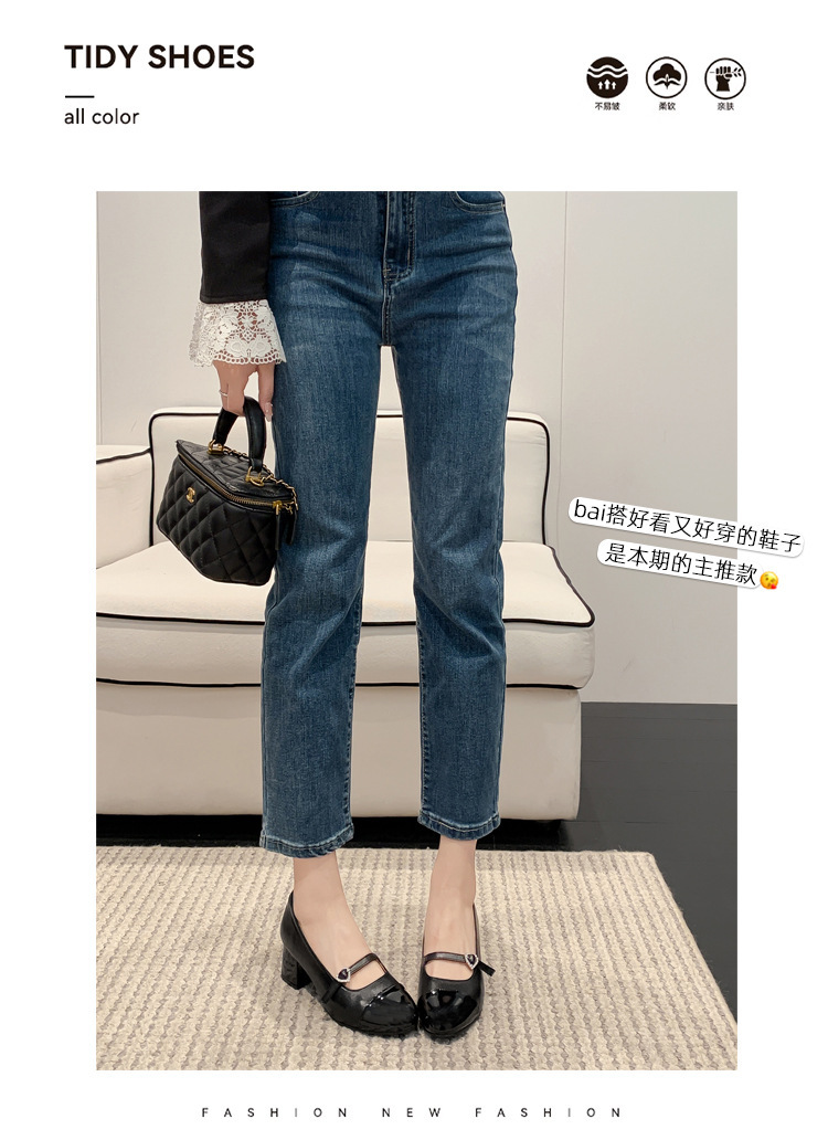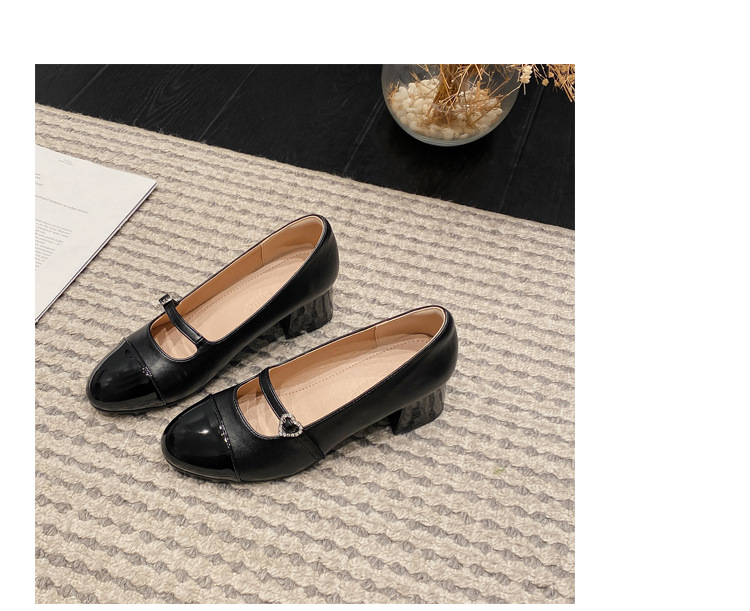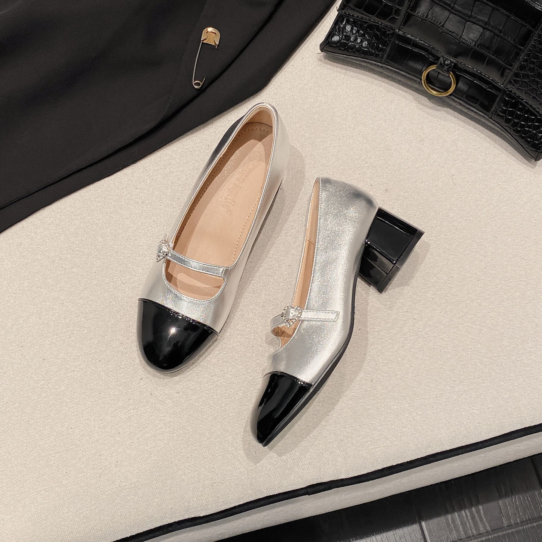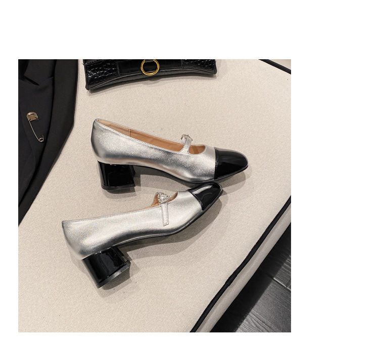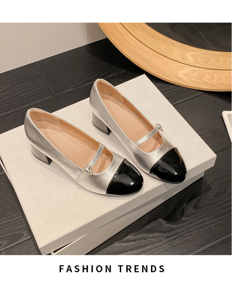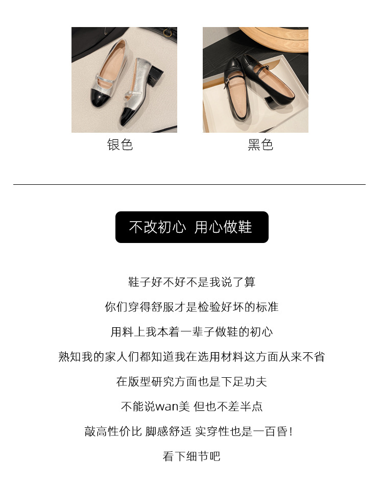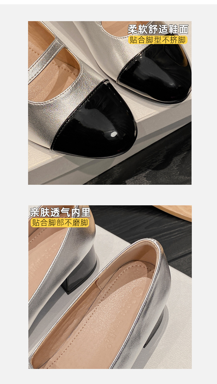 PANDA EYES 法式小香风拼色玛丽珍鞋女春季新款浅口一字扣带粗跟单鞋