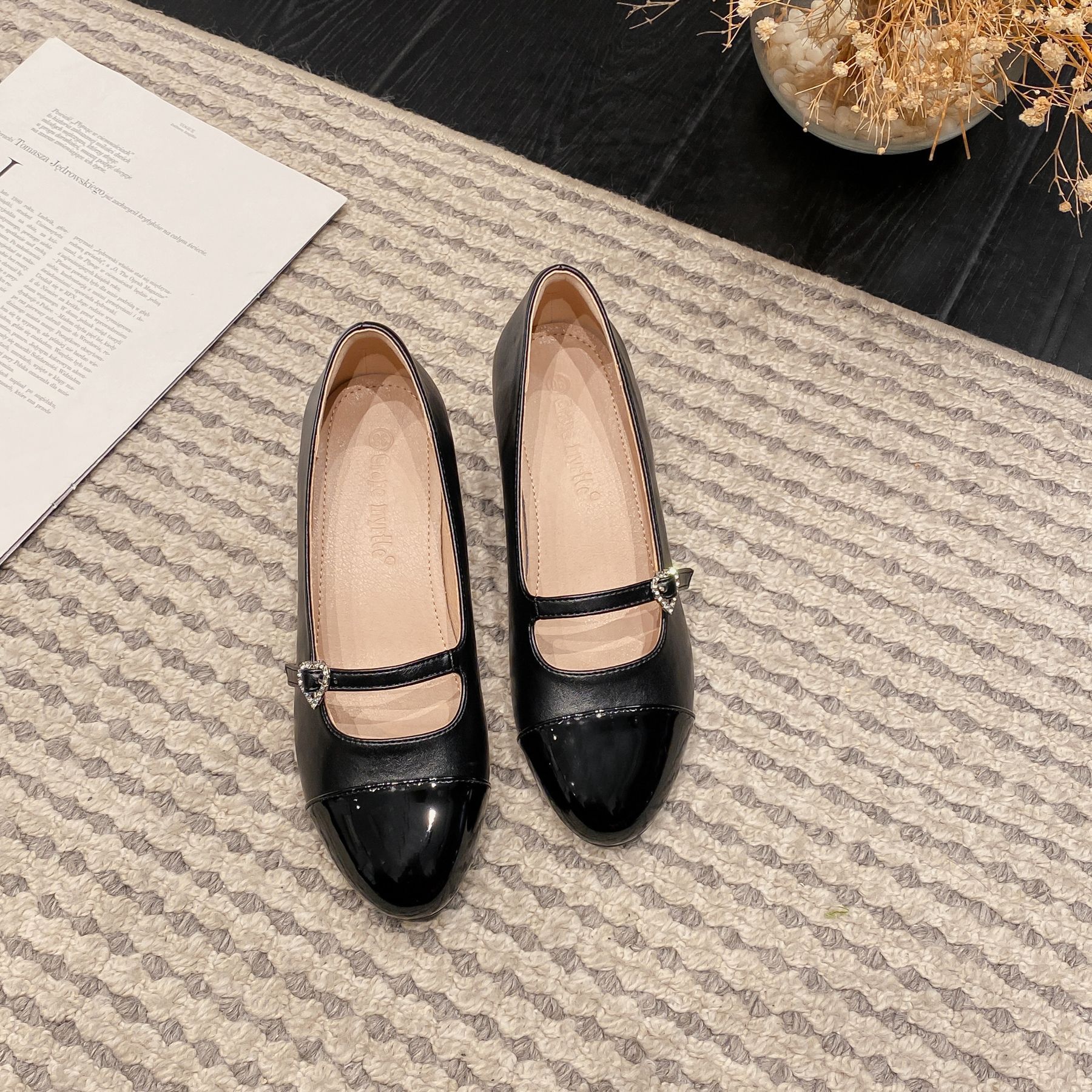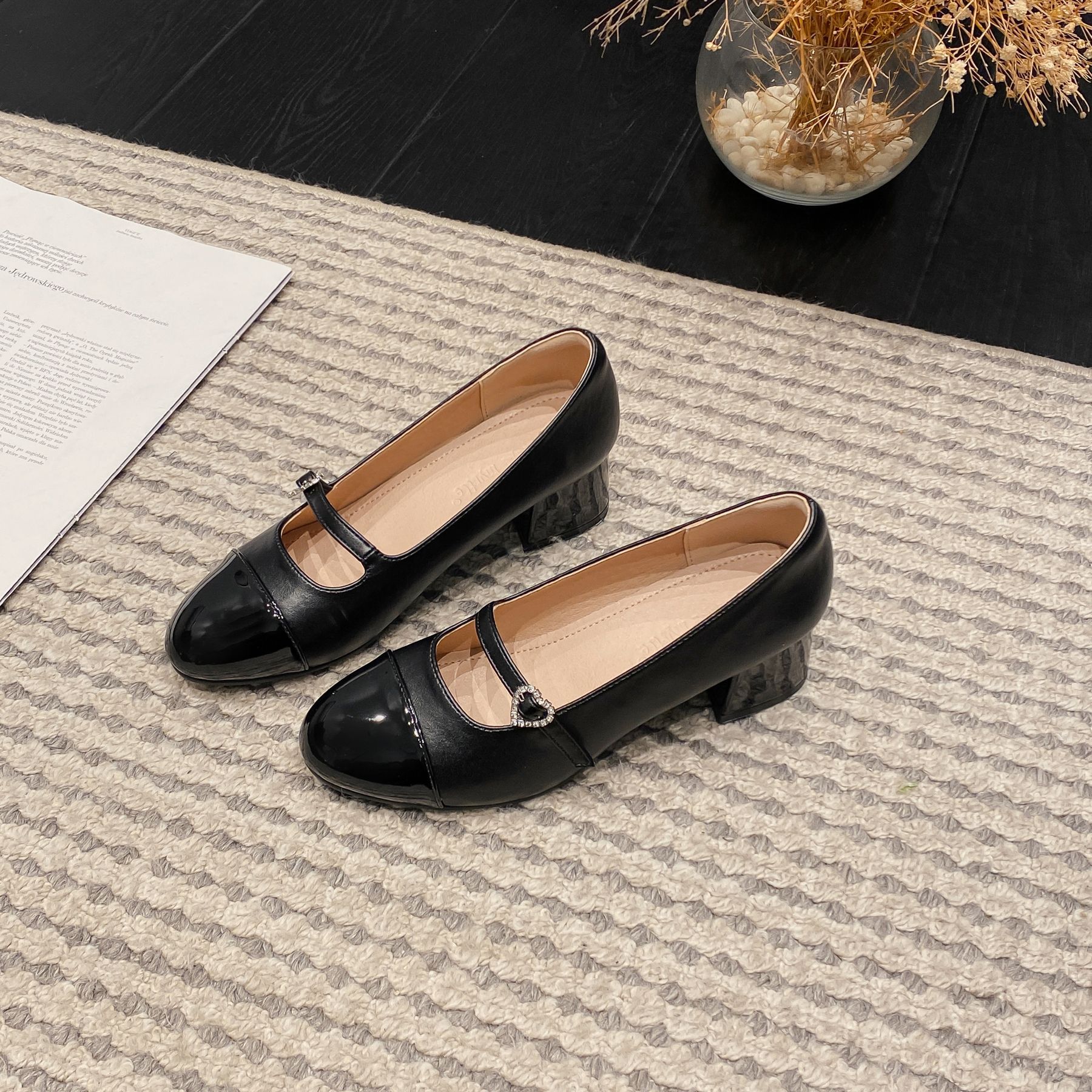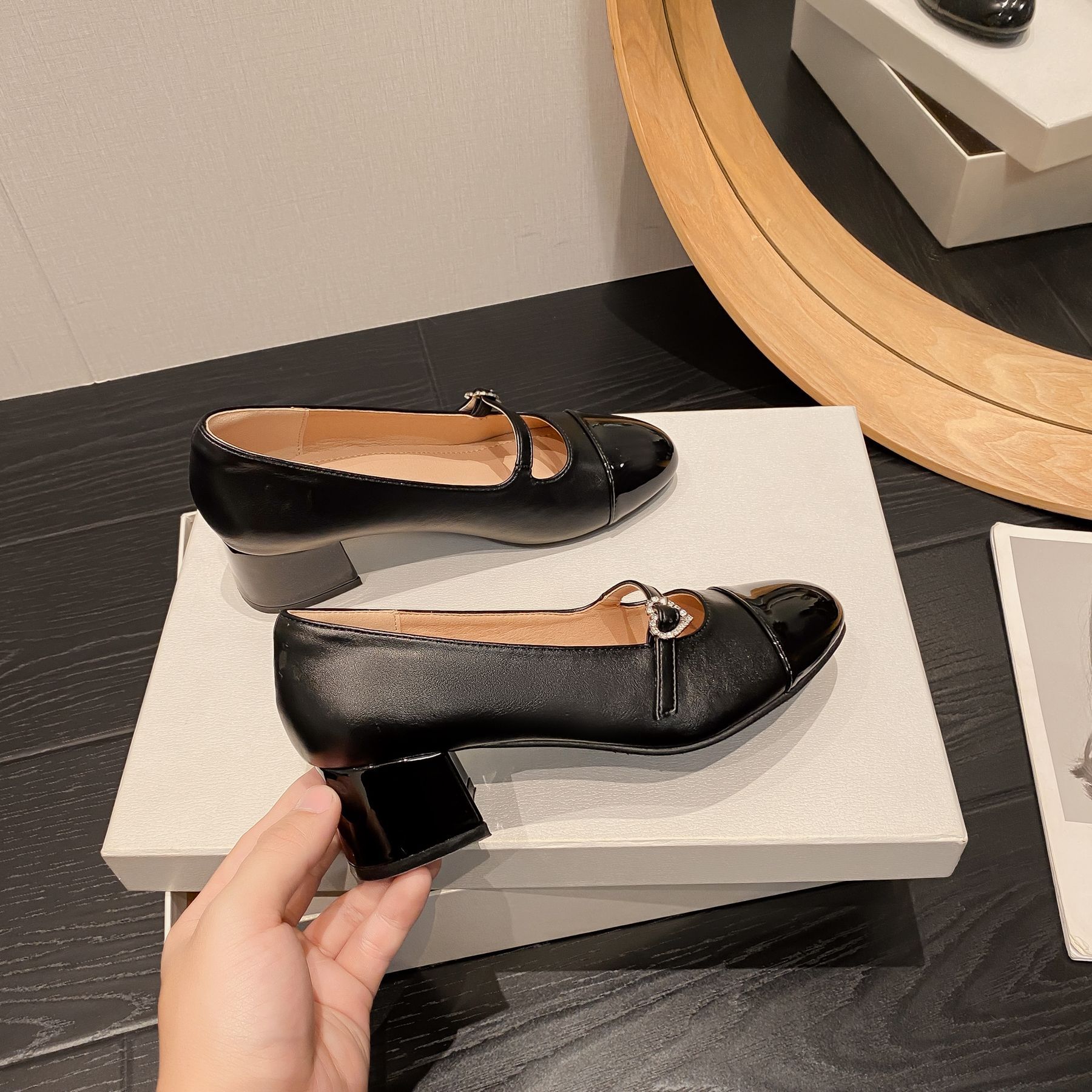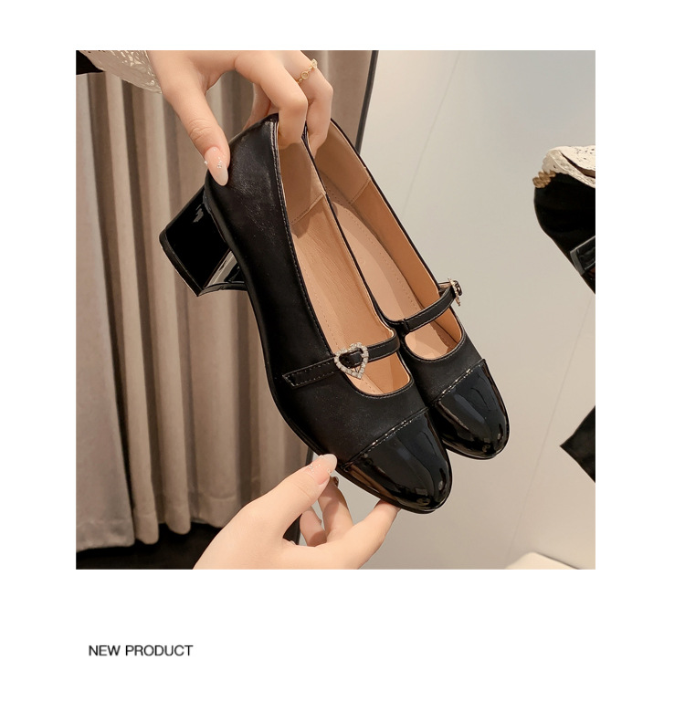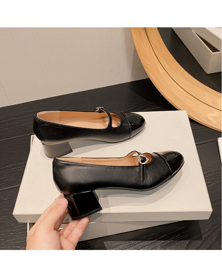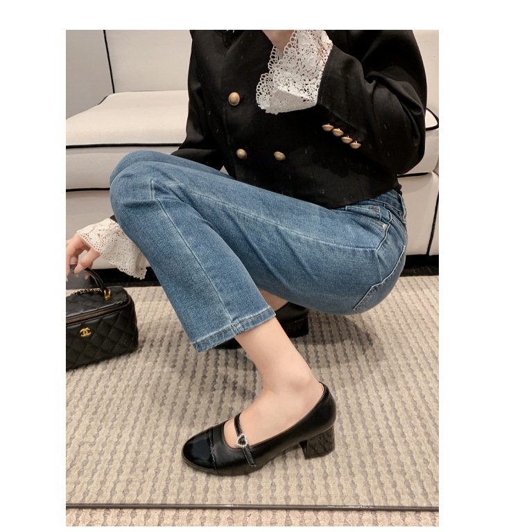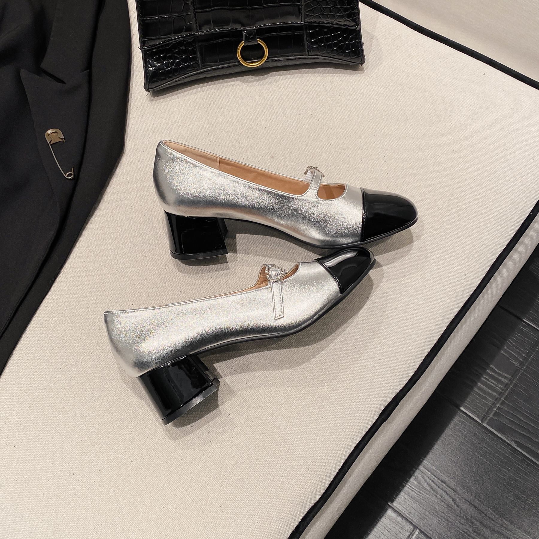 PANDA EYES 法式小香风拼色玛丽珍鞋女春季新款浅口一字扣带粗跟单鞋
