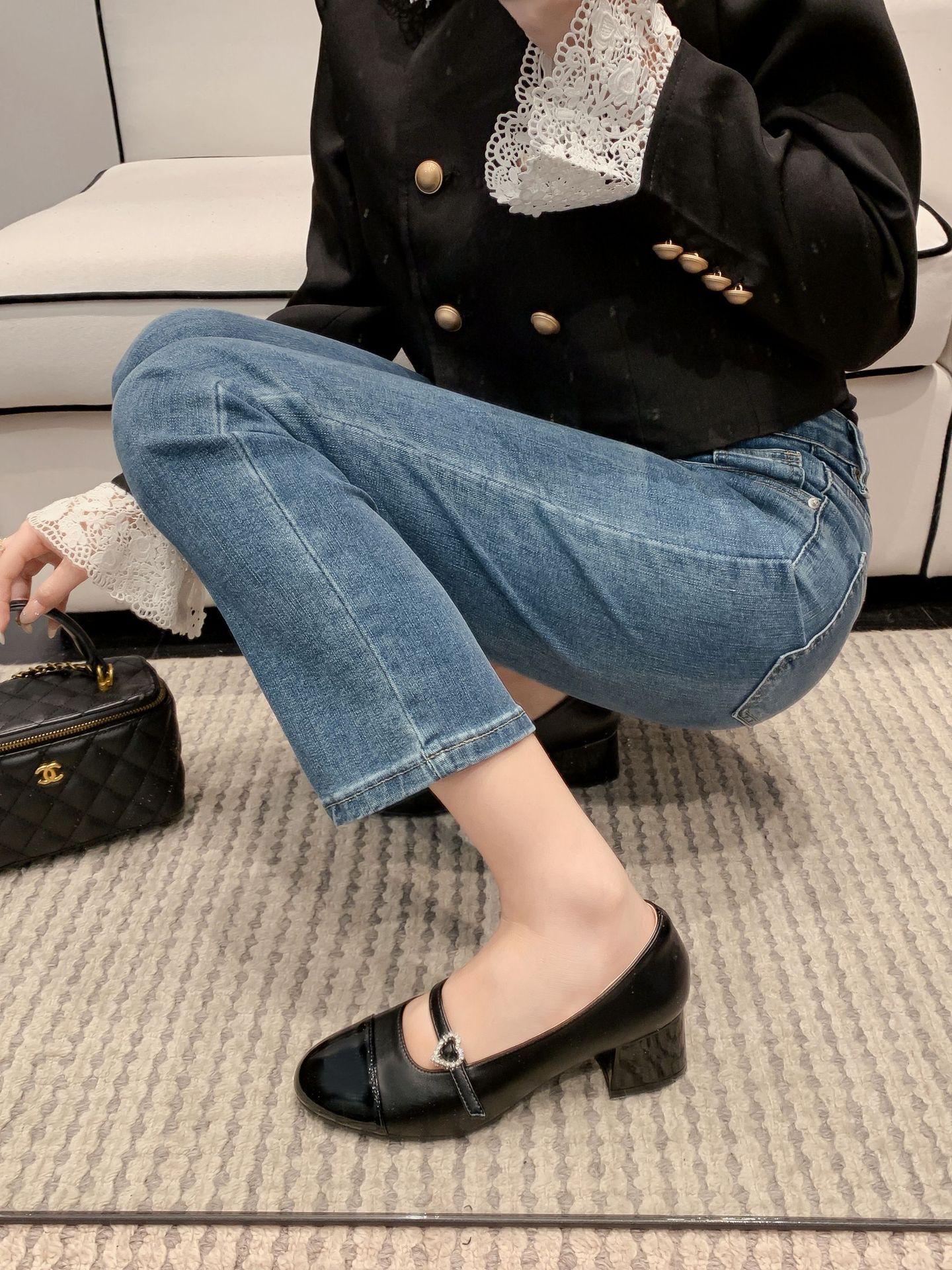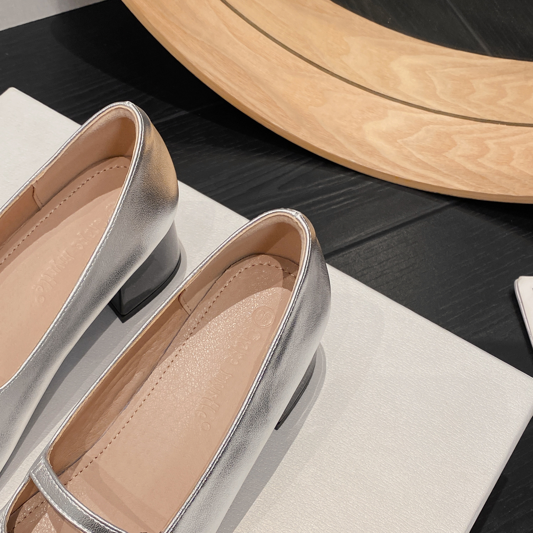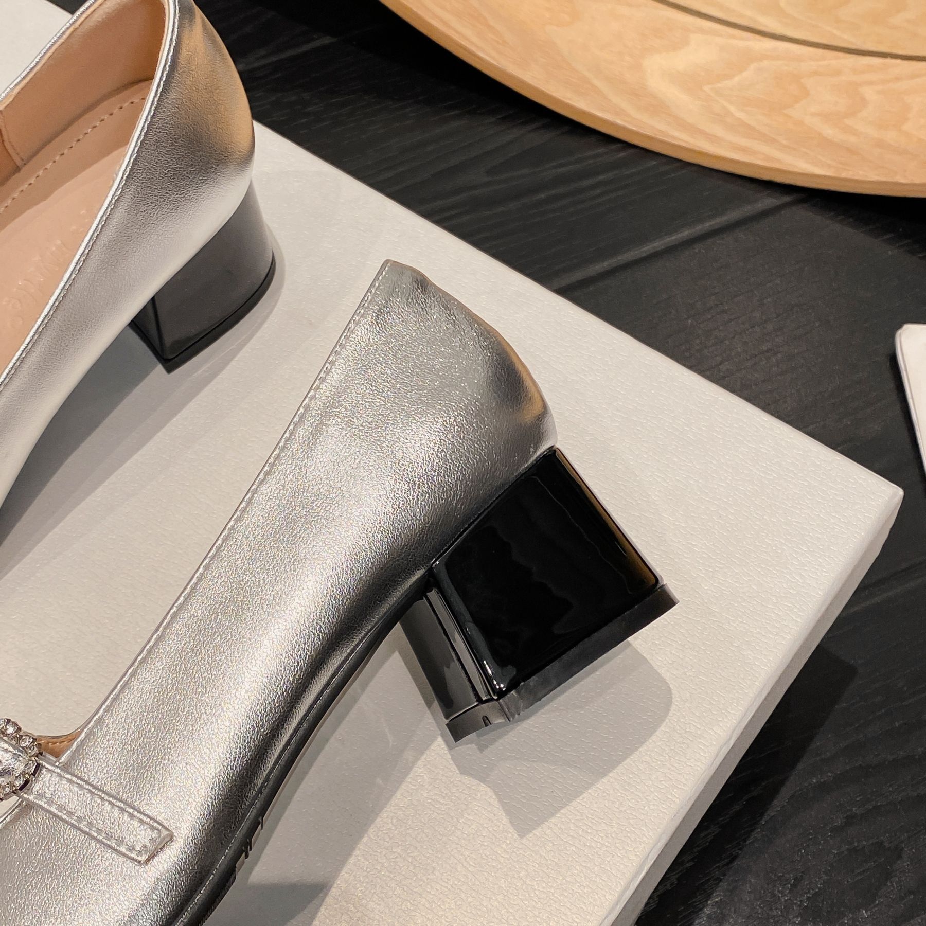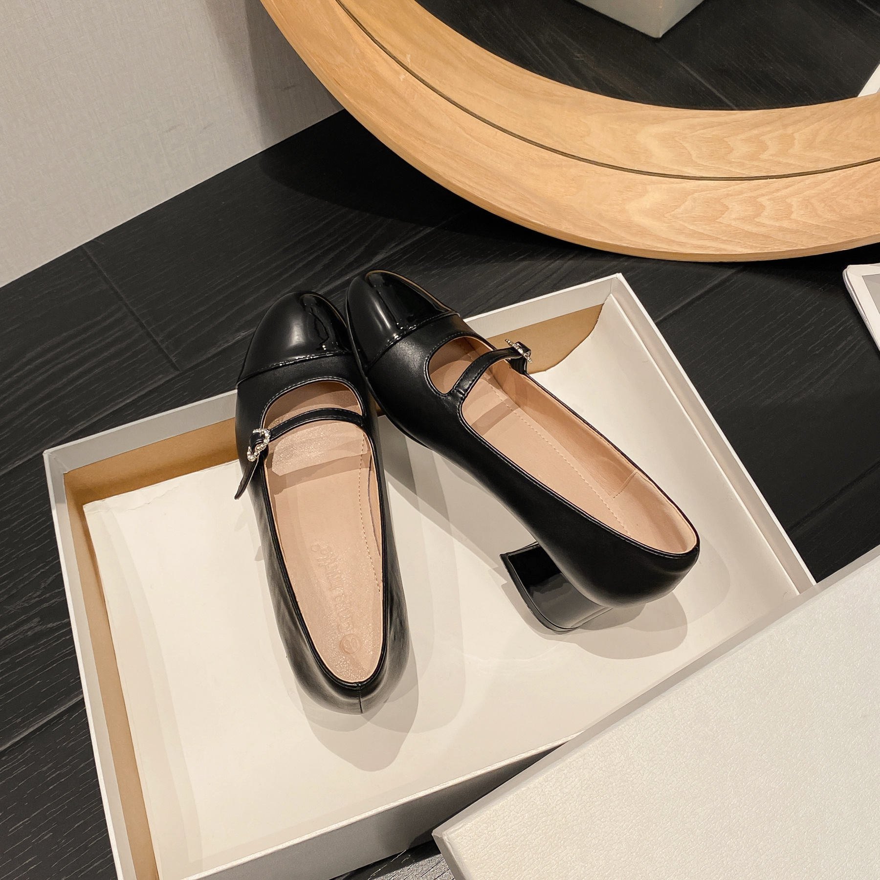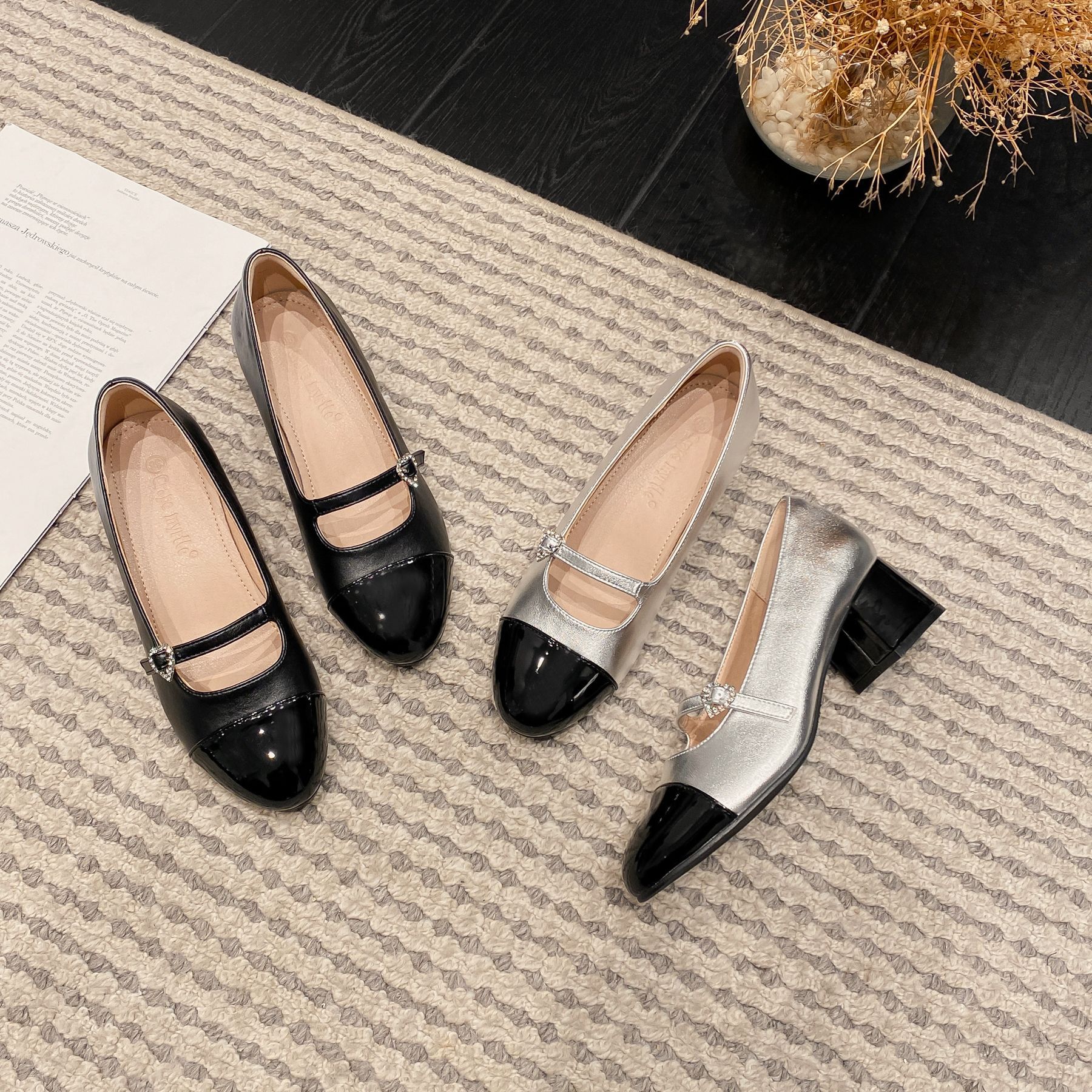 PANDA EYES 法式小香风拼色玛丽珍鞋女春季新款浅口一字扣带粗跟单鞋