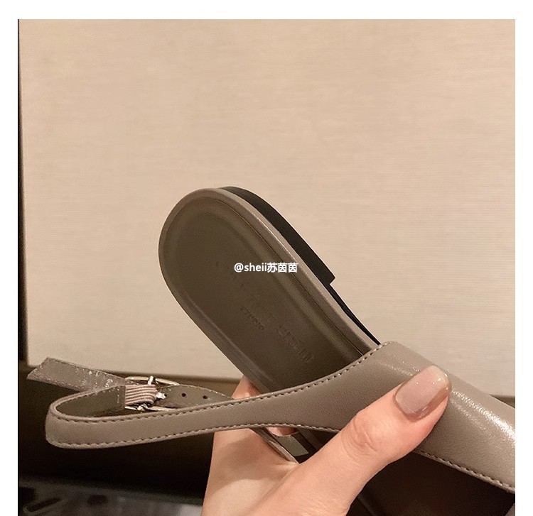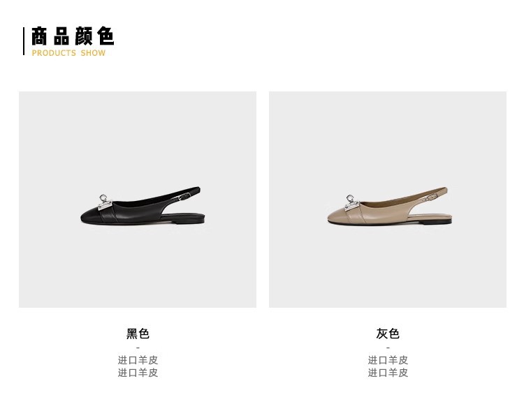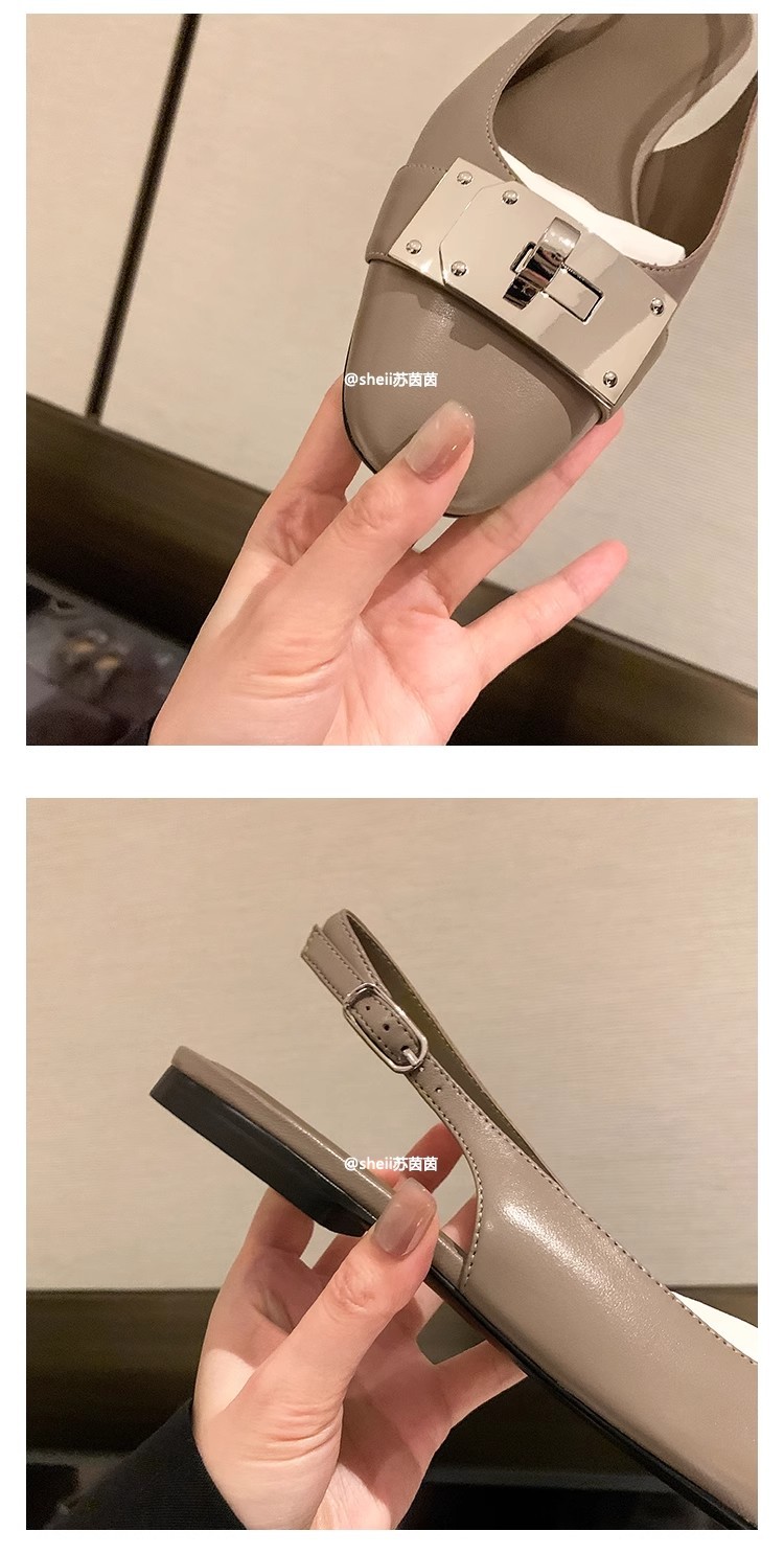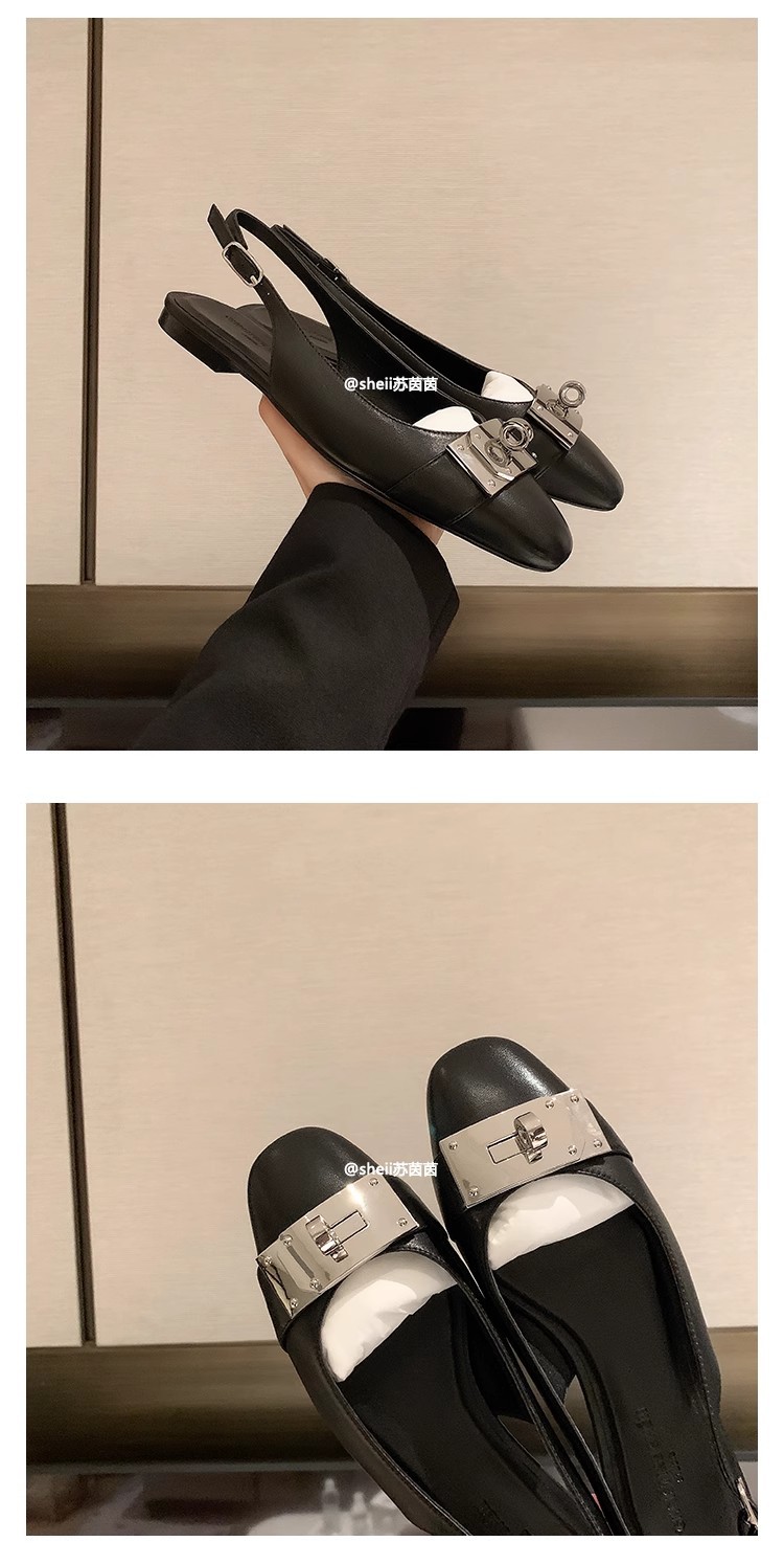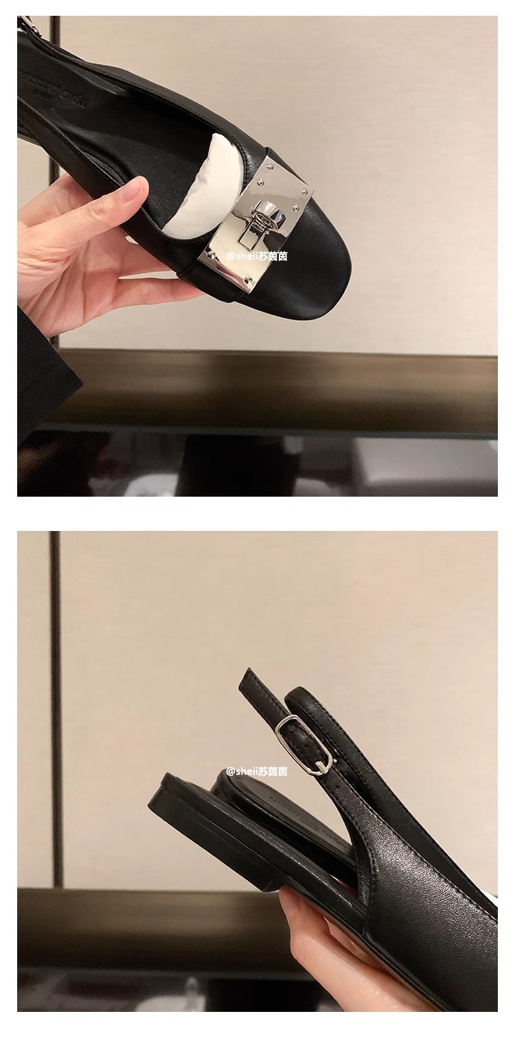 现货秒发!苏茵茵同款鞋方头羊皮kel*锁扣包头后空平底凉鞋女通勤