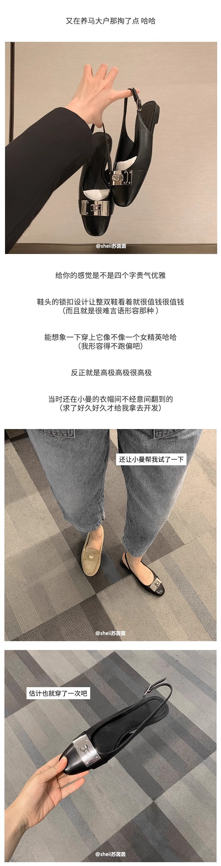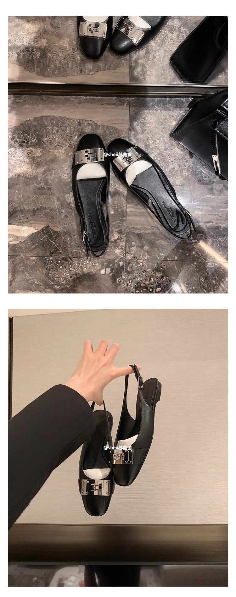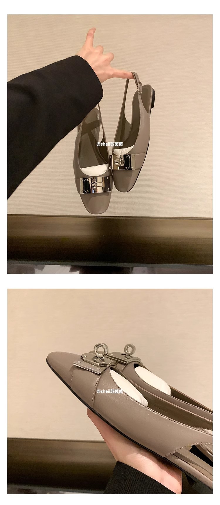 现货秒发!苏茵茵同款鞋方头羊皮kel*锁扣包头后空平底凉鞋女通勤