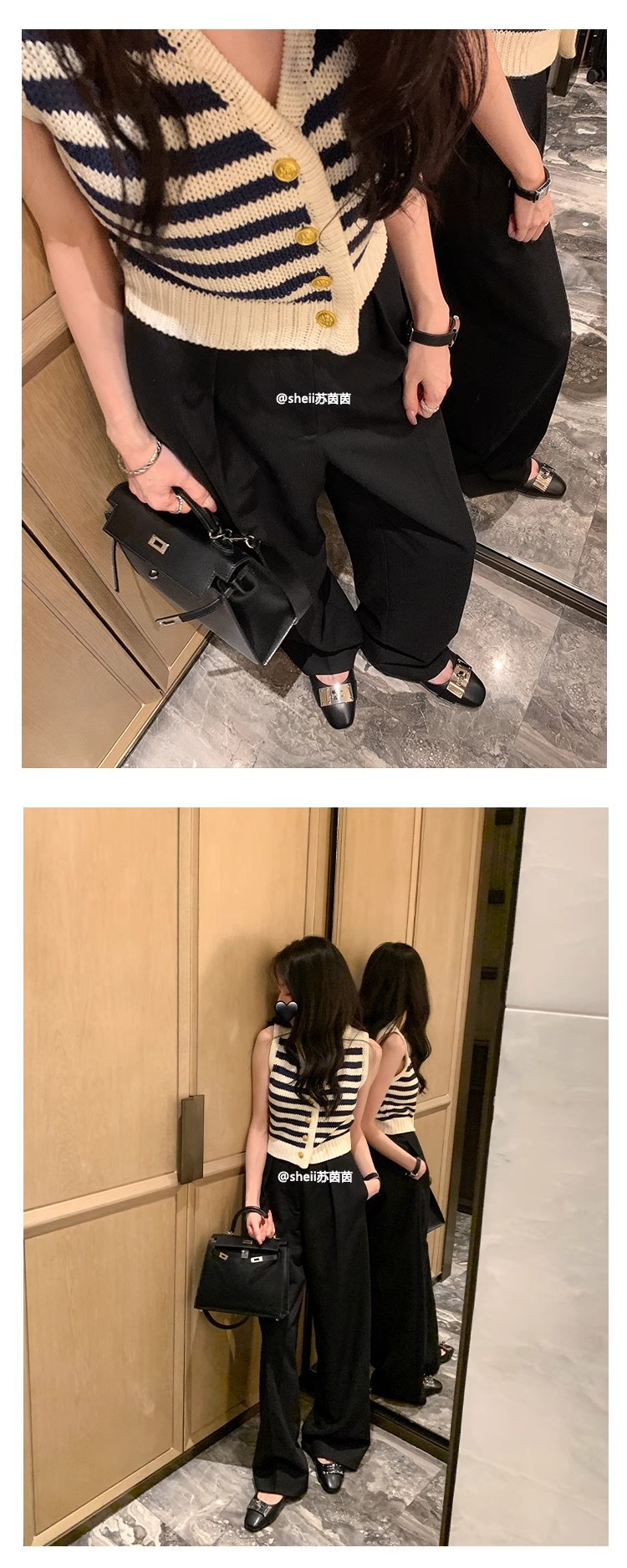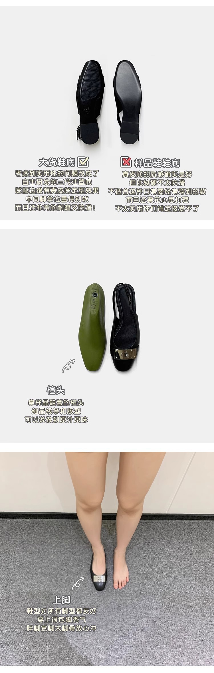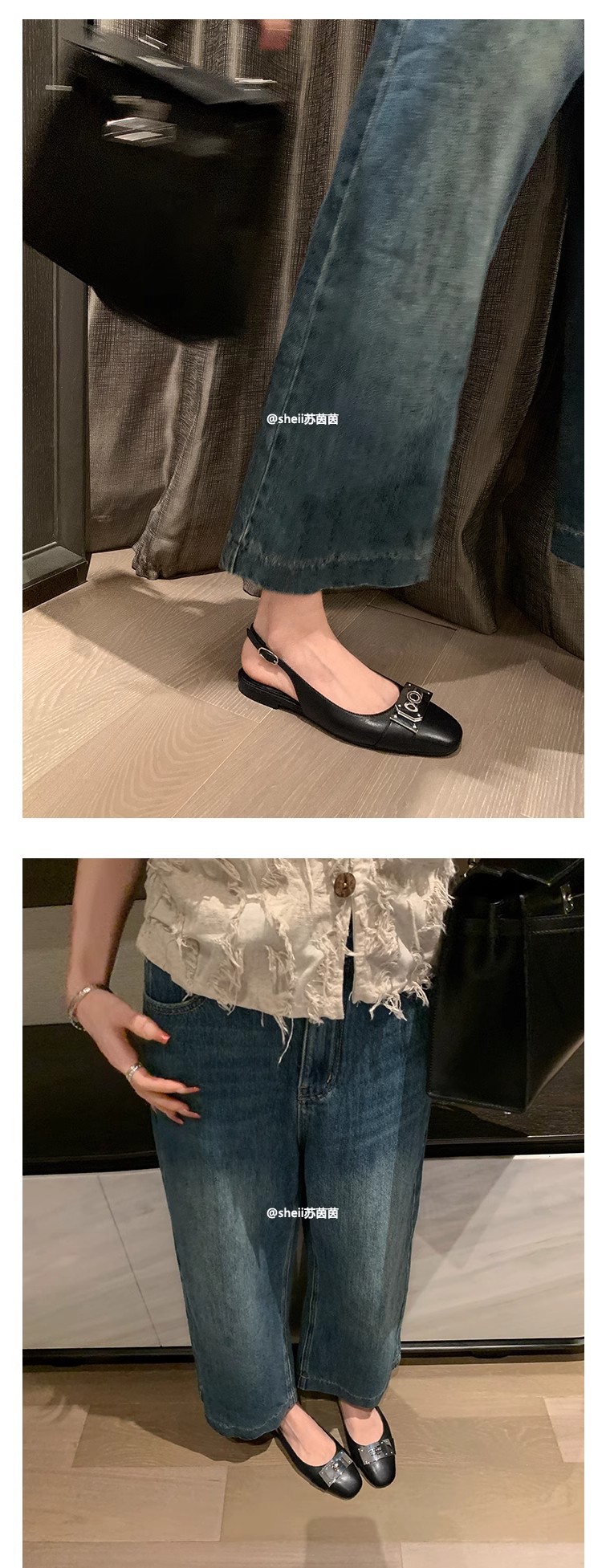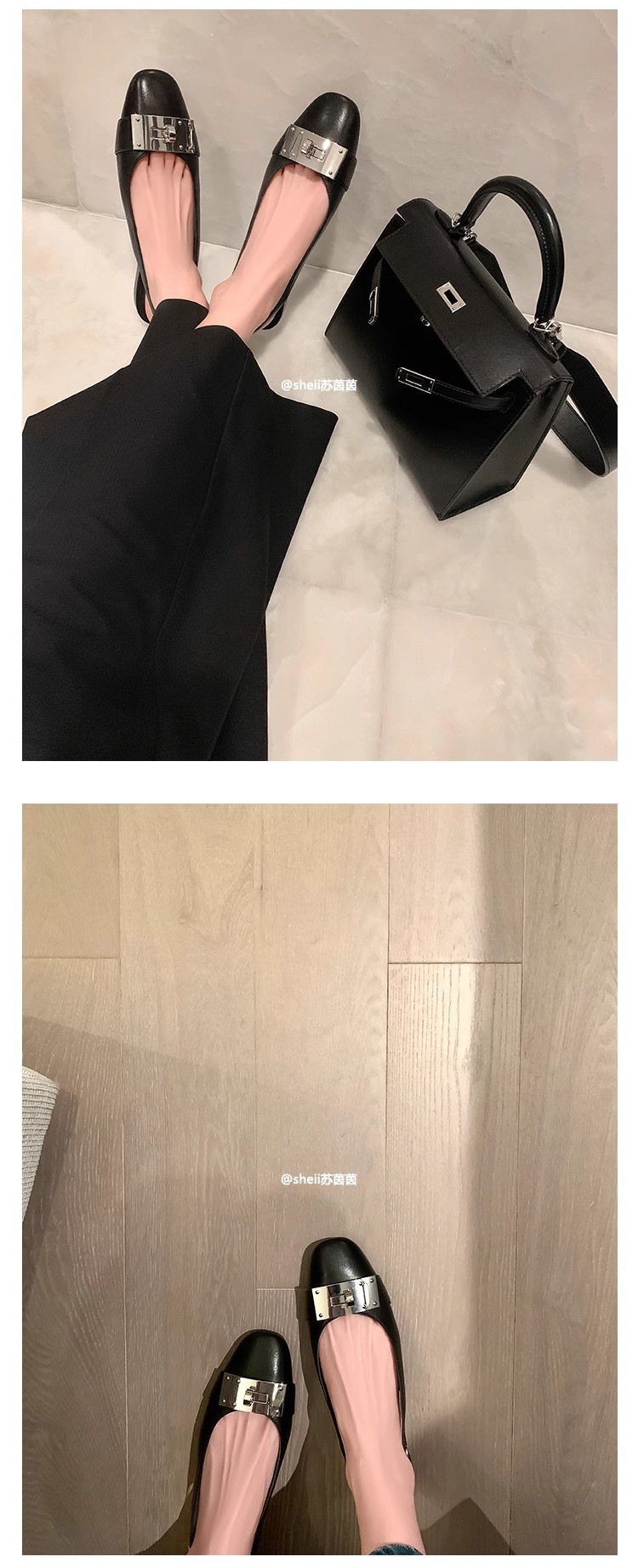 现货秒发!苏茵茵同款鞋方头羊皮kel*锁扣包头后空平底凉鞋女通勤