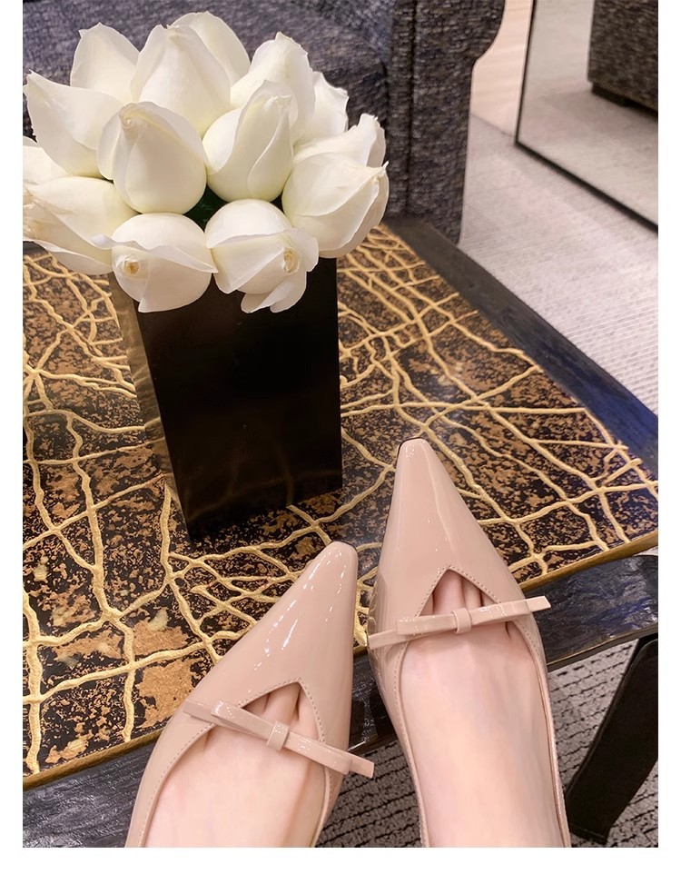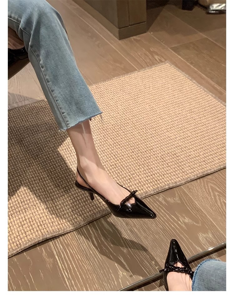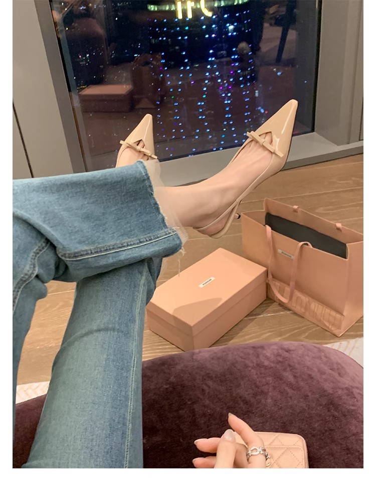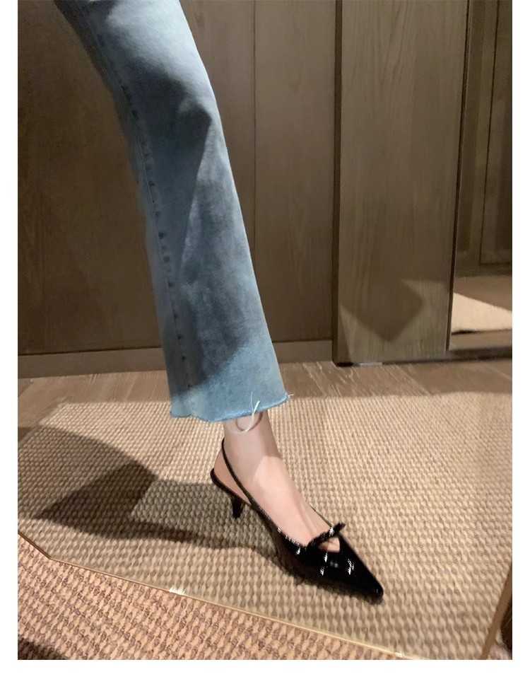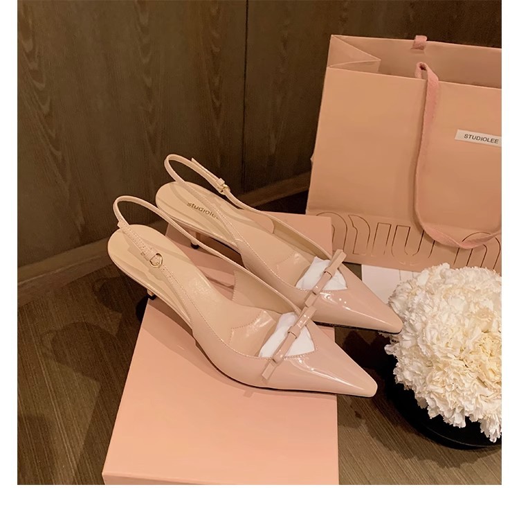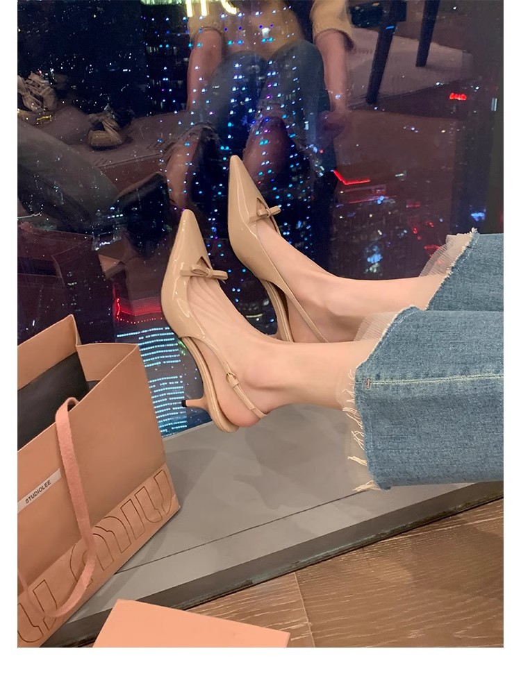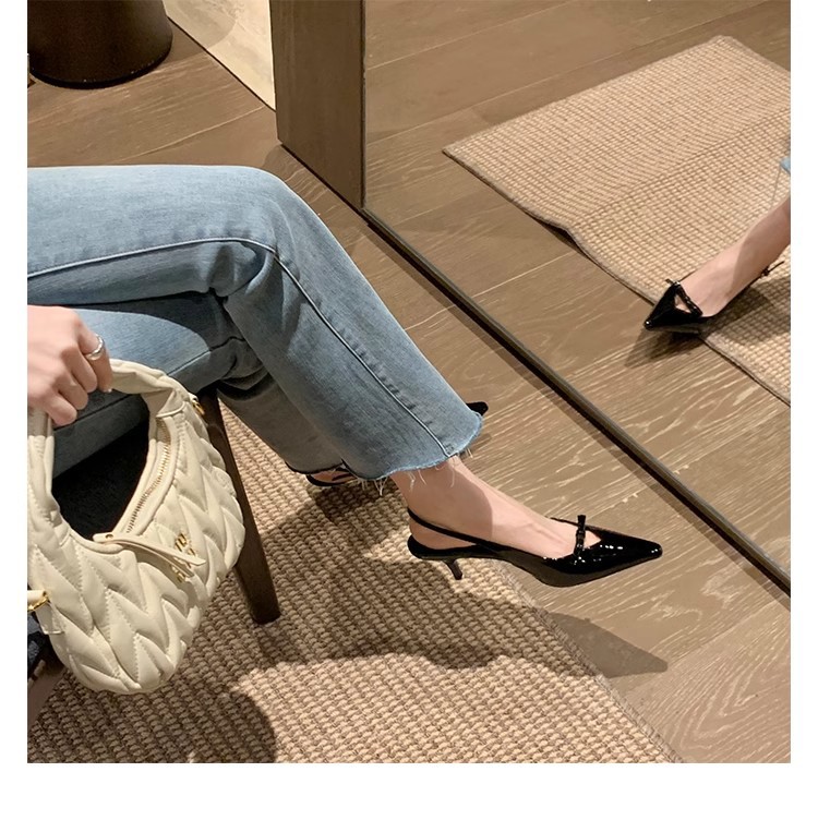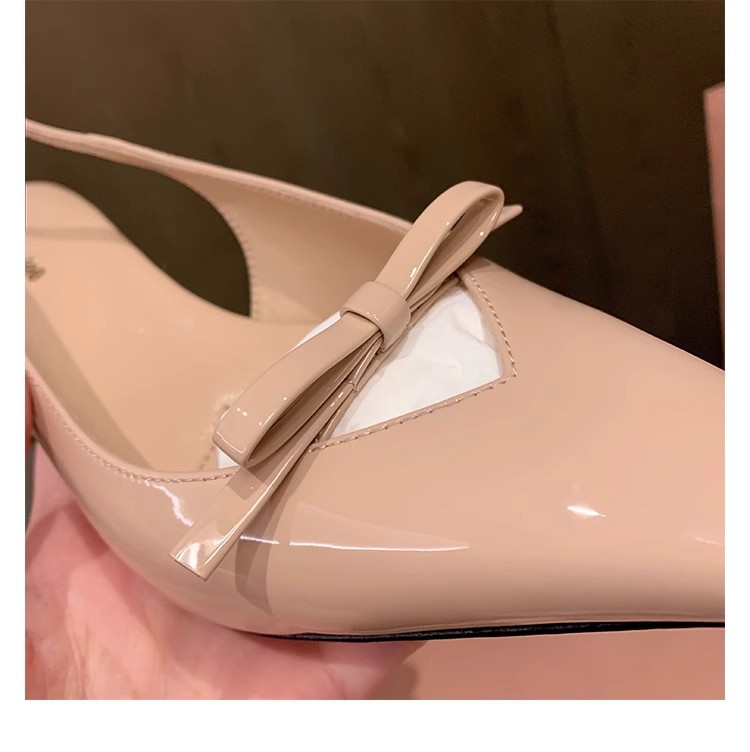 现货秒发!葡萄妈同款鞋优雅小尖头一字蝴蝶结后空细跟高跟鞋女春