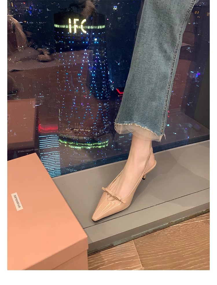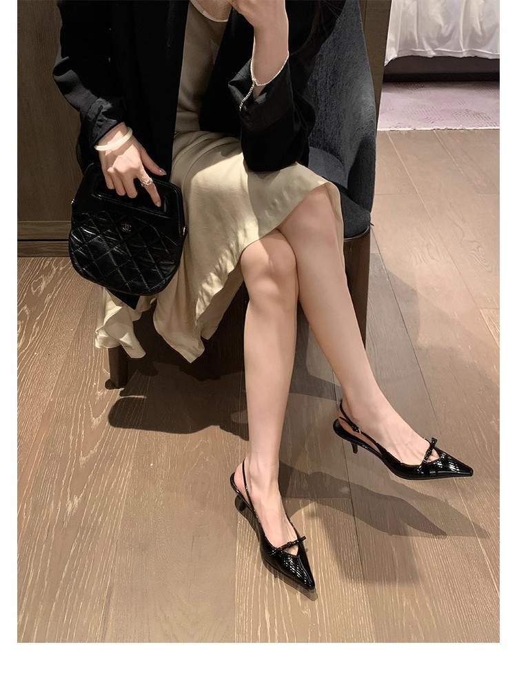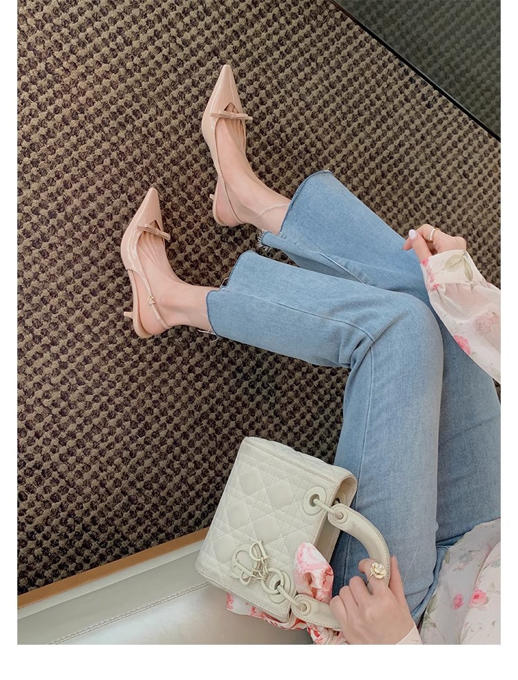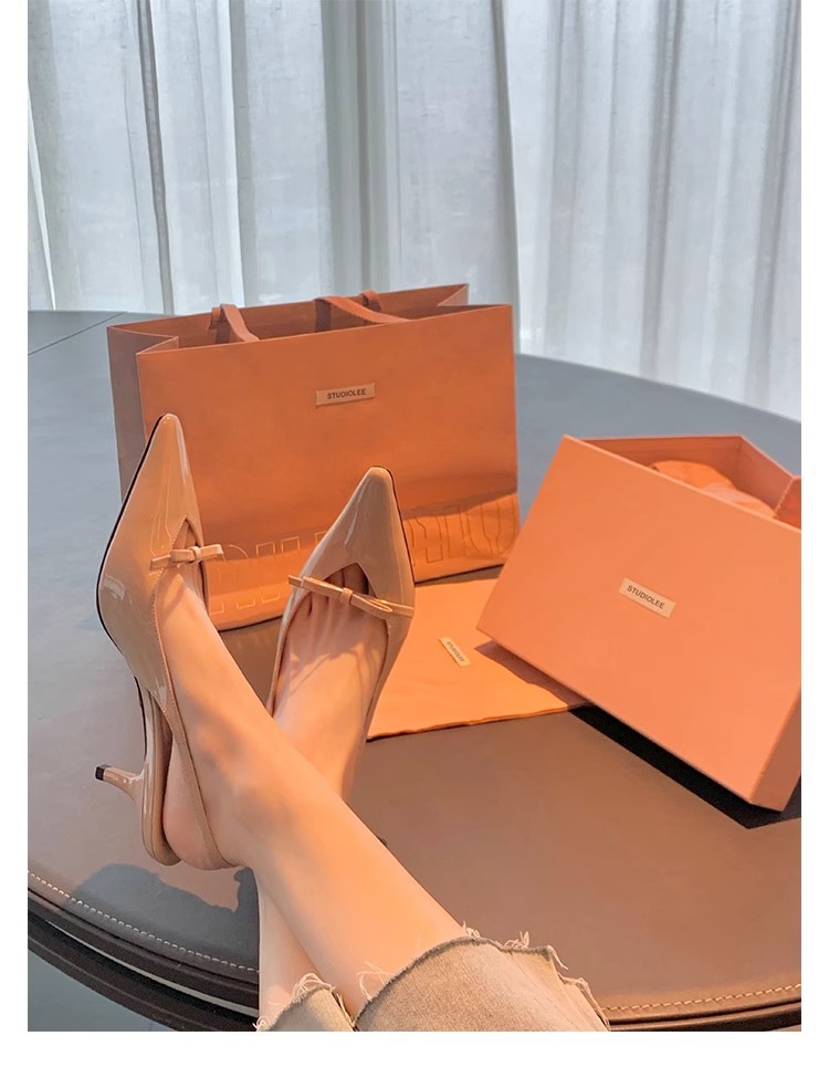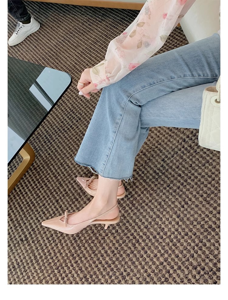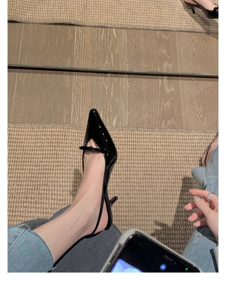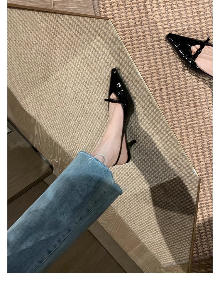 现货秒发!葡萄妈同款鞋优雅小尖头一字蝴蝶结后空细跟高跟鞋女春