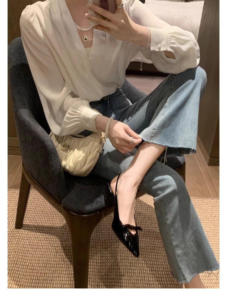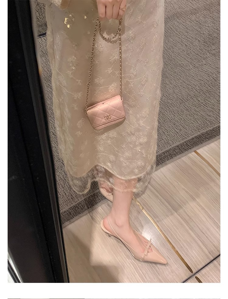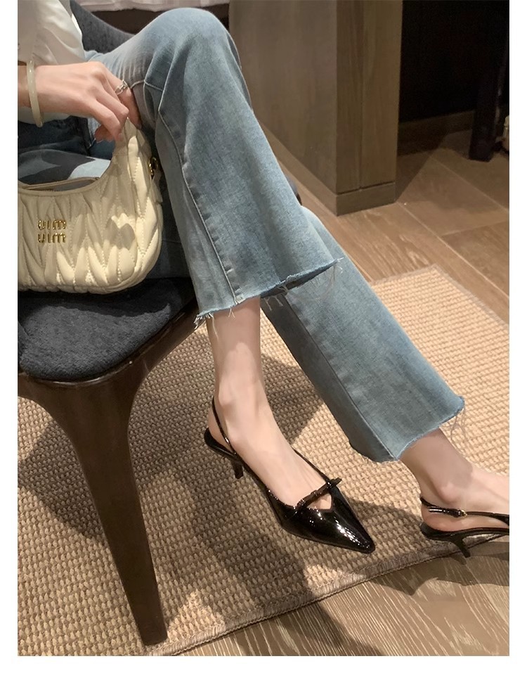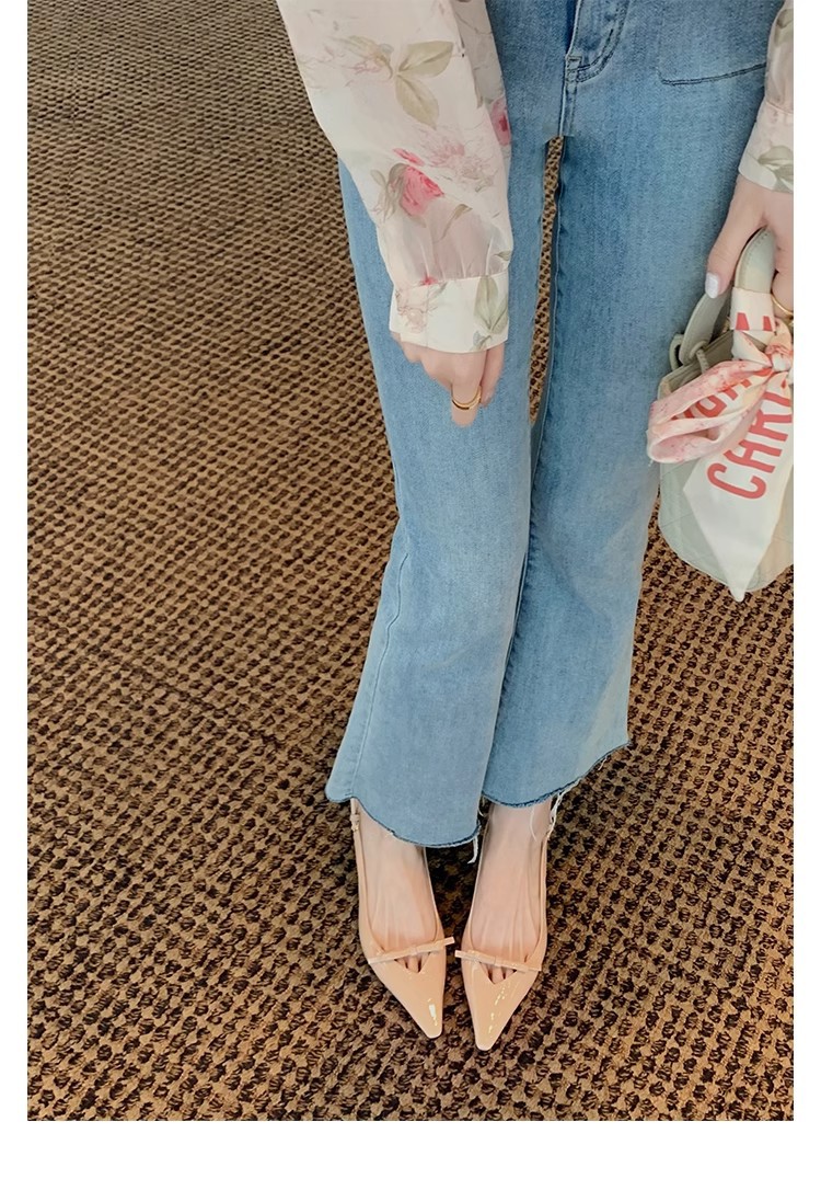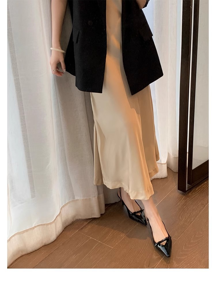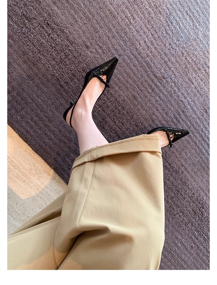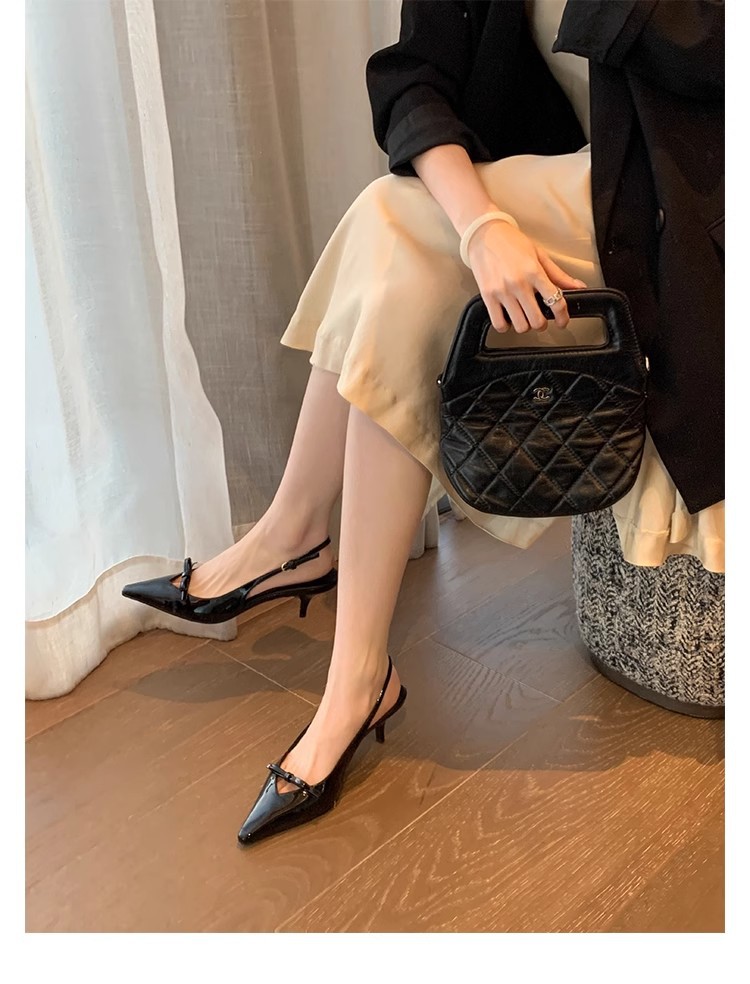 现货秒发!葡萄妈同款鞋优雅小尖头一字蝴蝶结后空细跟高跟鞋女春