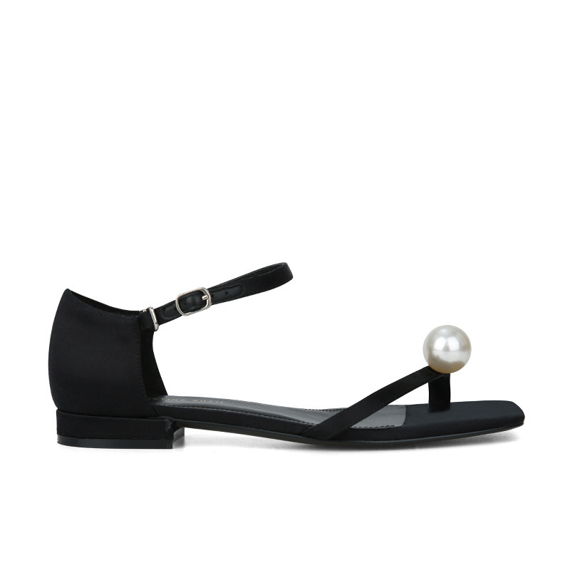 现货秒发~苏茵茵~仲夏月光~tot*e方头珍珠夹趾扣带粗跟凉鞋夏季女