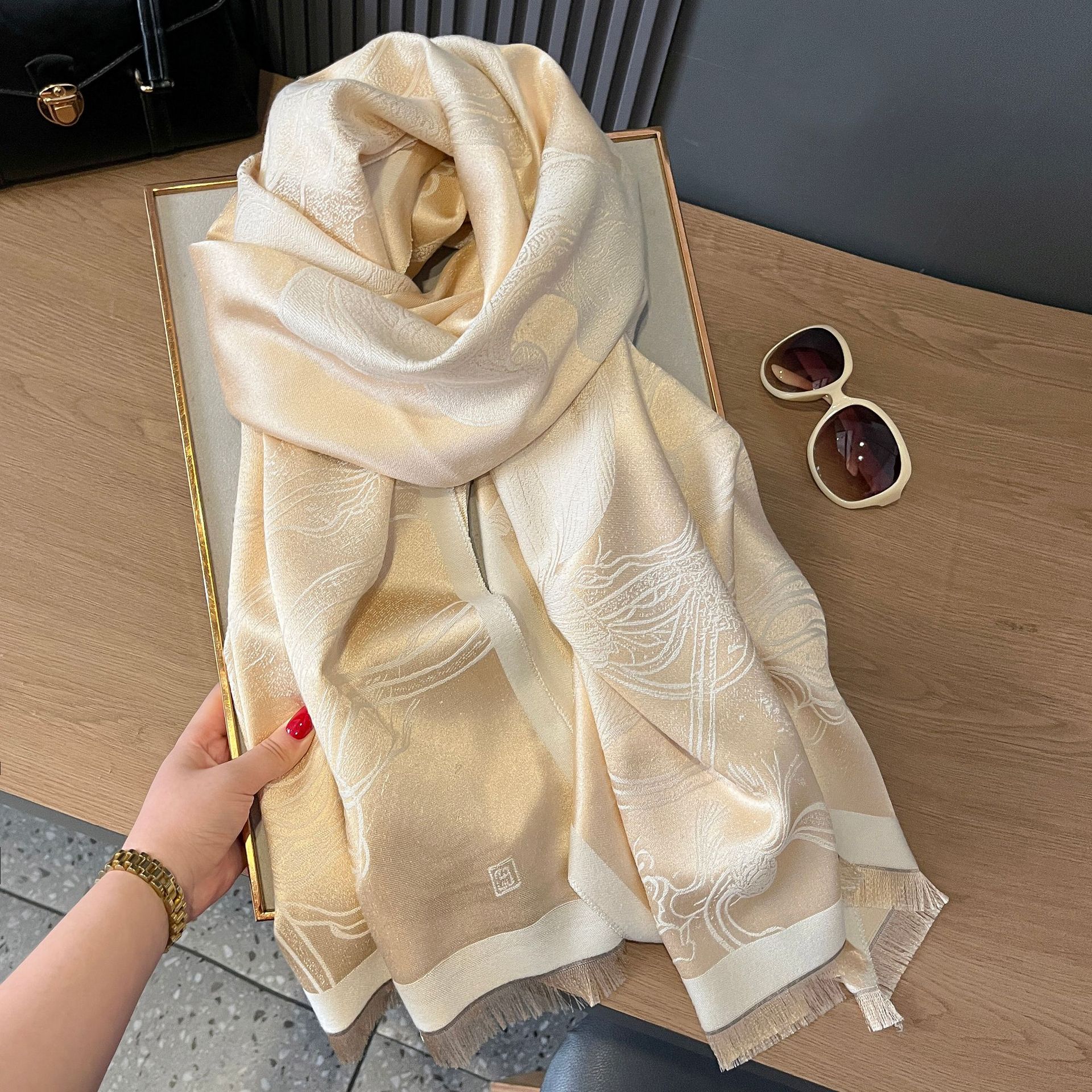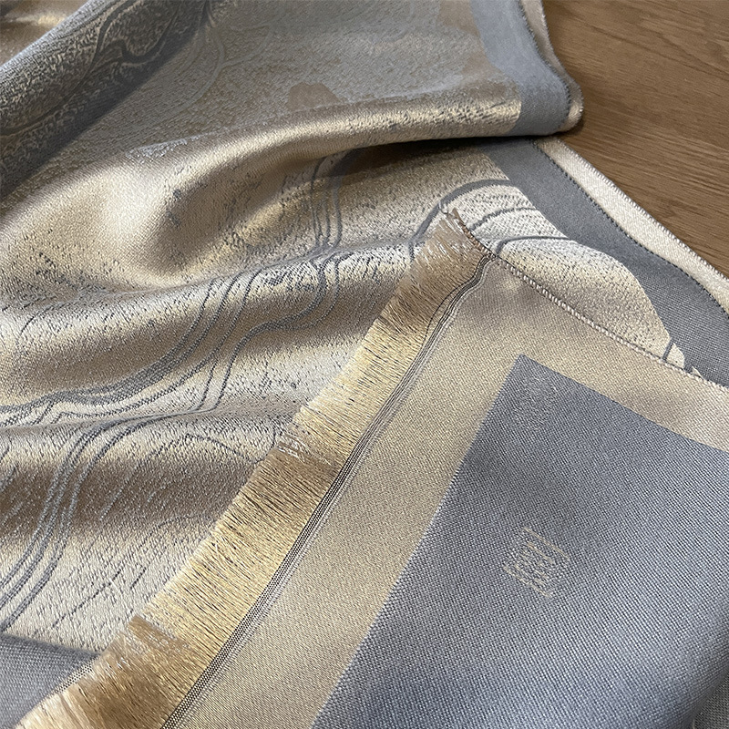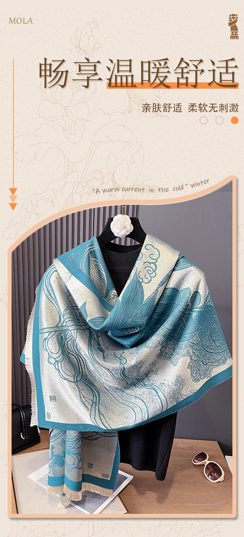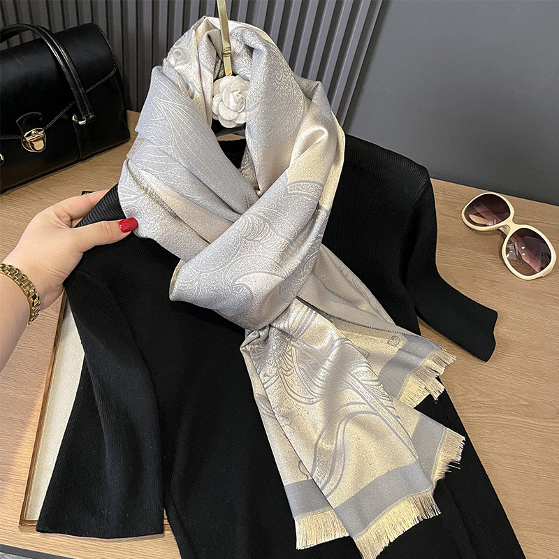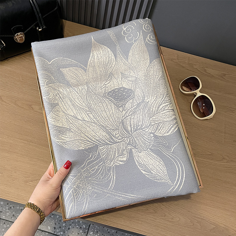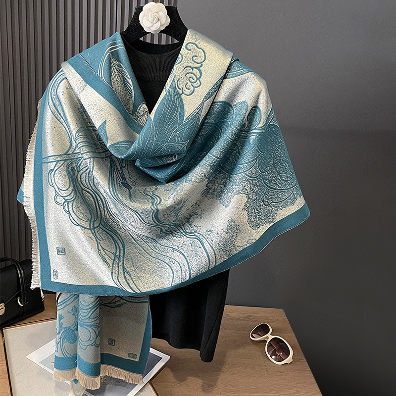 秋冬双面羊绒古风荷花加厚保暖天丝棉丝巾空调房护颈披肩外搭丝巾