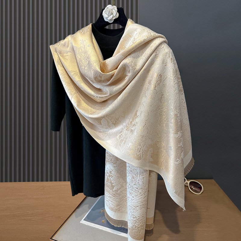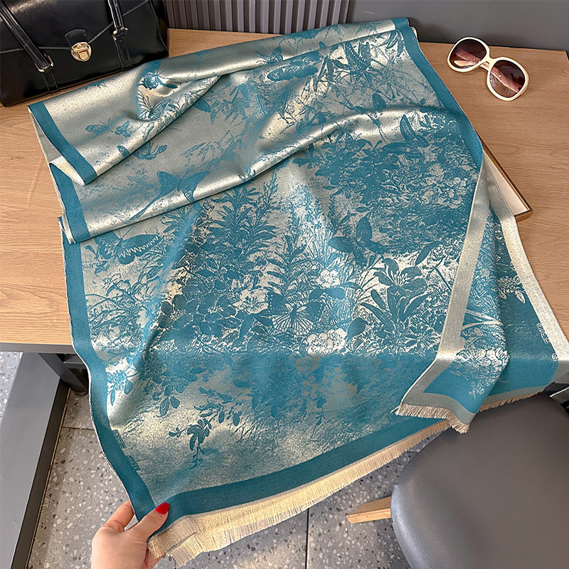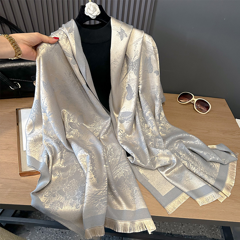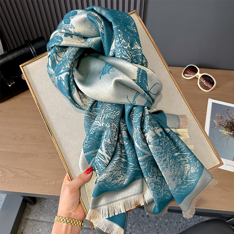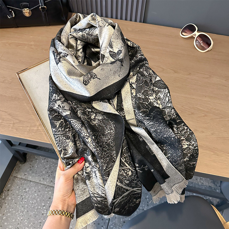 秋冬双面羊绒水墨蝴蝶飞舞素雅加厚保暖丝巾空调房护颈披肩外搭