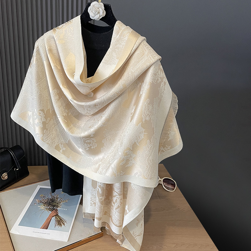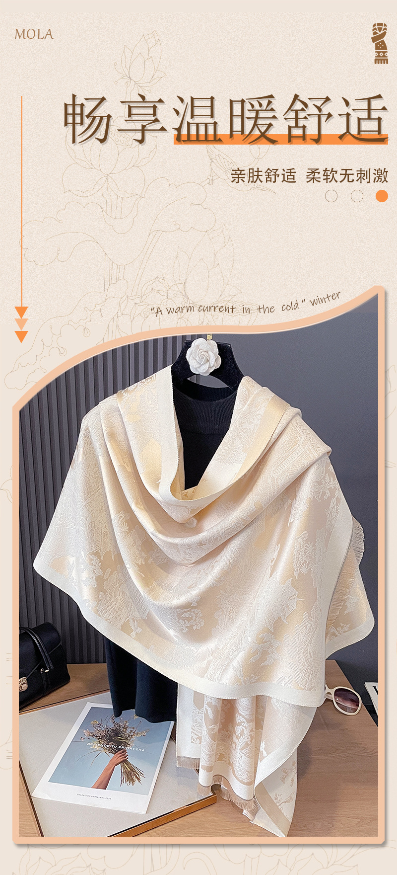 秋冬新款双面羊绒古风植物山林素雅加厚保暖丝巾空调房护颈披肩
