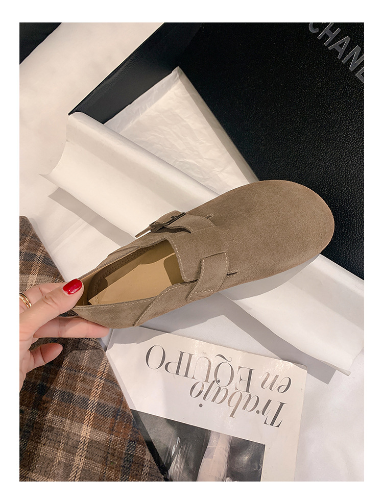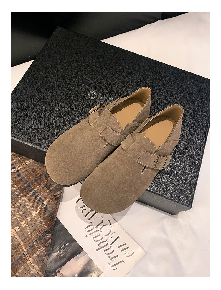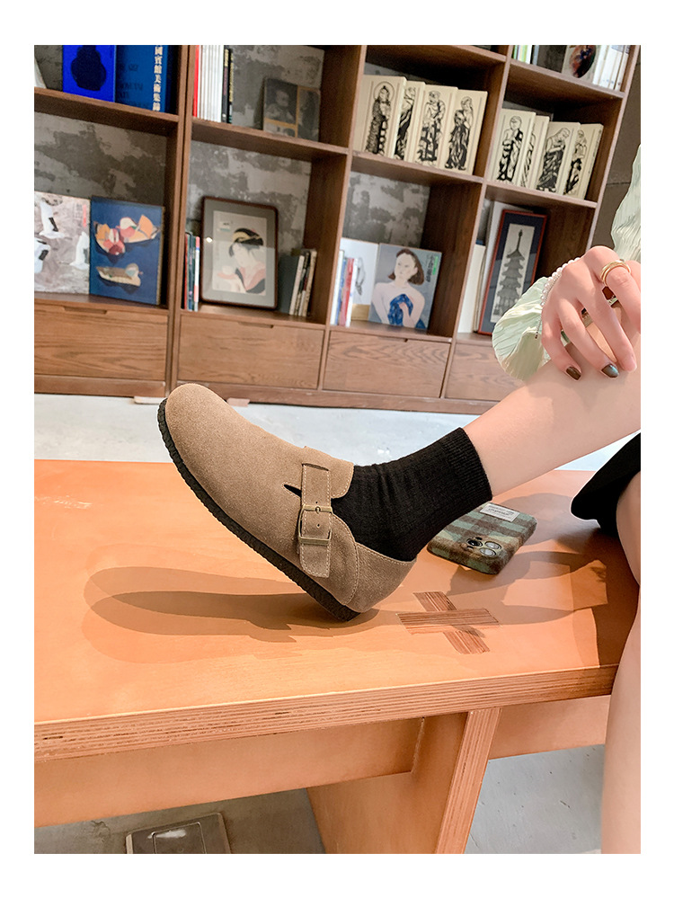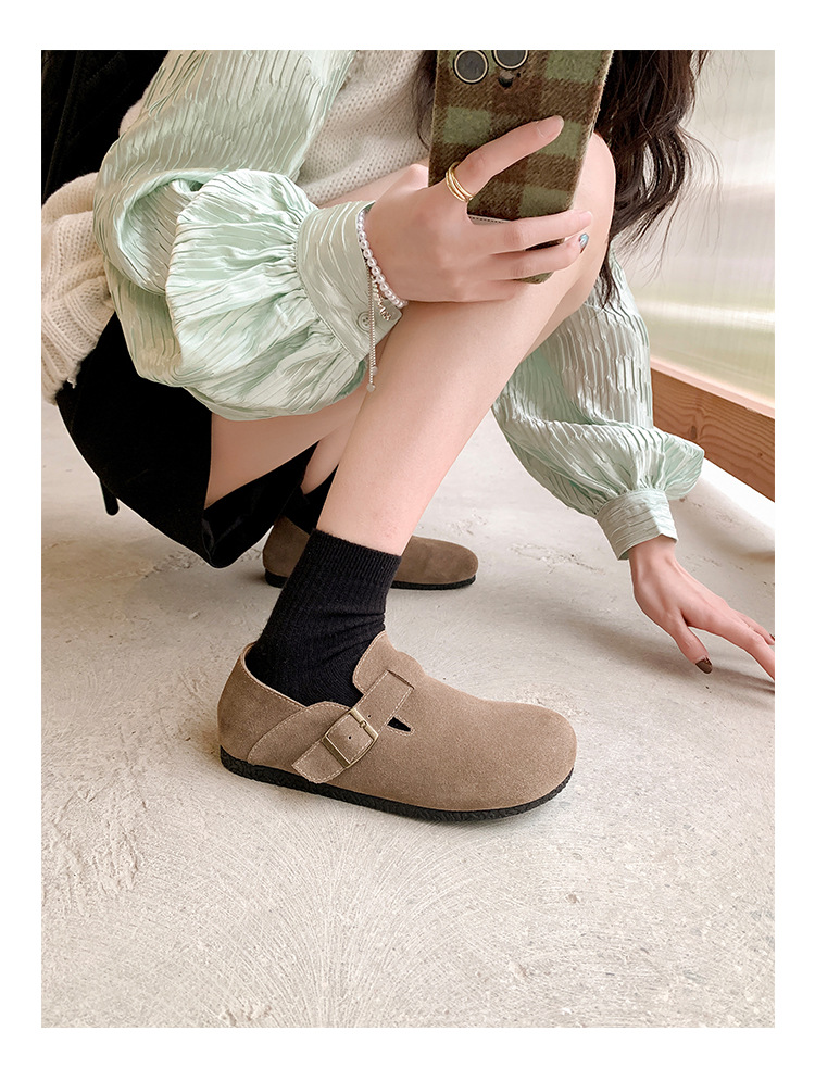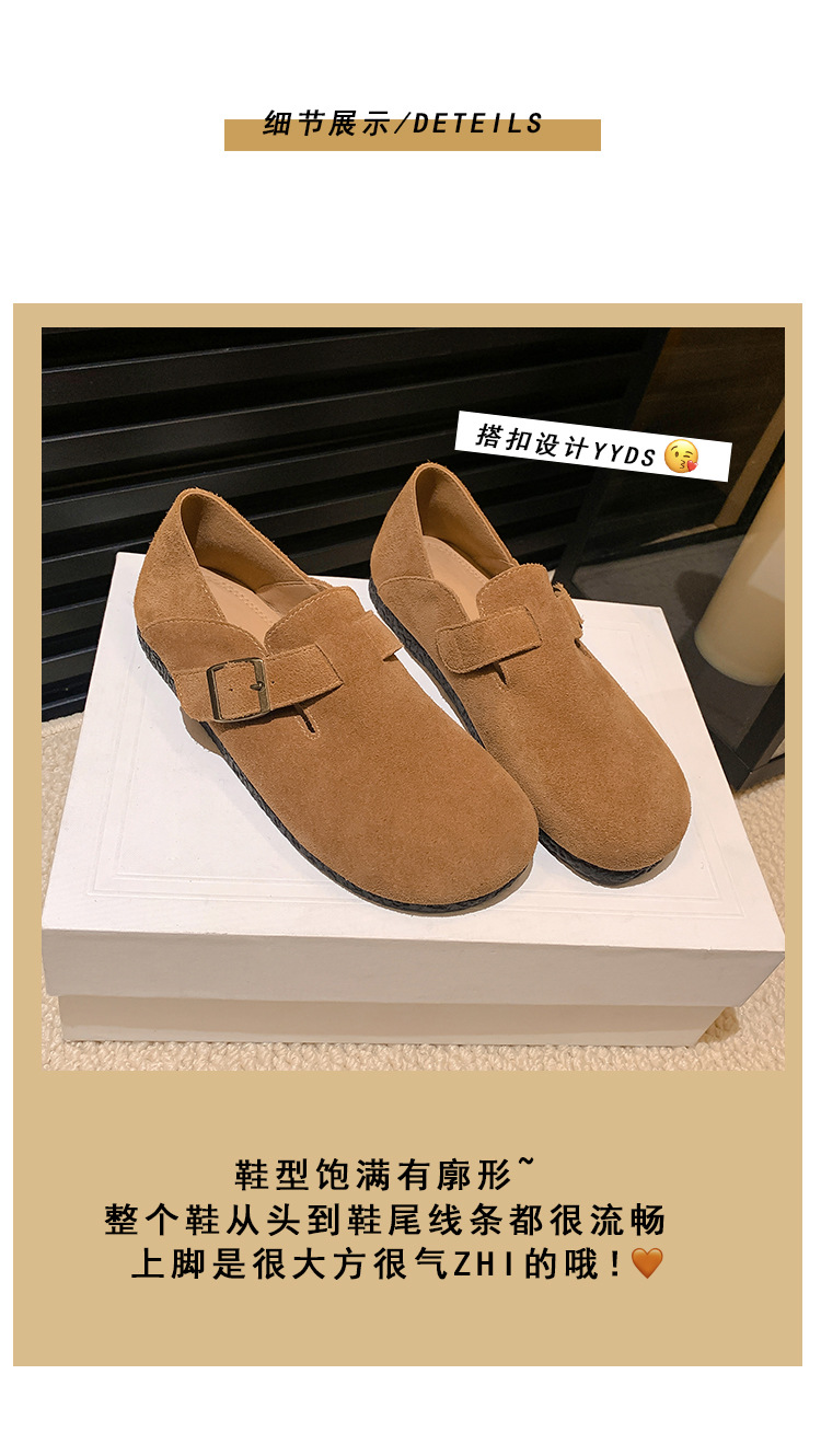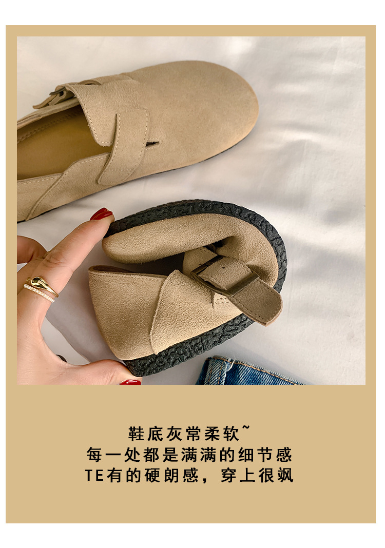 羊皮版 葡萄妈秋季新款毛毡平底大圆头勃肯鞋包头平底女单鞋真皮