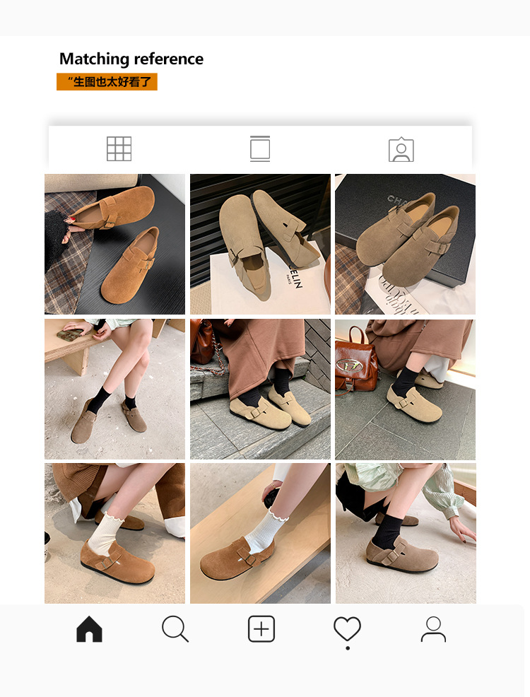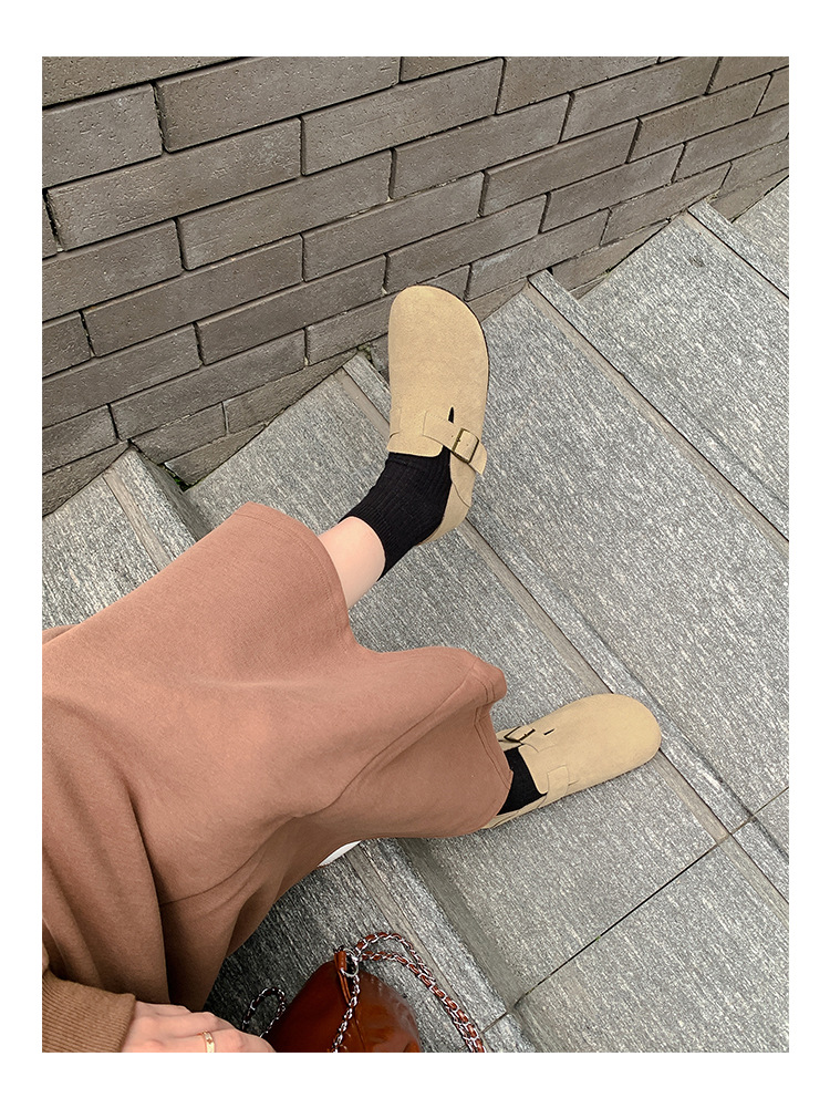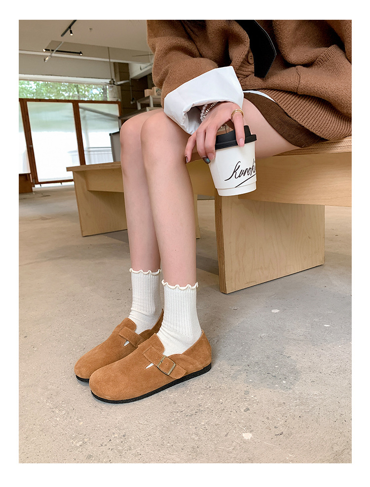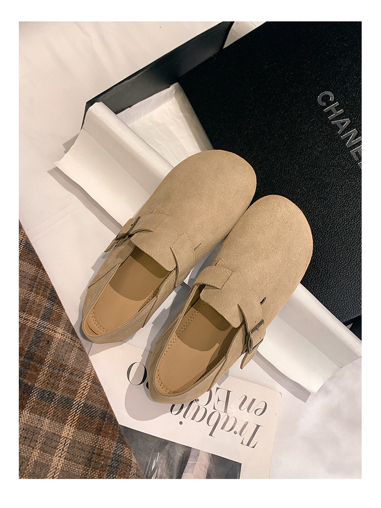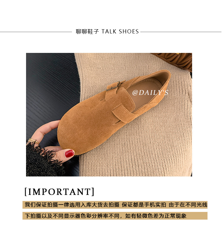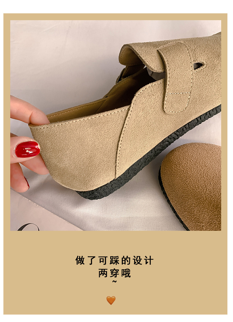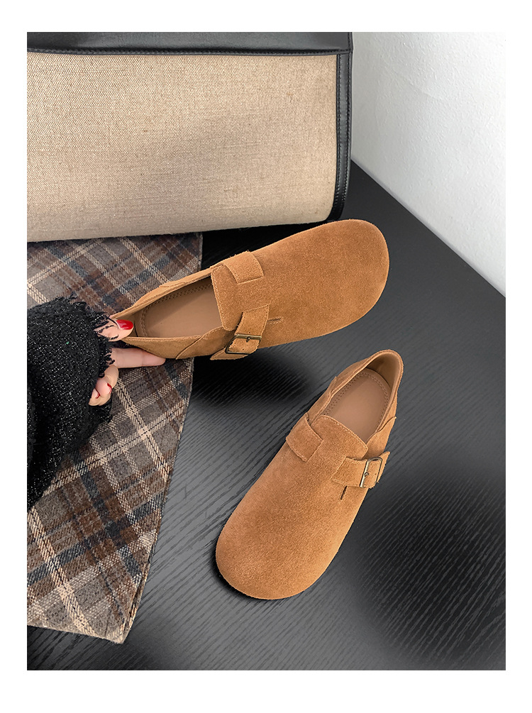 羊皮版 葡萄妈秋季新款毛毡平底大圆头勃肯鞋包头平底女单鞋真皮