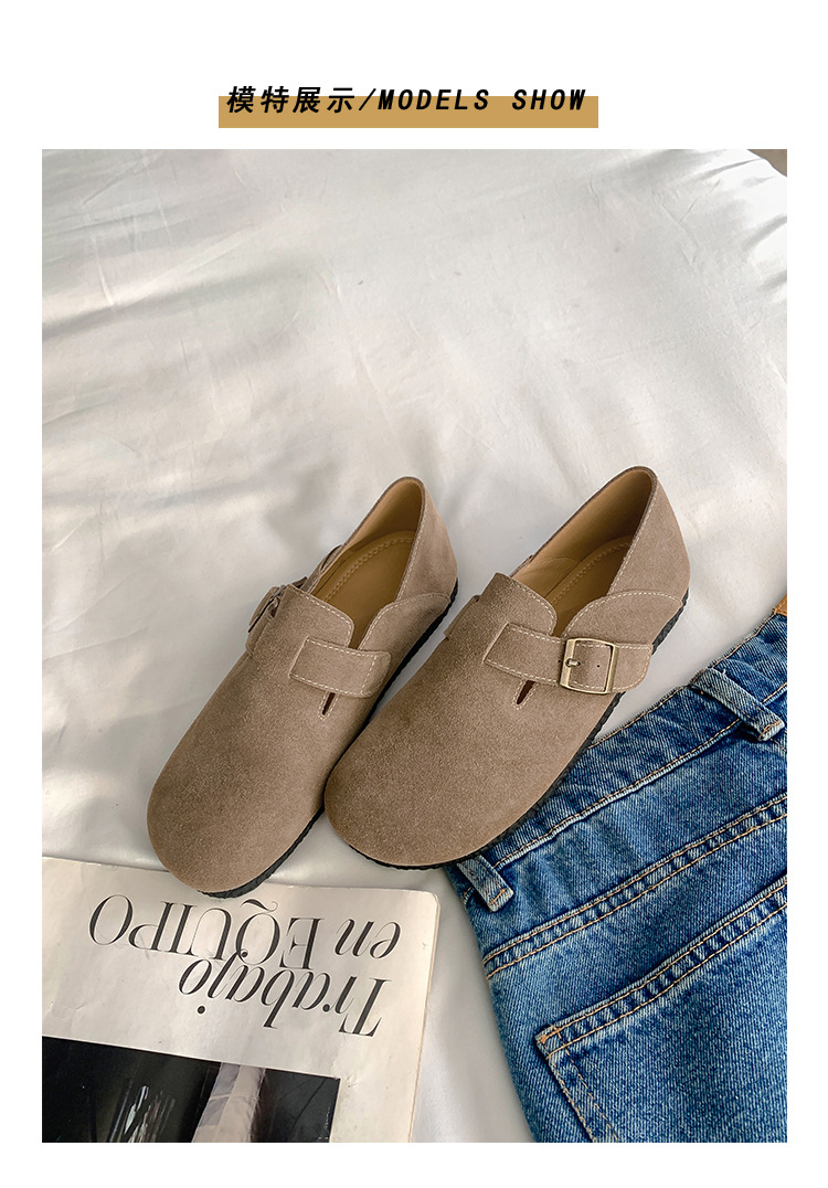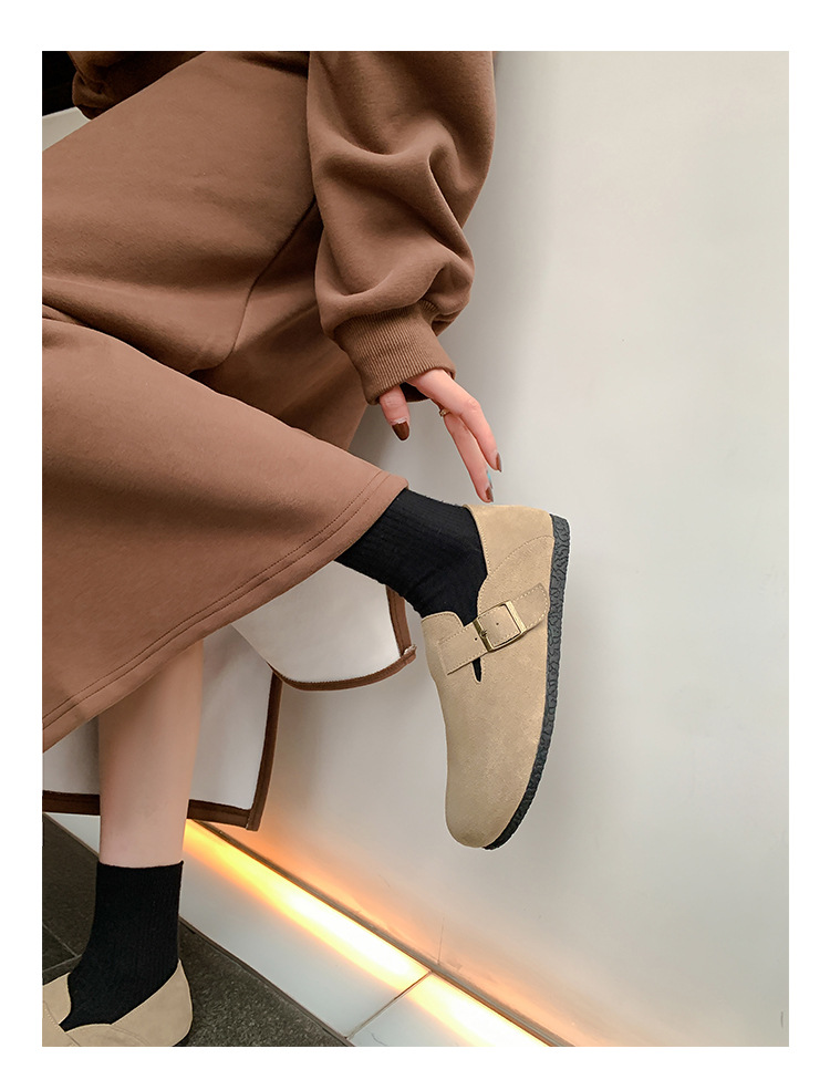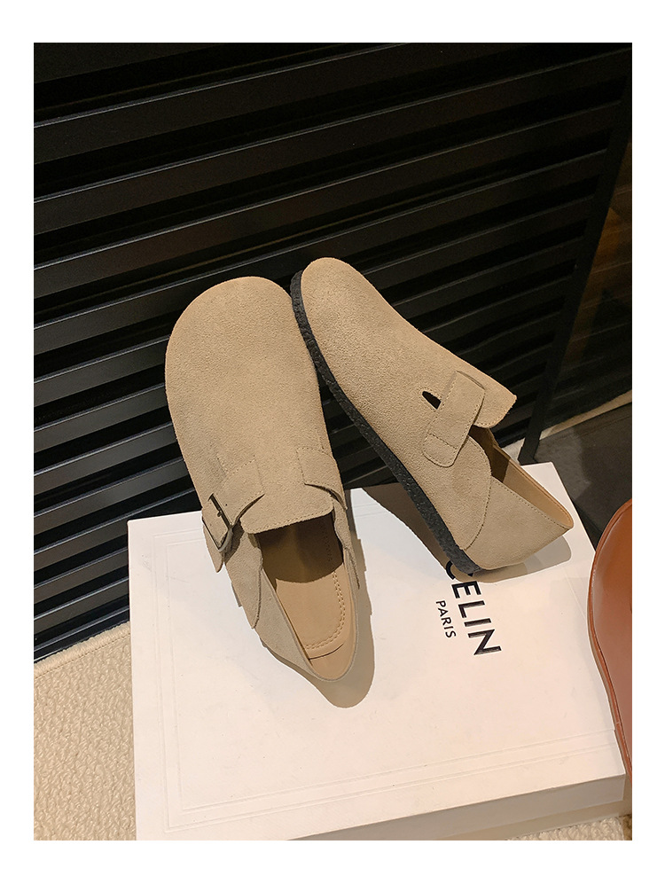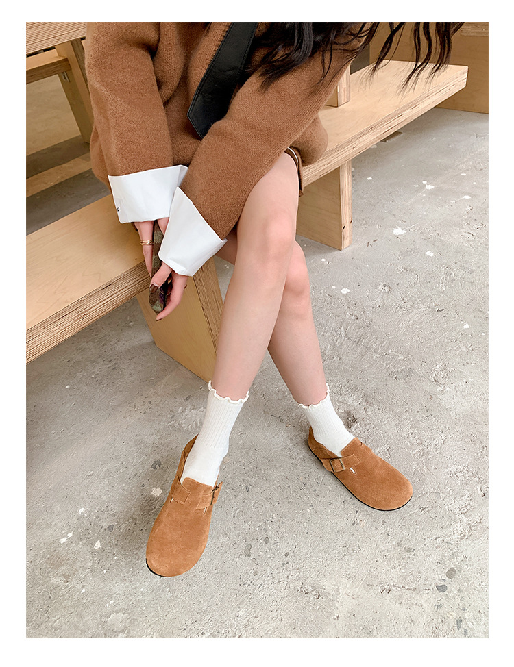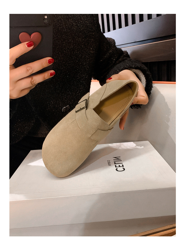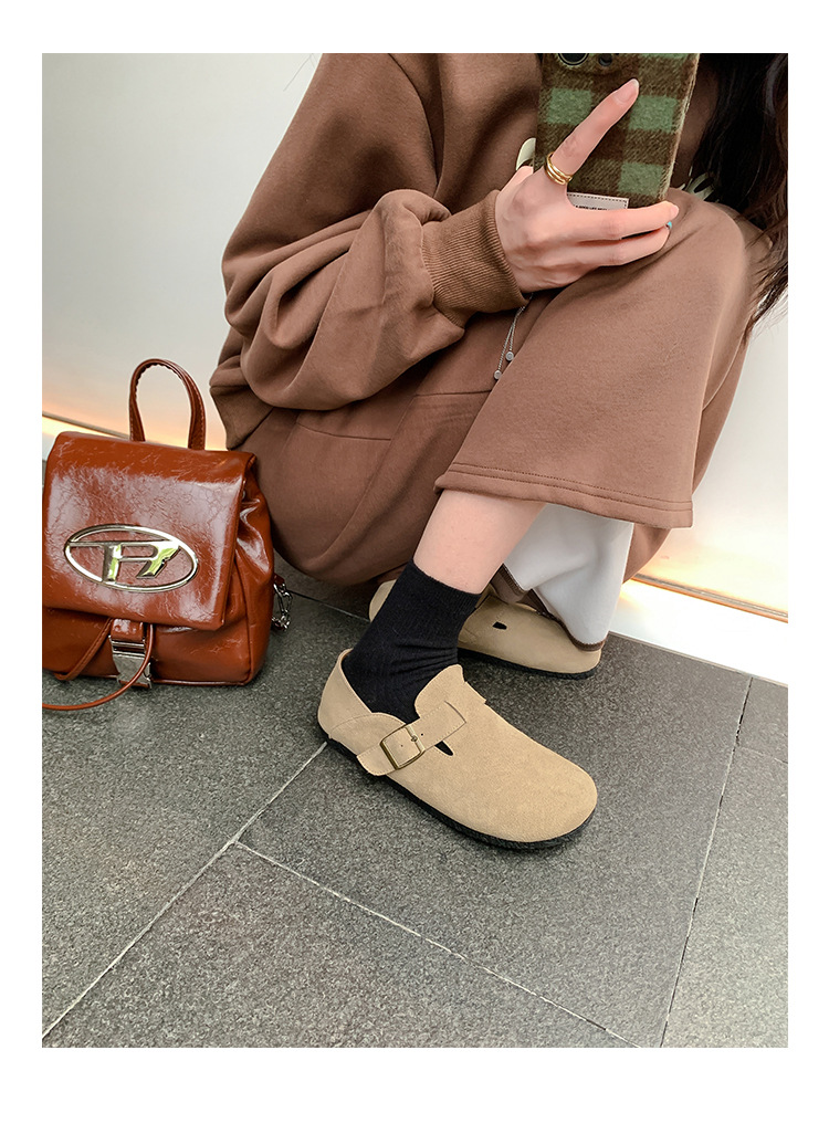 羊皮版 葡萄妈秋季新款毛毡平底大圆头勃肯鞋包头平底女单鞋真皮