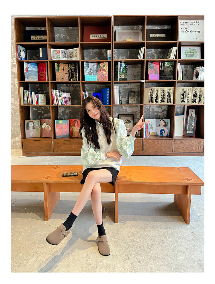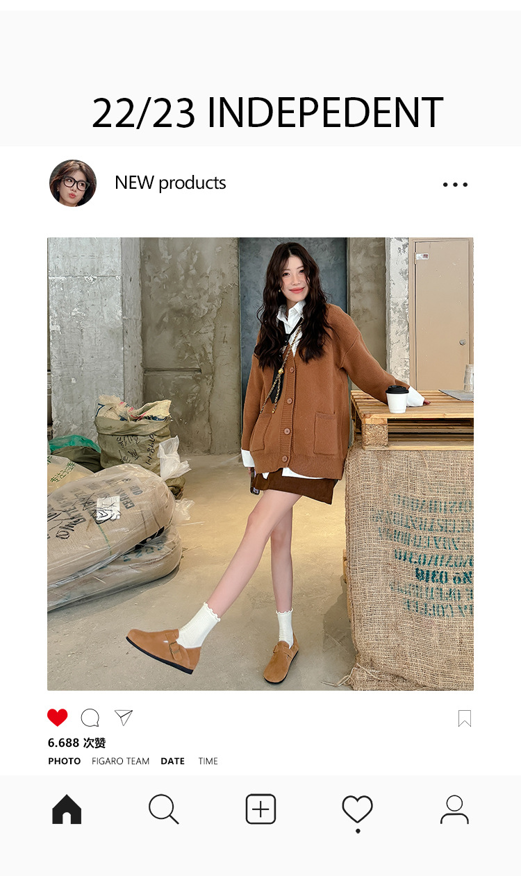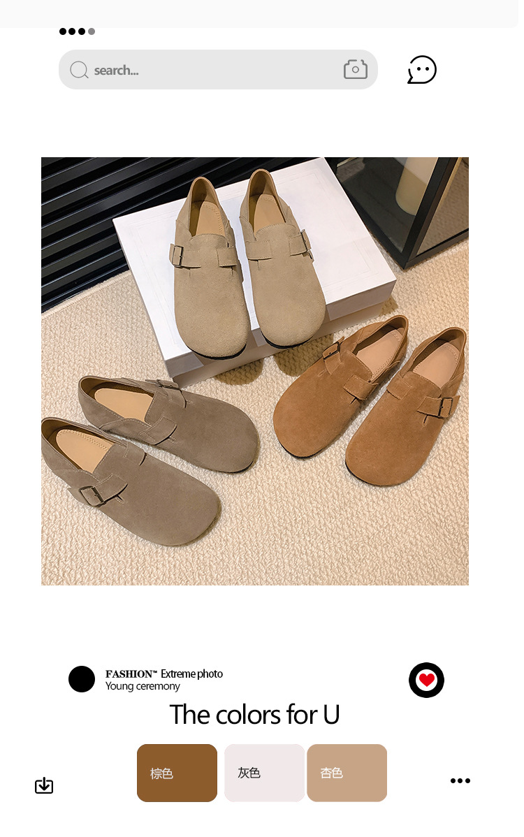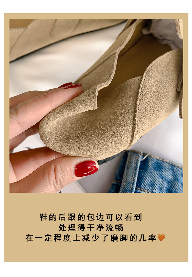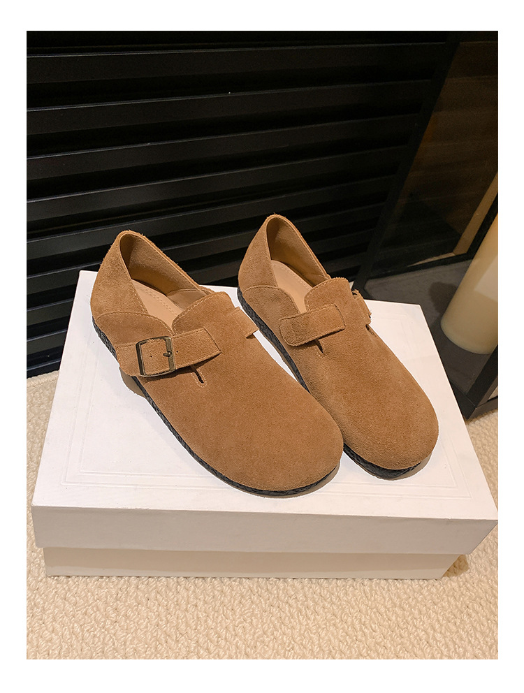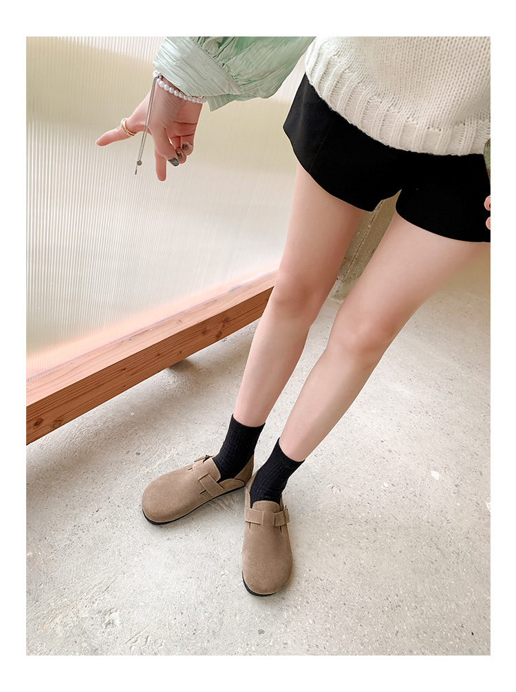 羊皮版 葡萄妈秋季新款毛毡平底大圆头勃肯鞋包头平底女单鞋真皮