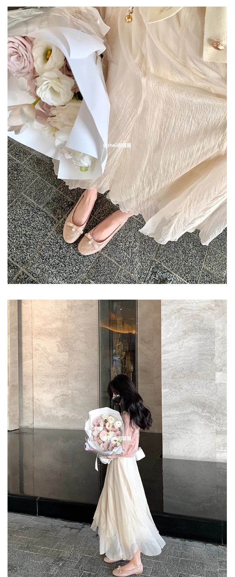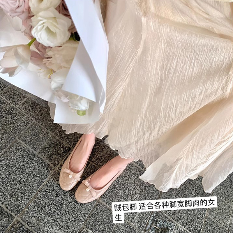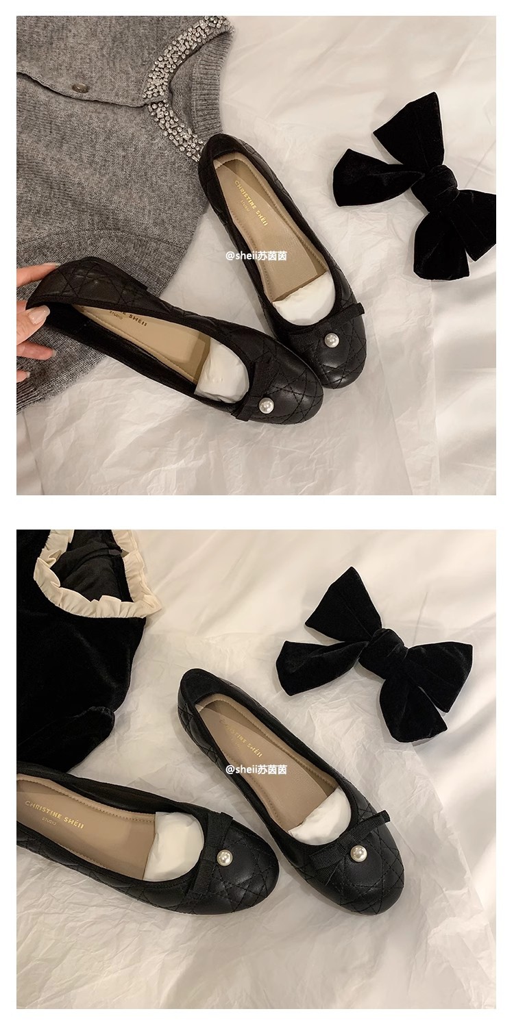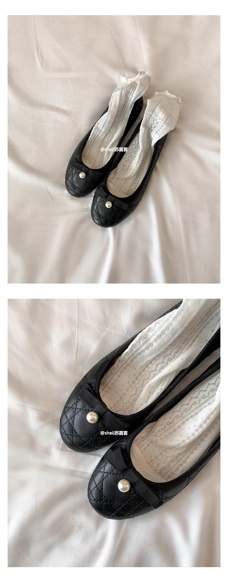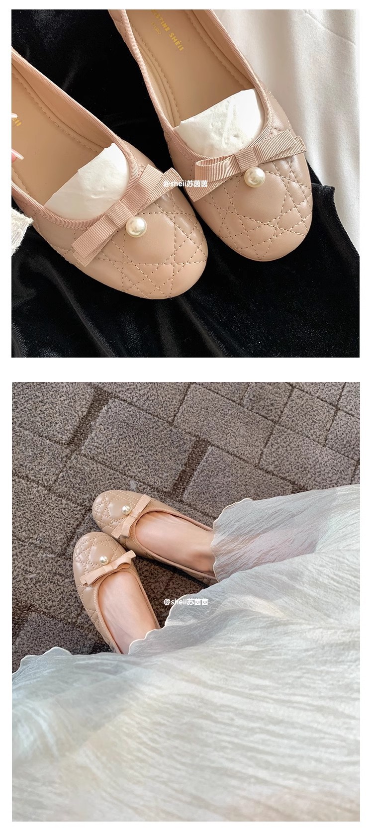 苏茵茵同款花漾小姐~甜美蝴蝶结小羊皮菱格珍珠平底单鞋芭蕾鞋女