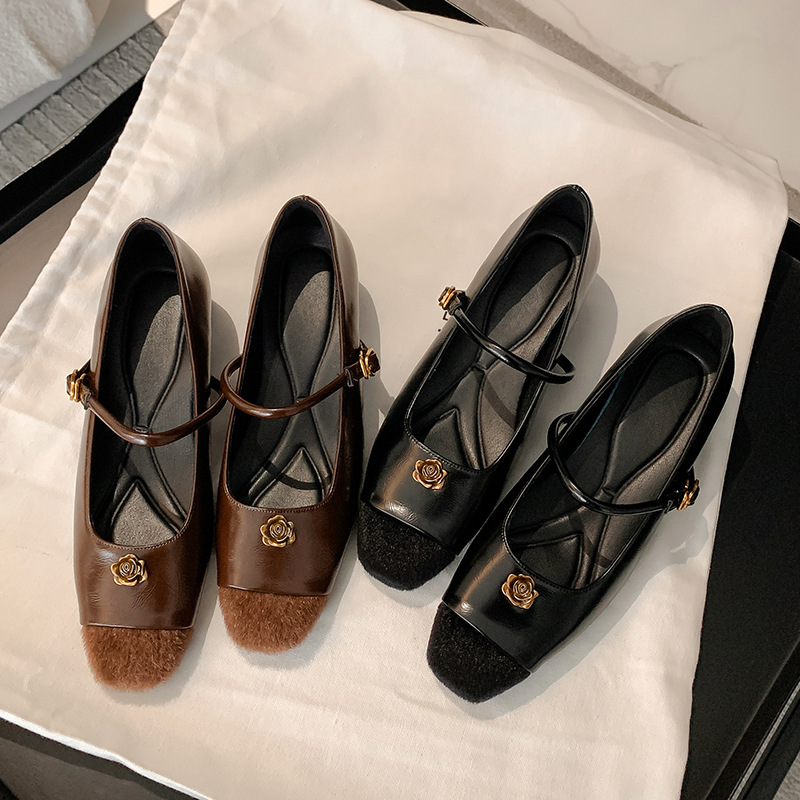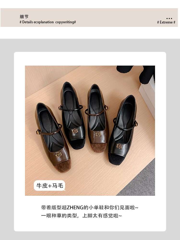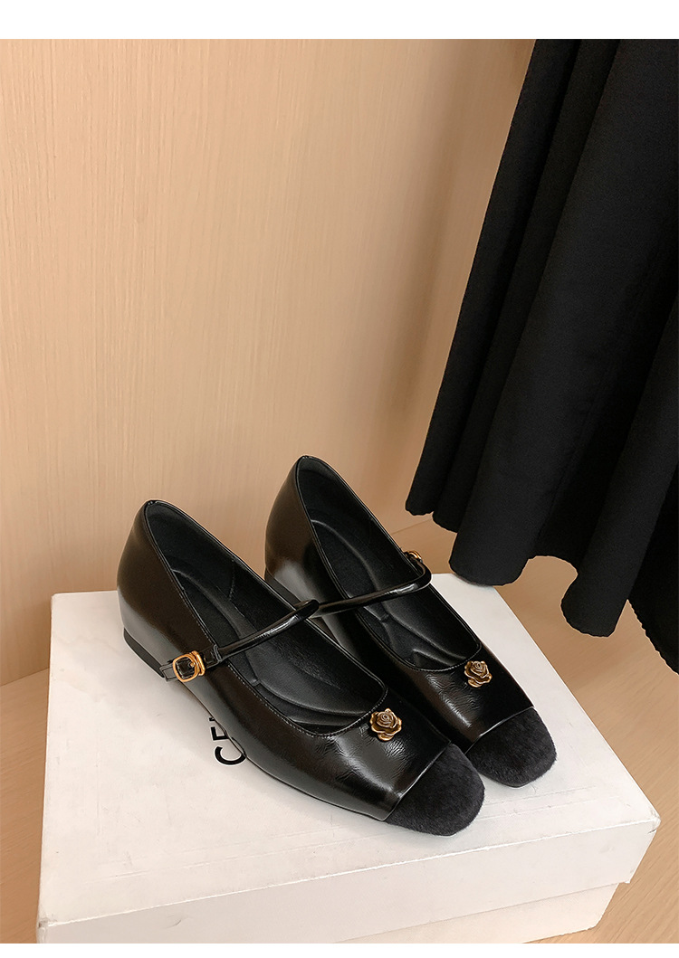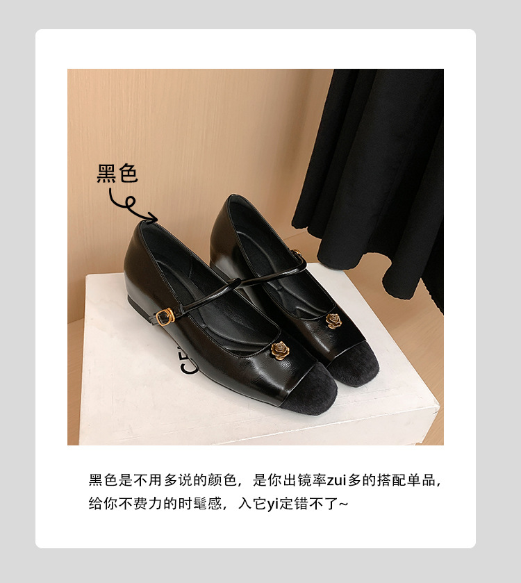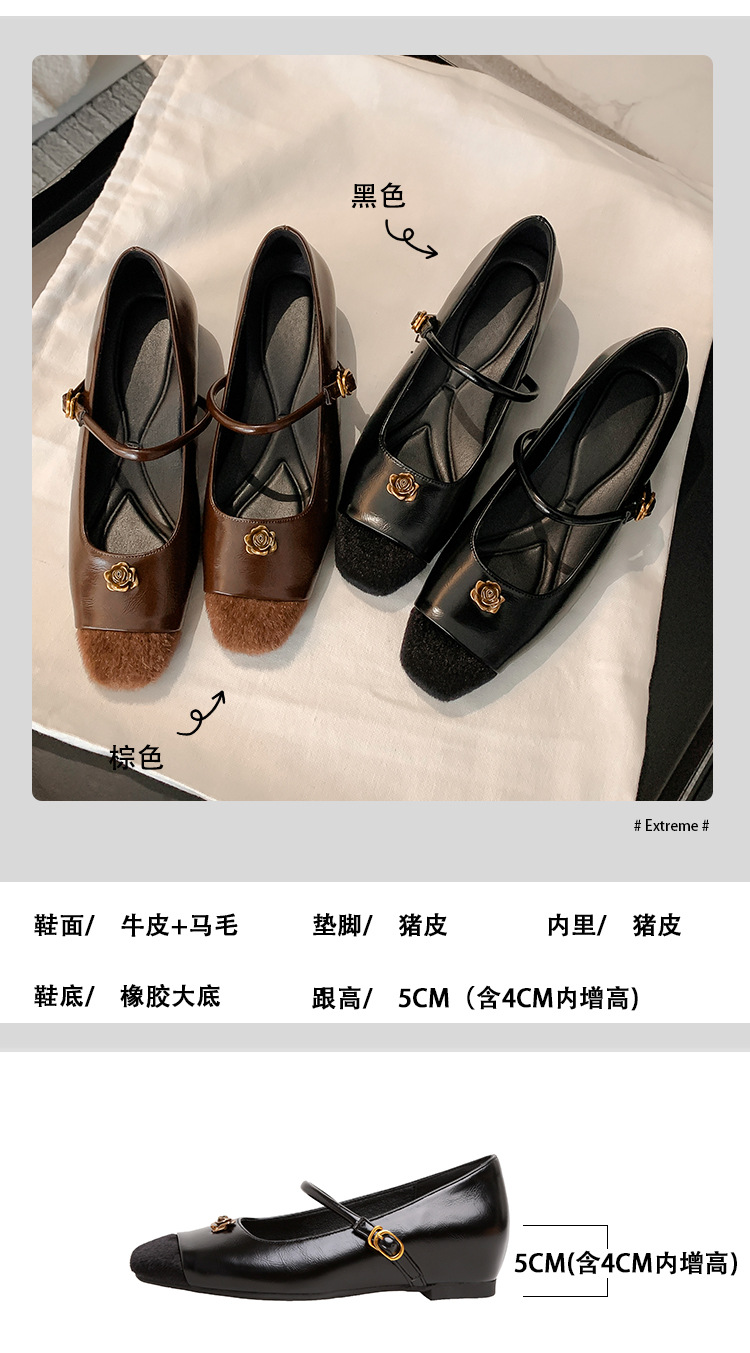 苏茵茵款内增高5cm单鞋小香风山茶花玛丽珍鞋女一字带气质复古晚晚鞋