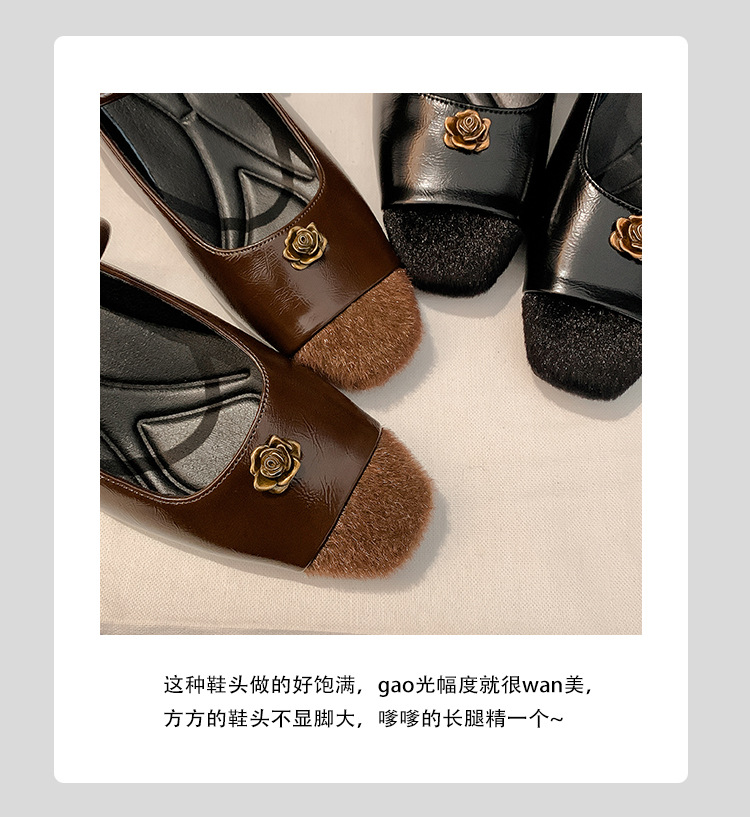 现货秒发!葡萄妈同款鞋miu家英伦风真皮拼色尖头后空高跟凉鞋