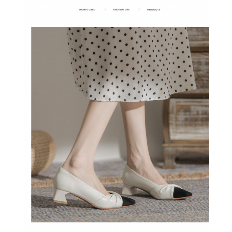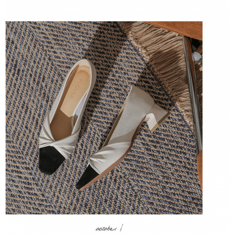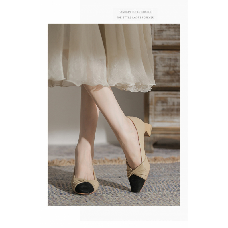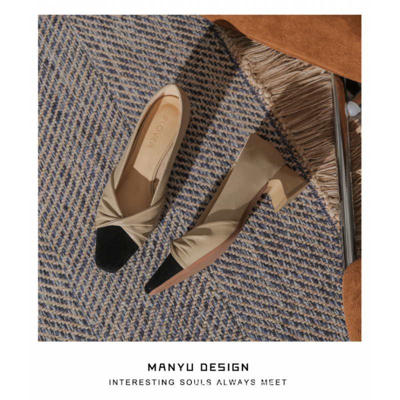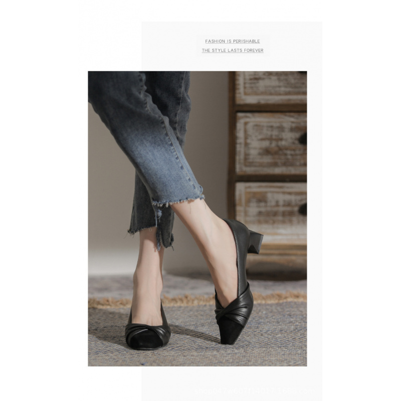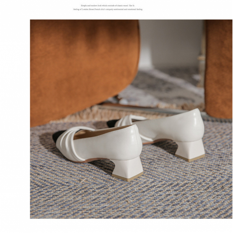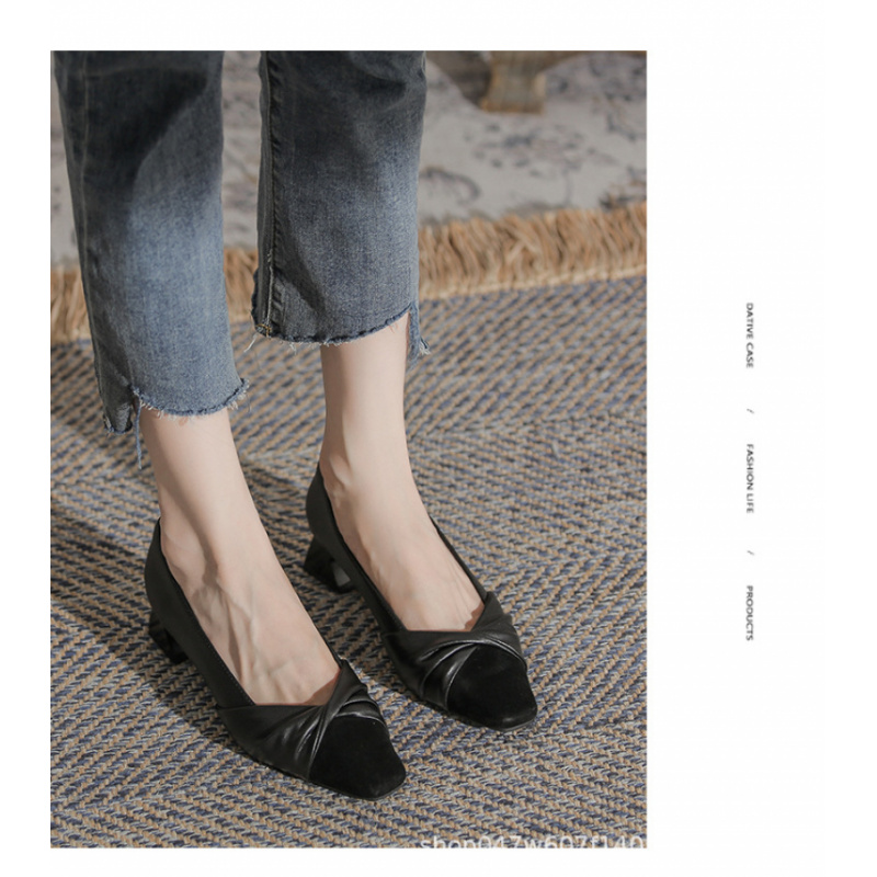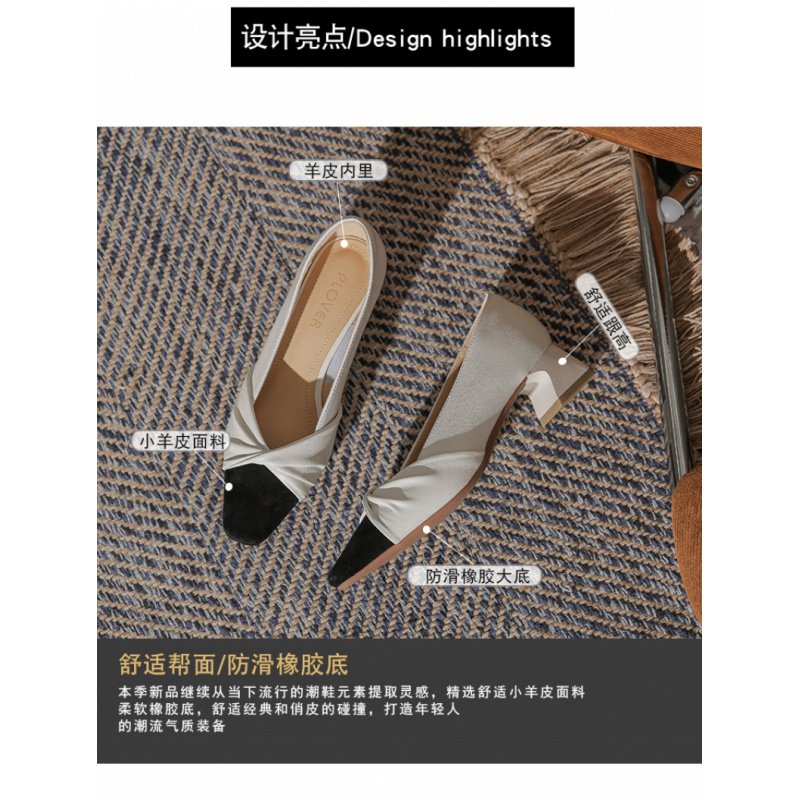苏茵茵款羊皮版~复古方头粗跟浅口羊皮晚风温柔法式高跟鞋小香风单鞋女春 苏茵茵款羊皮版~复古方头粗跟浅口羊皮晚风温柔法式高跟鞋小香风单鞋女春