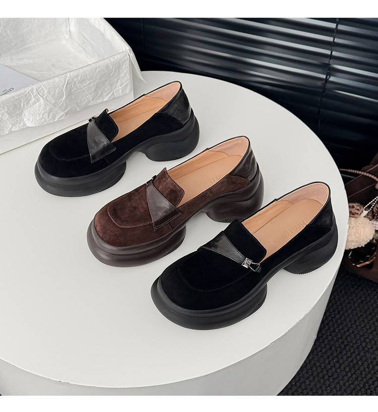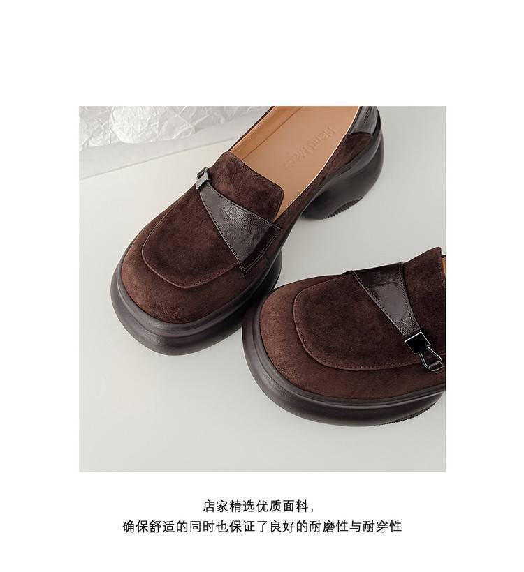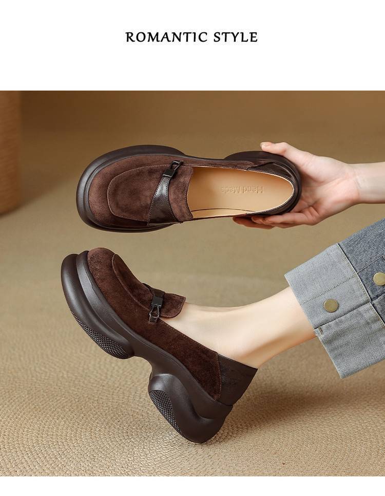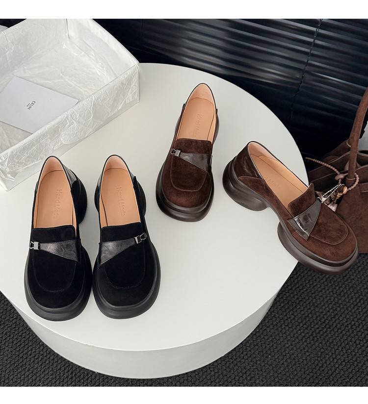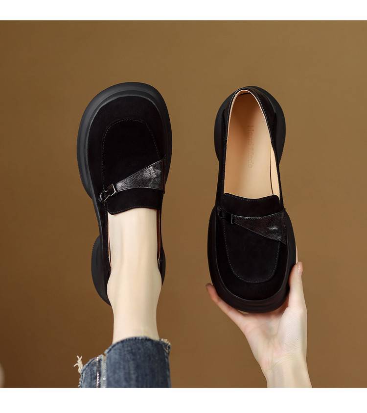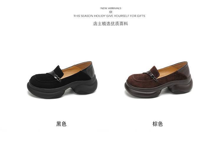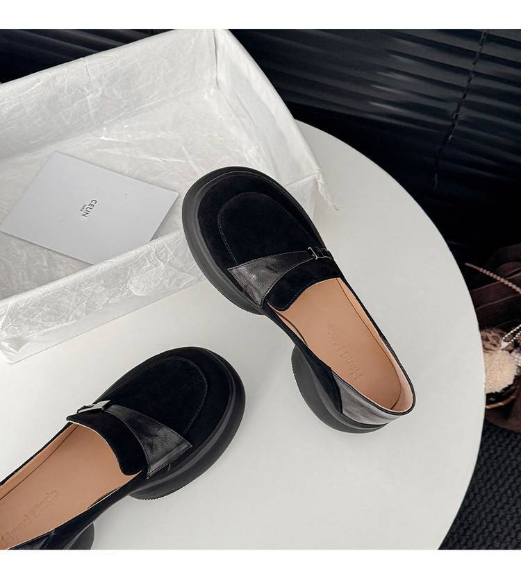 英伦风磨砂厚底复古圆头乐福鞋女粗跟松糕底皮带扣小皮鞋懒人单鞋