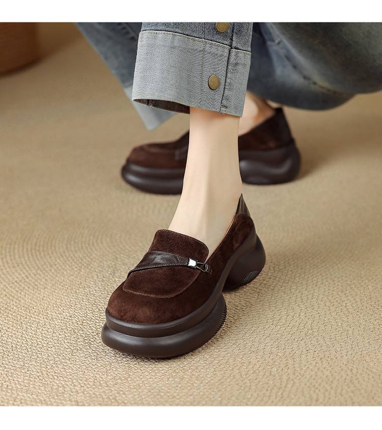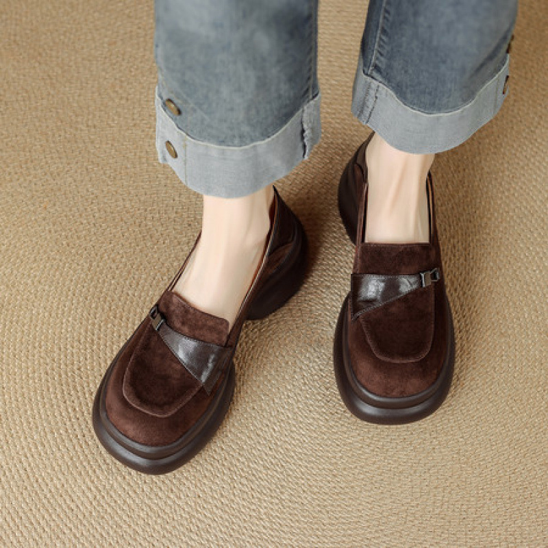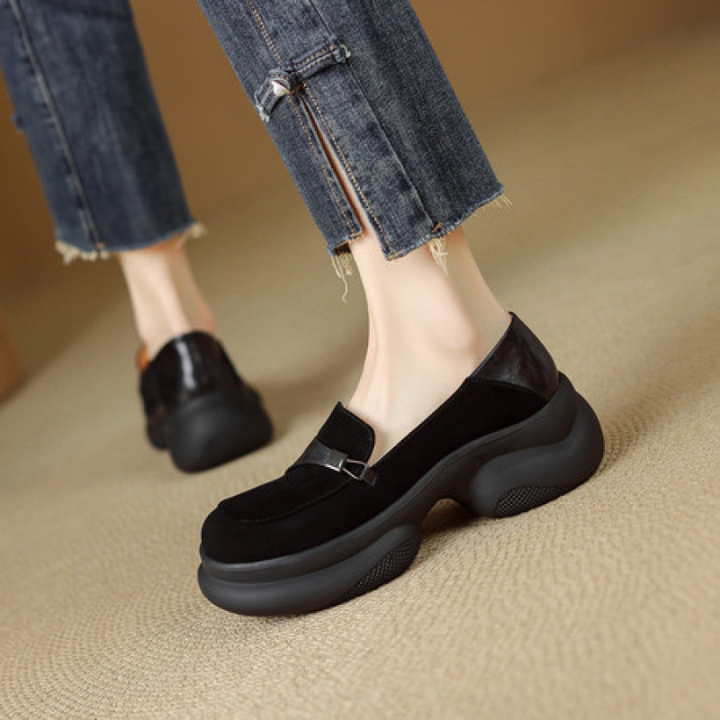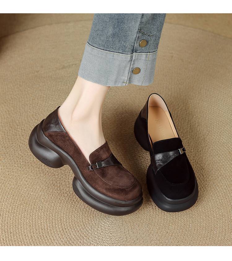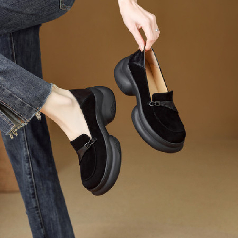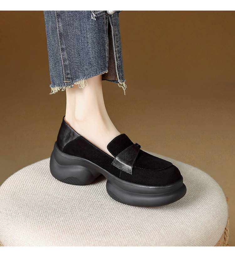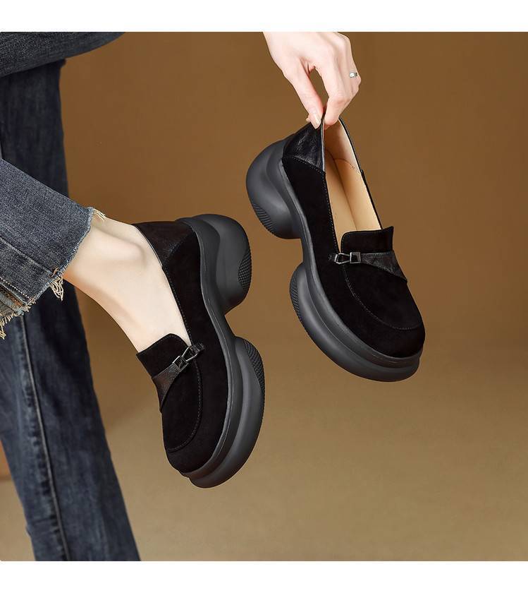 英伦风磨砂厚底复古圆头乐福鞋女粗跟松糕底皮带扣小皮鞋懒人单鞋