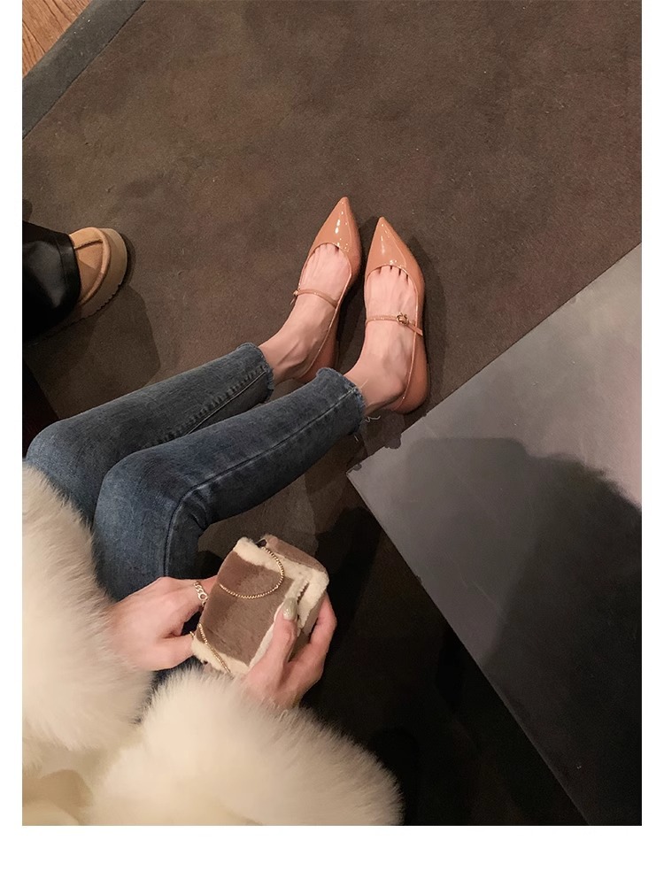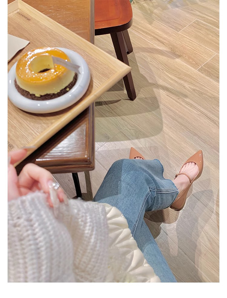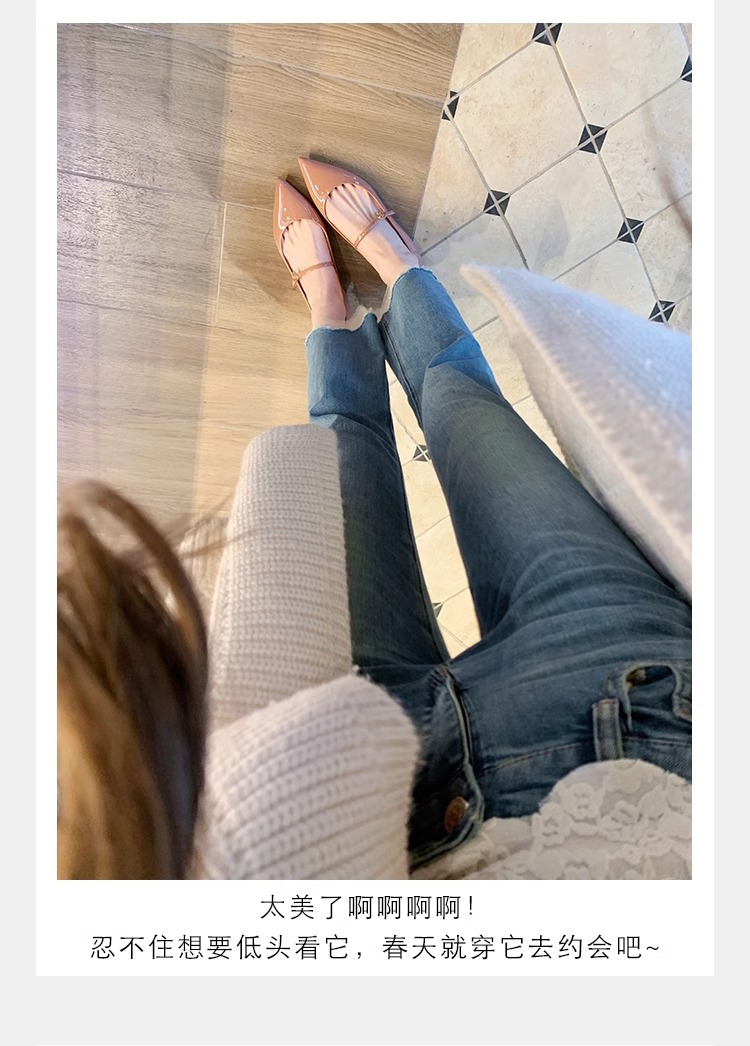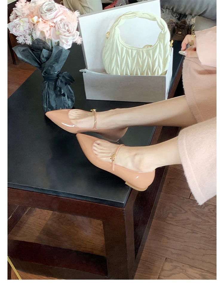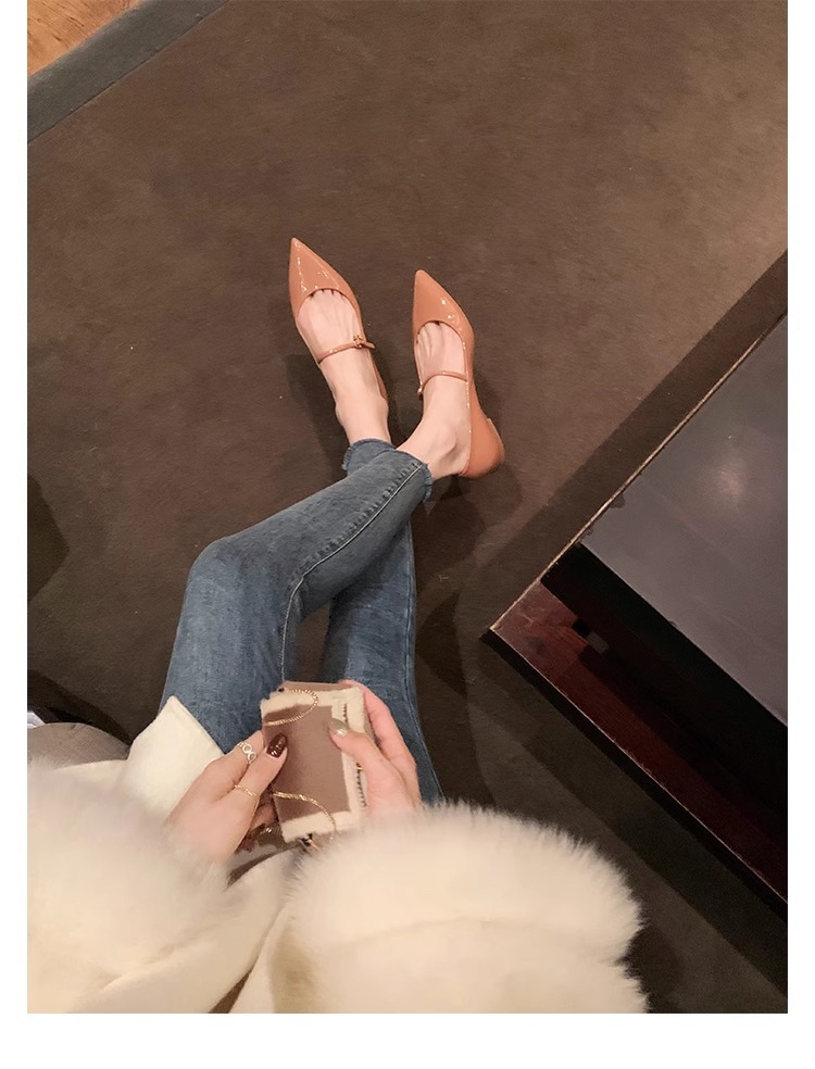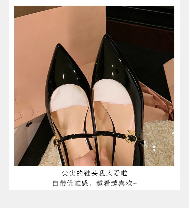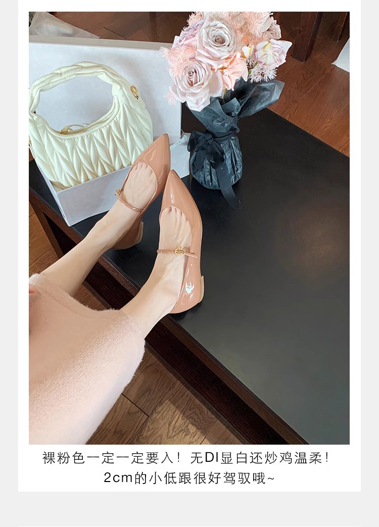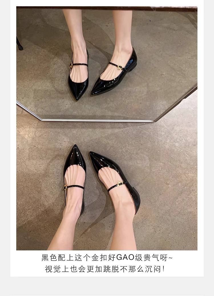 葡萄妈同款气质小尖头显瘦一字带浅口小低跟单鞋女春秋玛丽珍鞋女