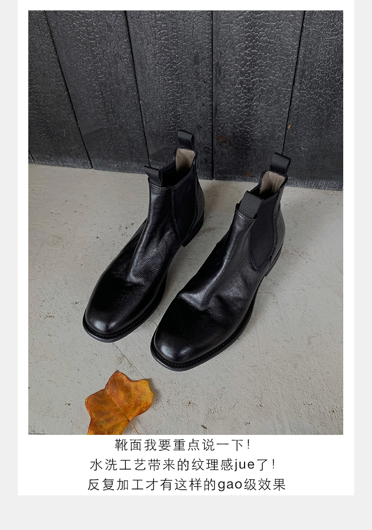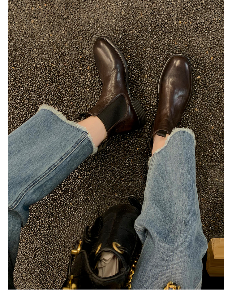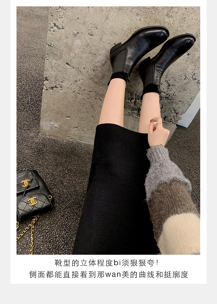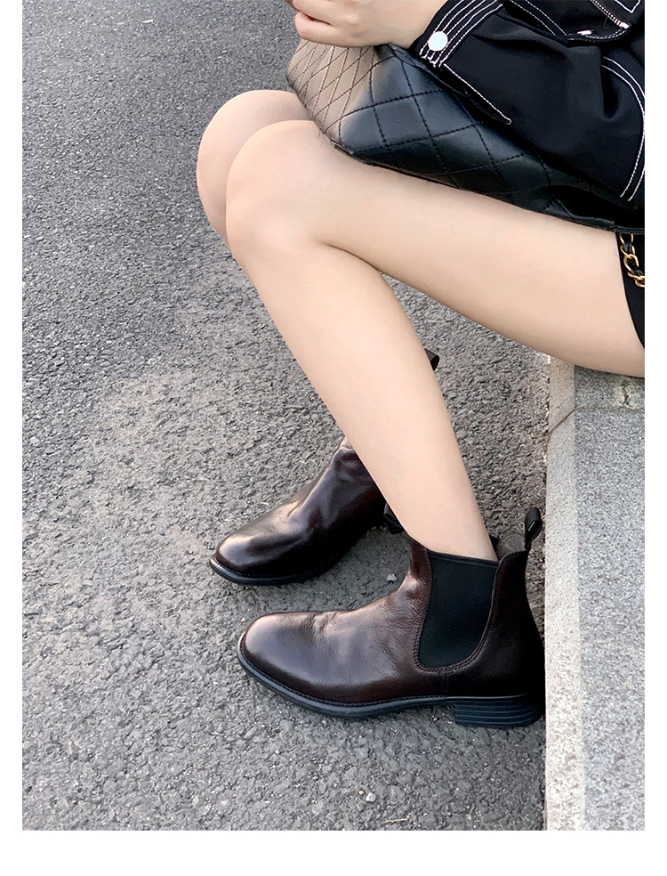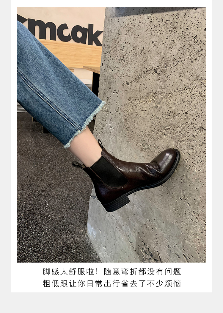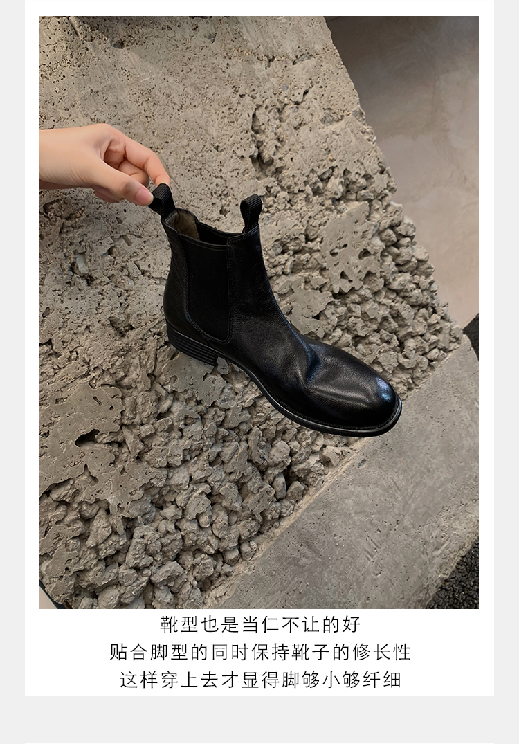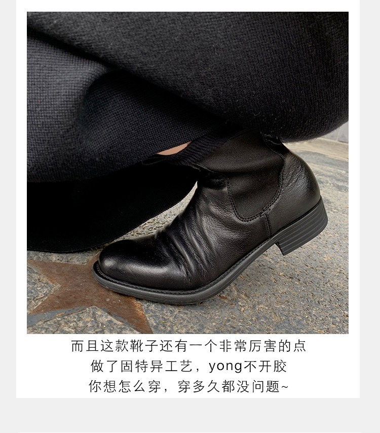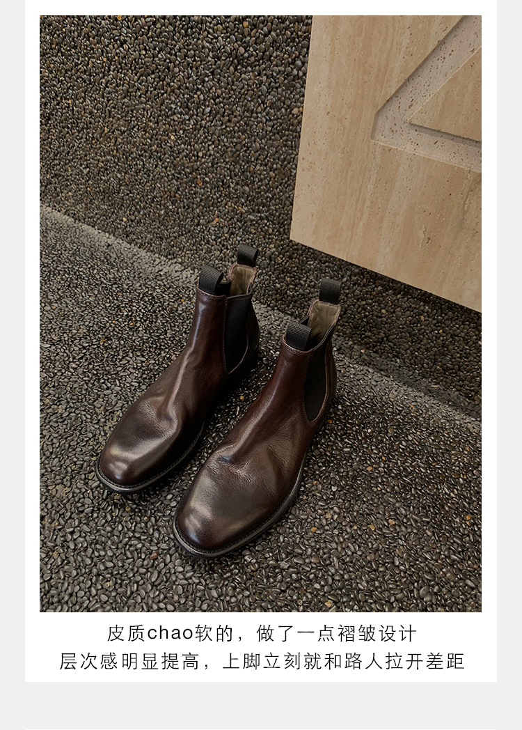 葡萄妈同款鞋意式风情褶皱时髦低筒切尔西秋冬季短靴女