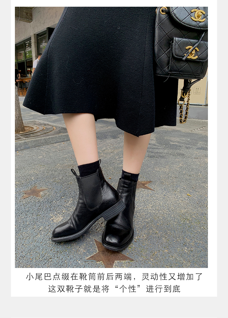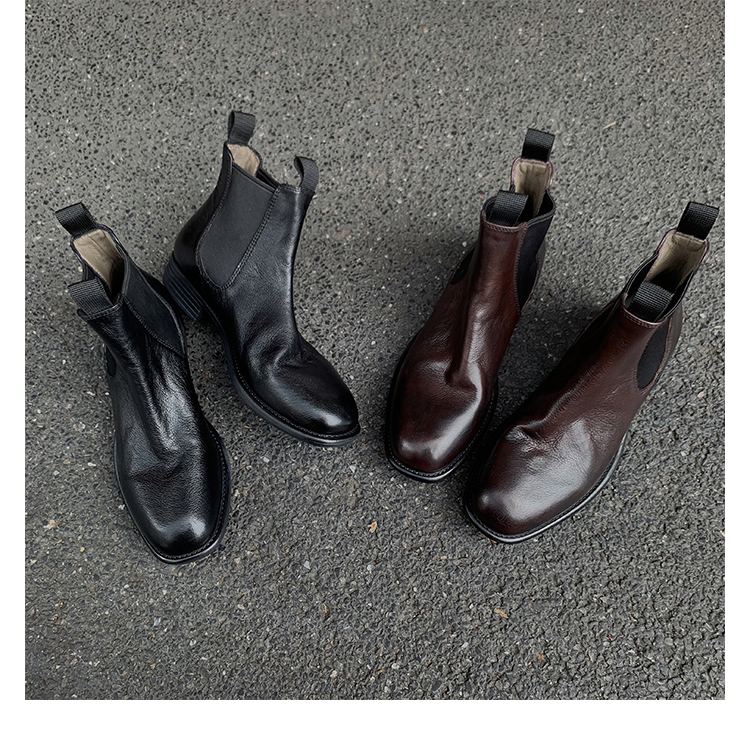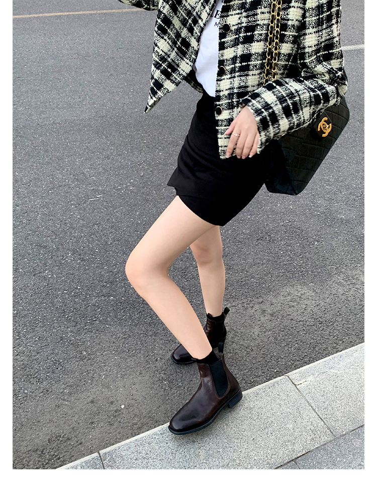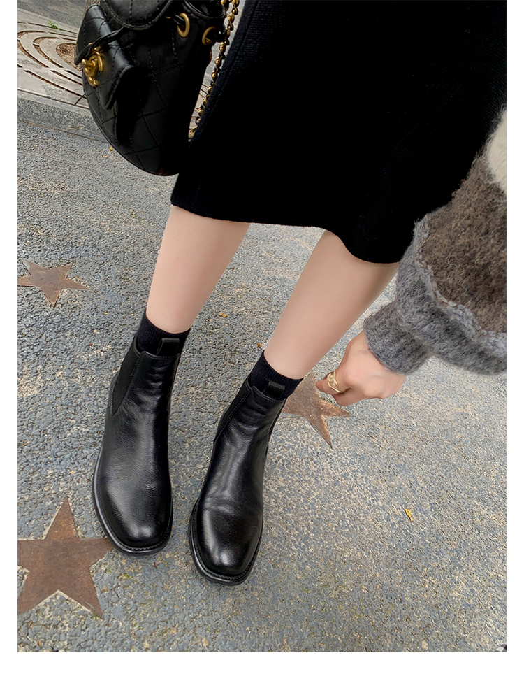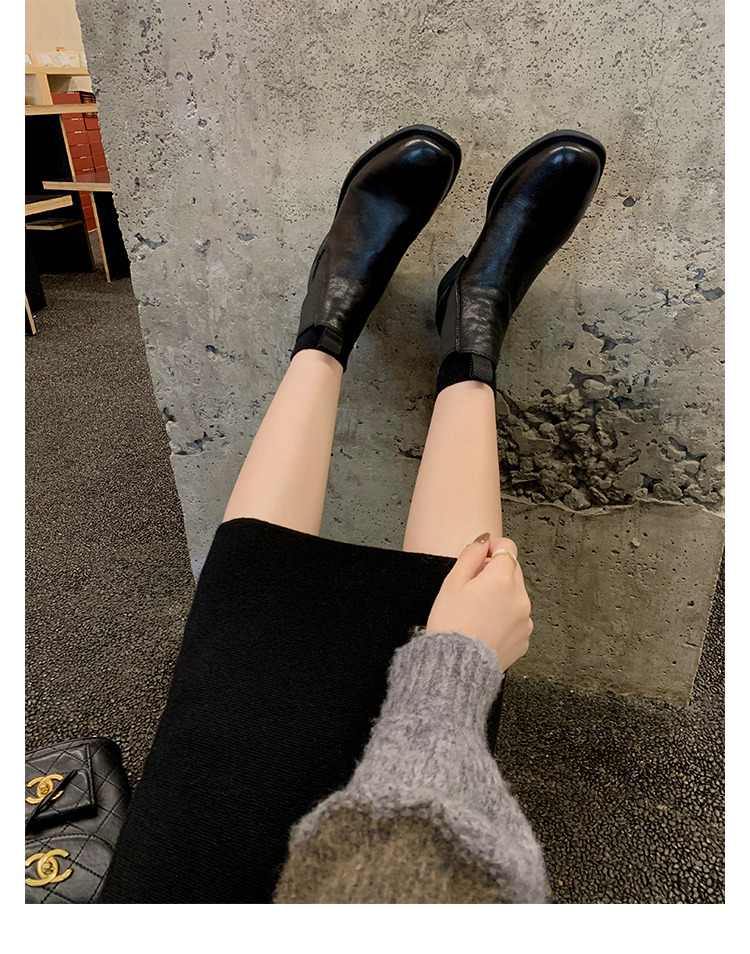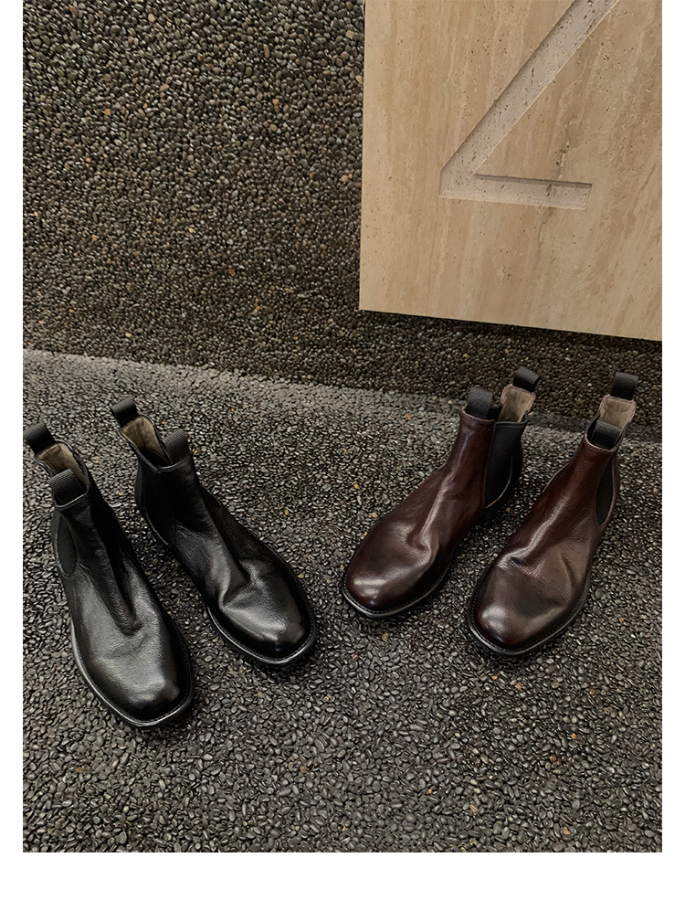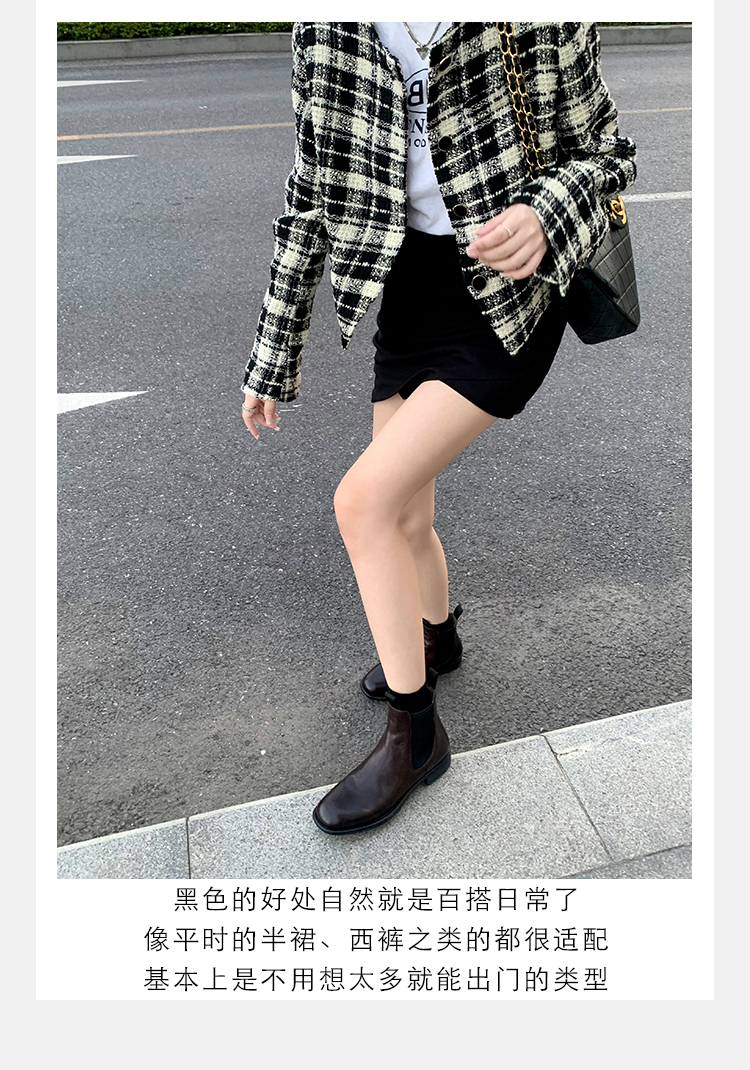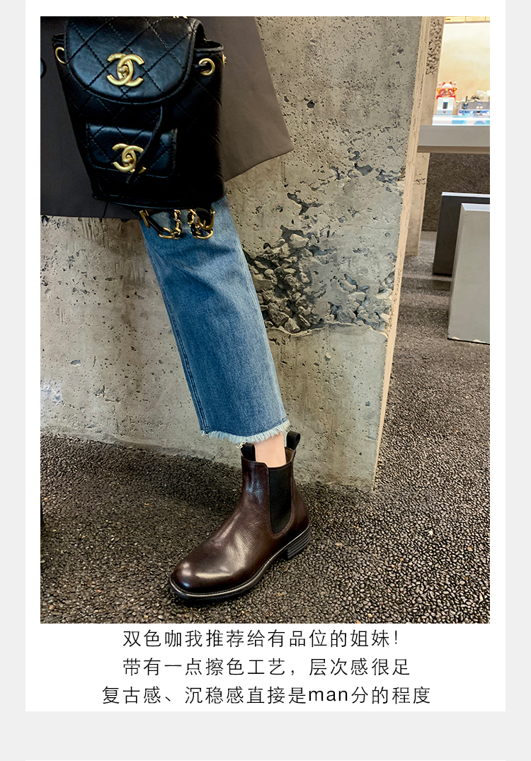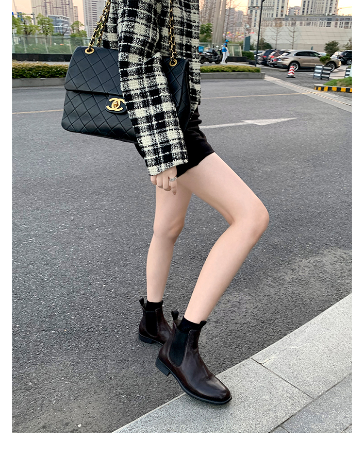 葡萄妈同款鞋意式风情褶皱时髦低筒切尔西秋冬季短靴女