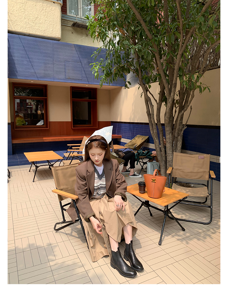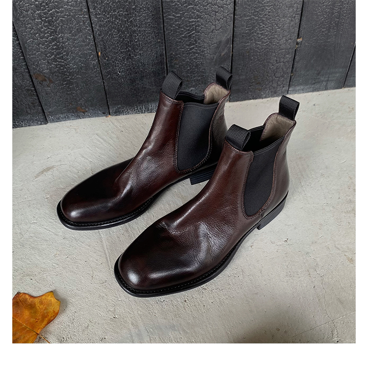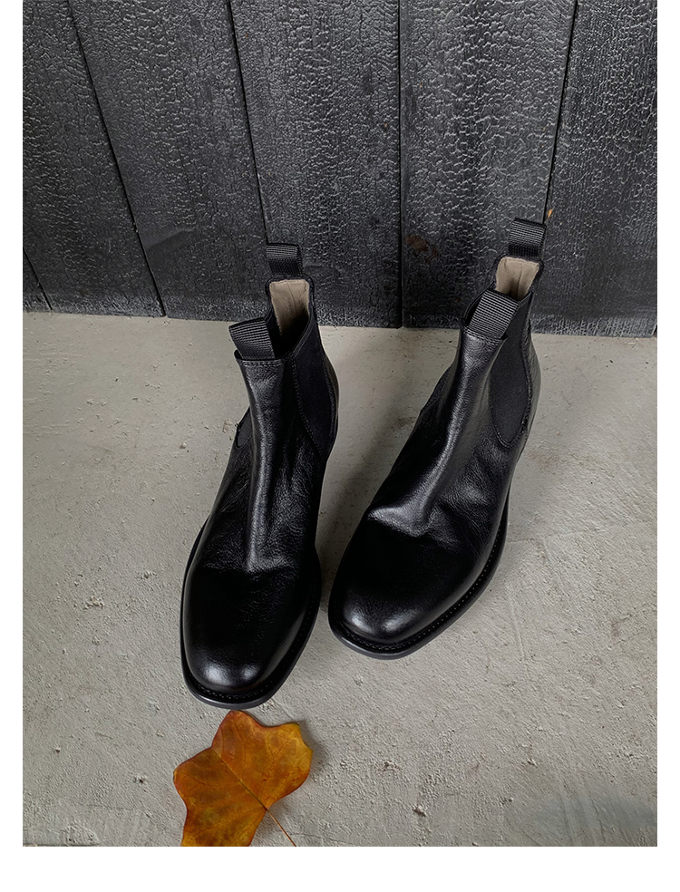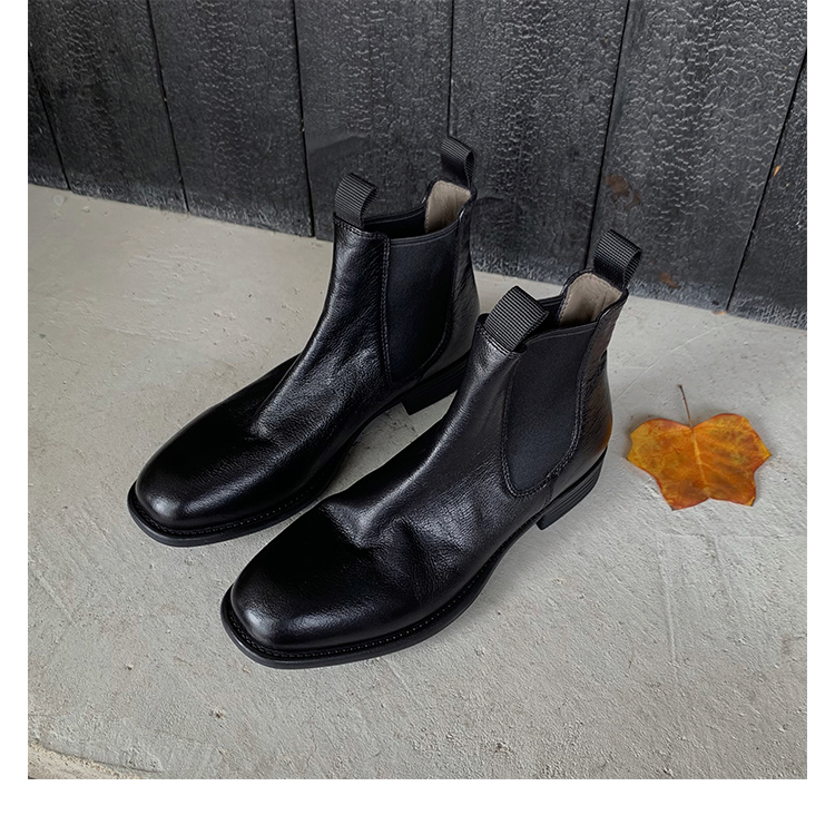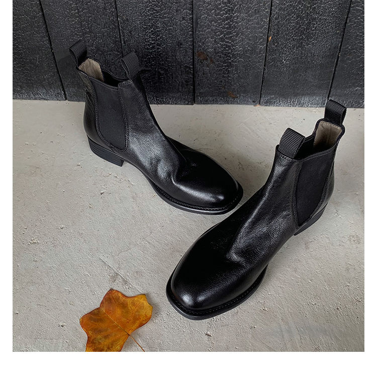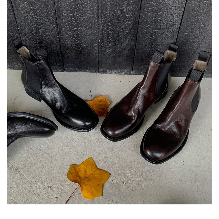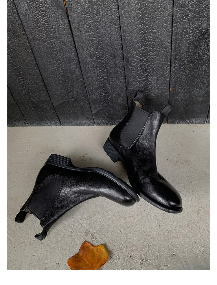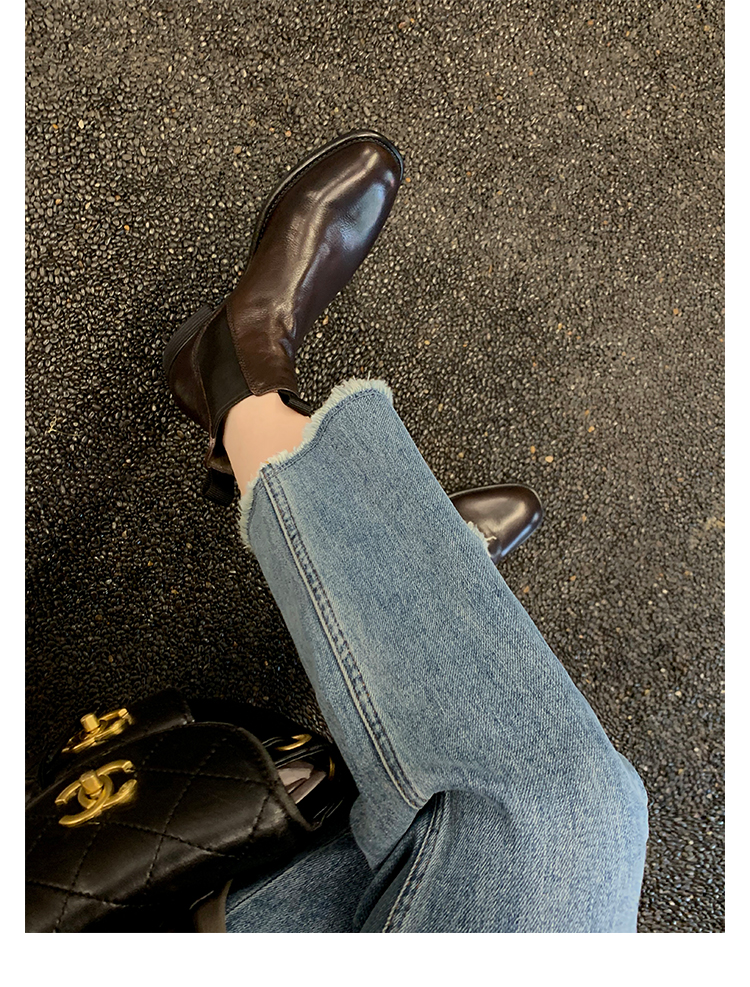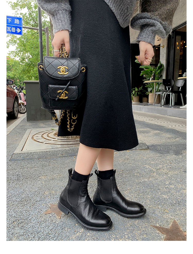 葡萄妈同款鞋意式风情褶皱时髦低筒切尔西秋冬季短靴女