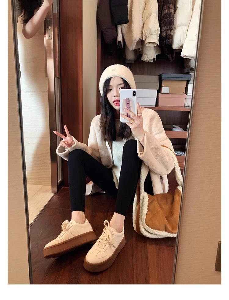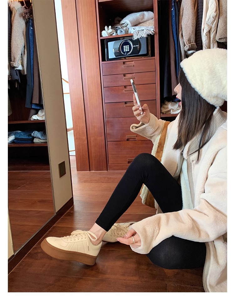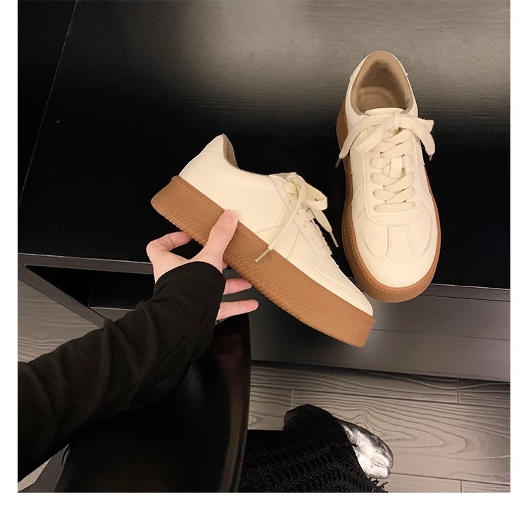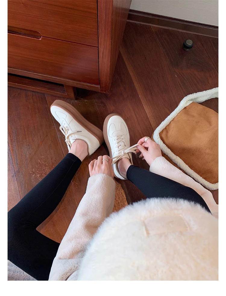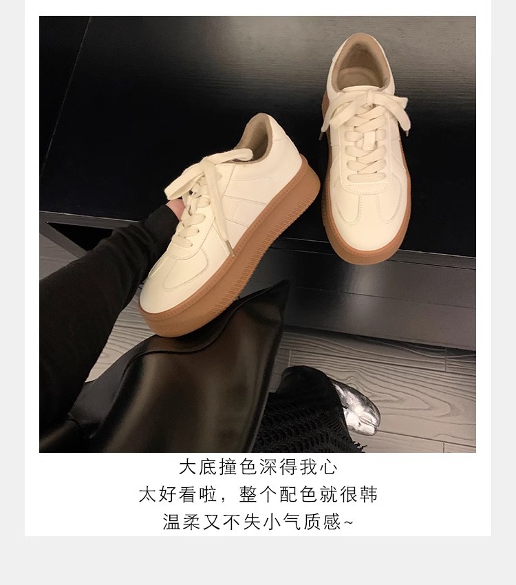 葡萄妈圆头厚底运动鞋撞色减龄系带德训鞋板鞋休闲小白鞋春季新款