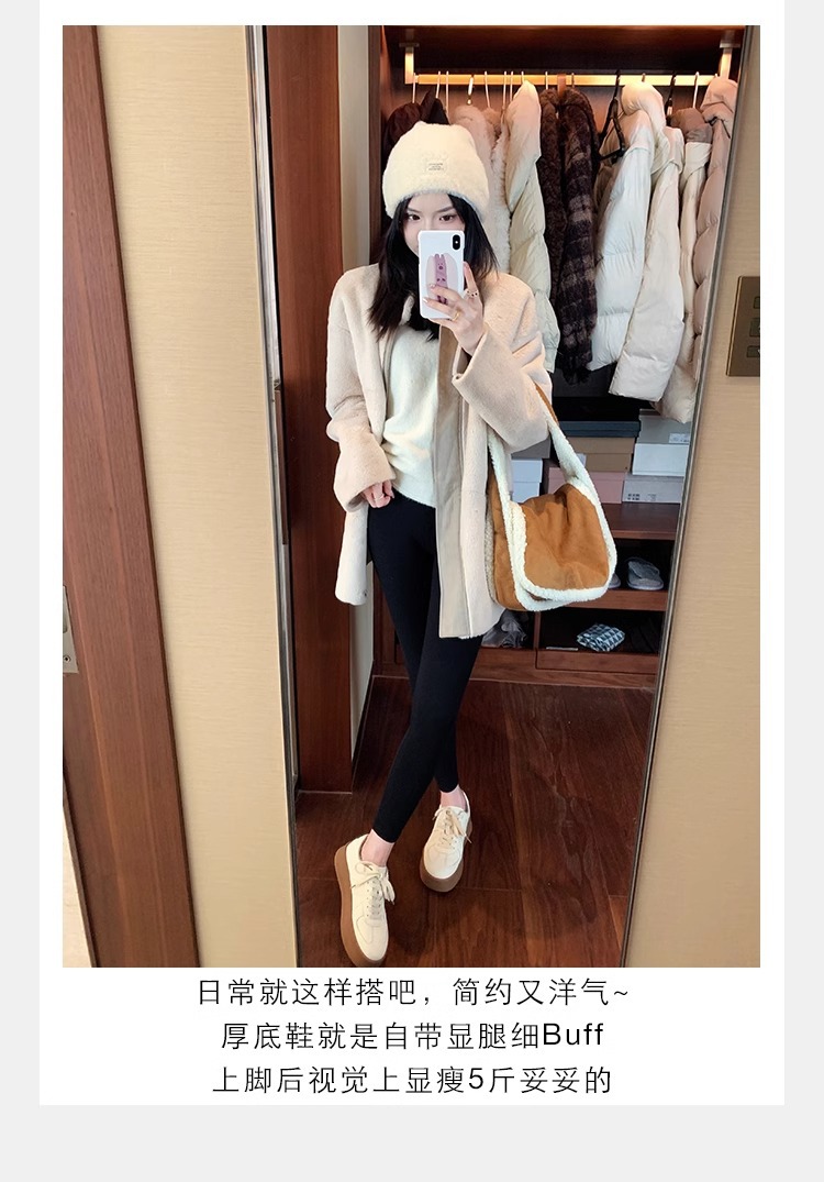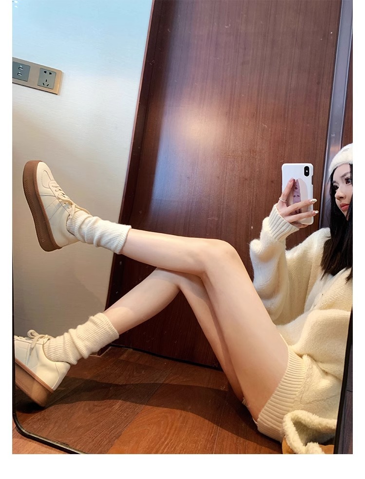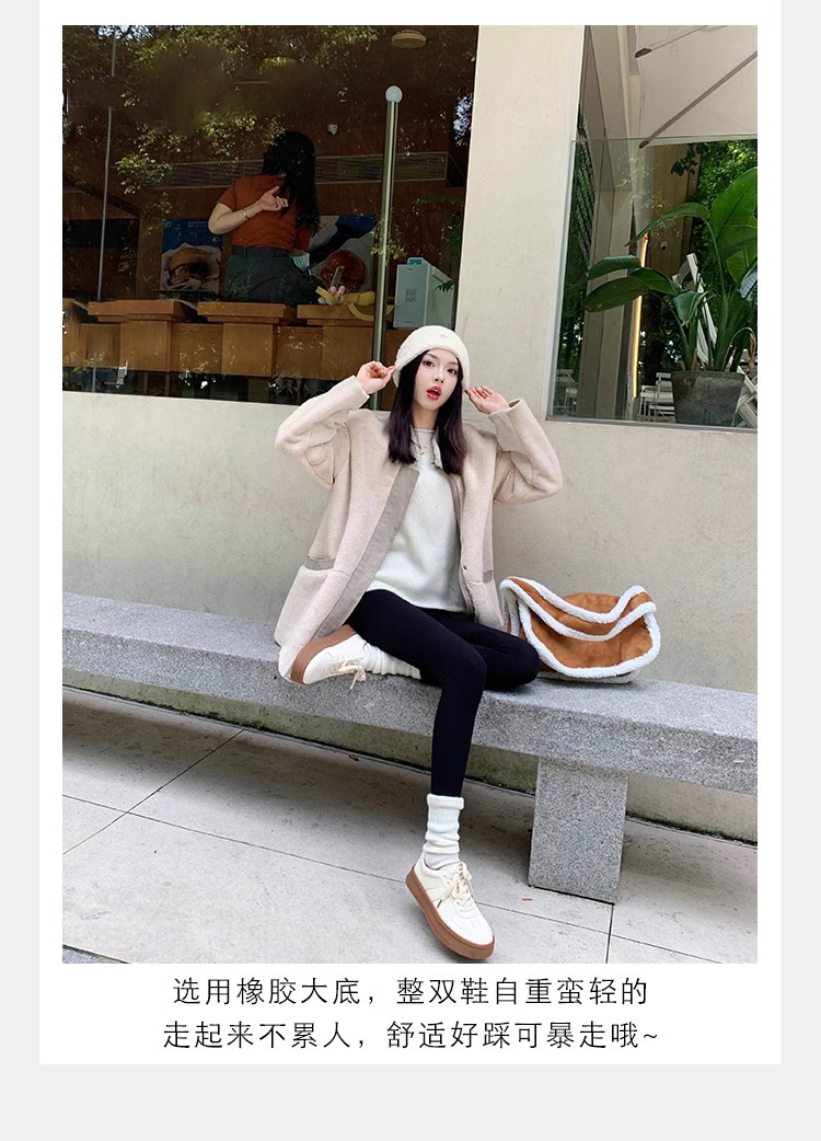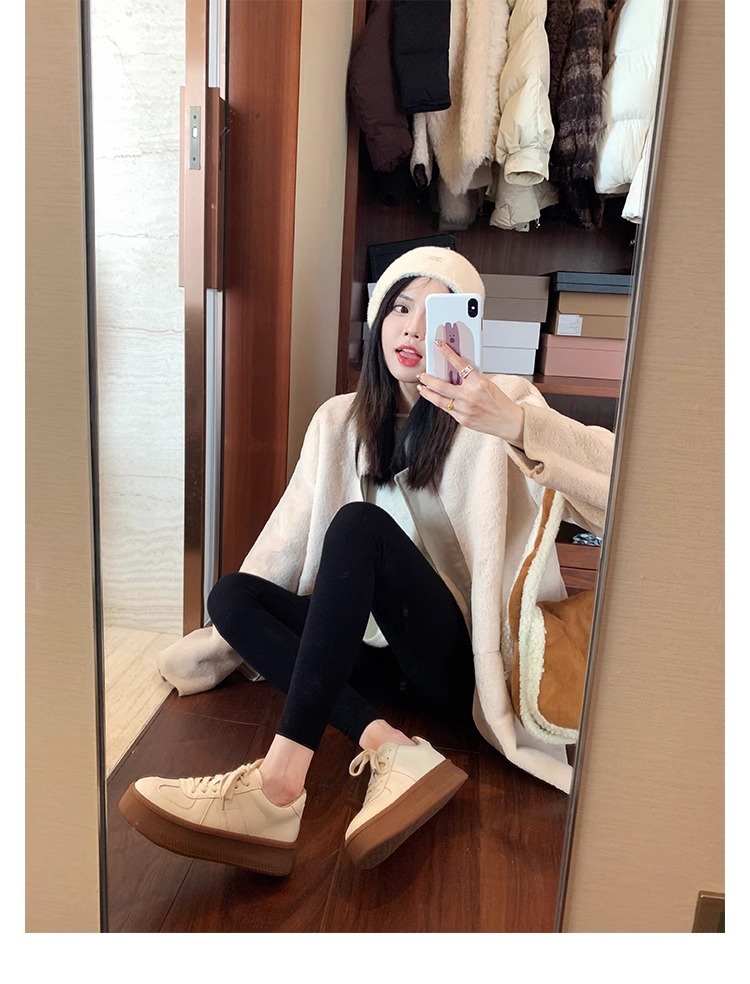 葡萄妈圆头厚底运动鞋撞色减龄系带德训鞋板鞋休闲小白鞋春季新款