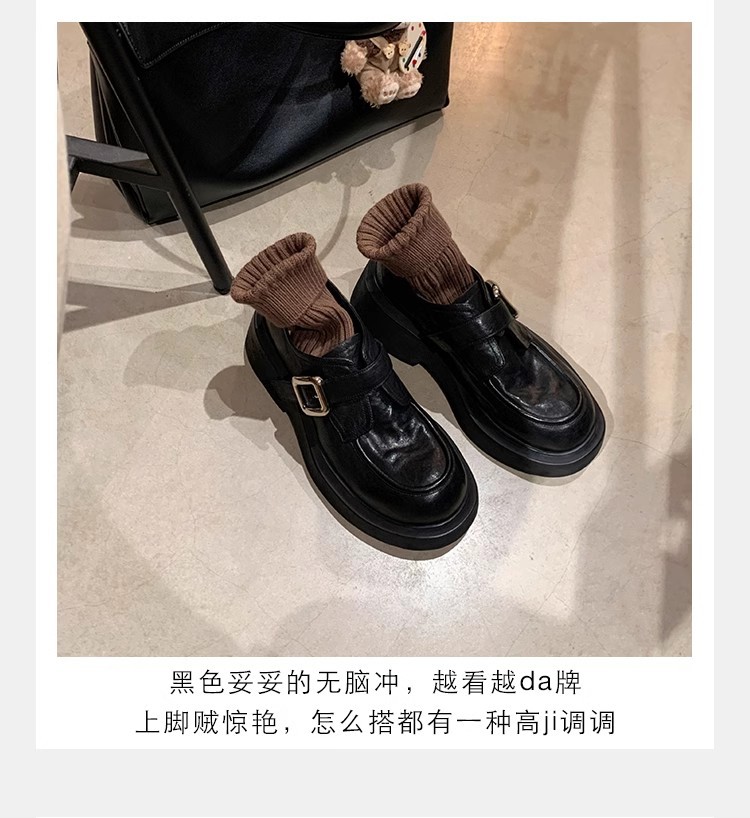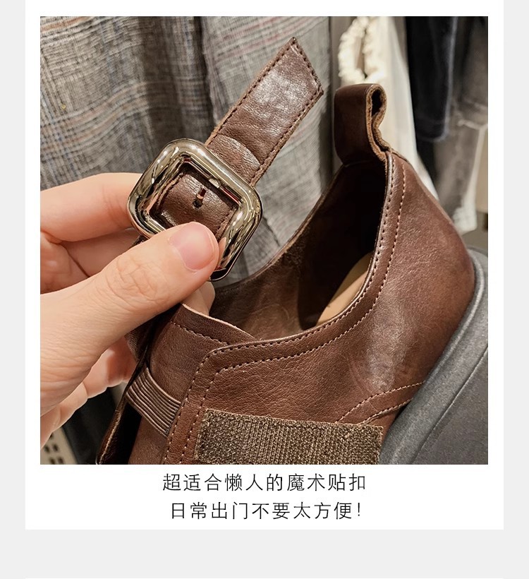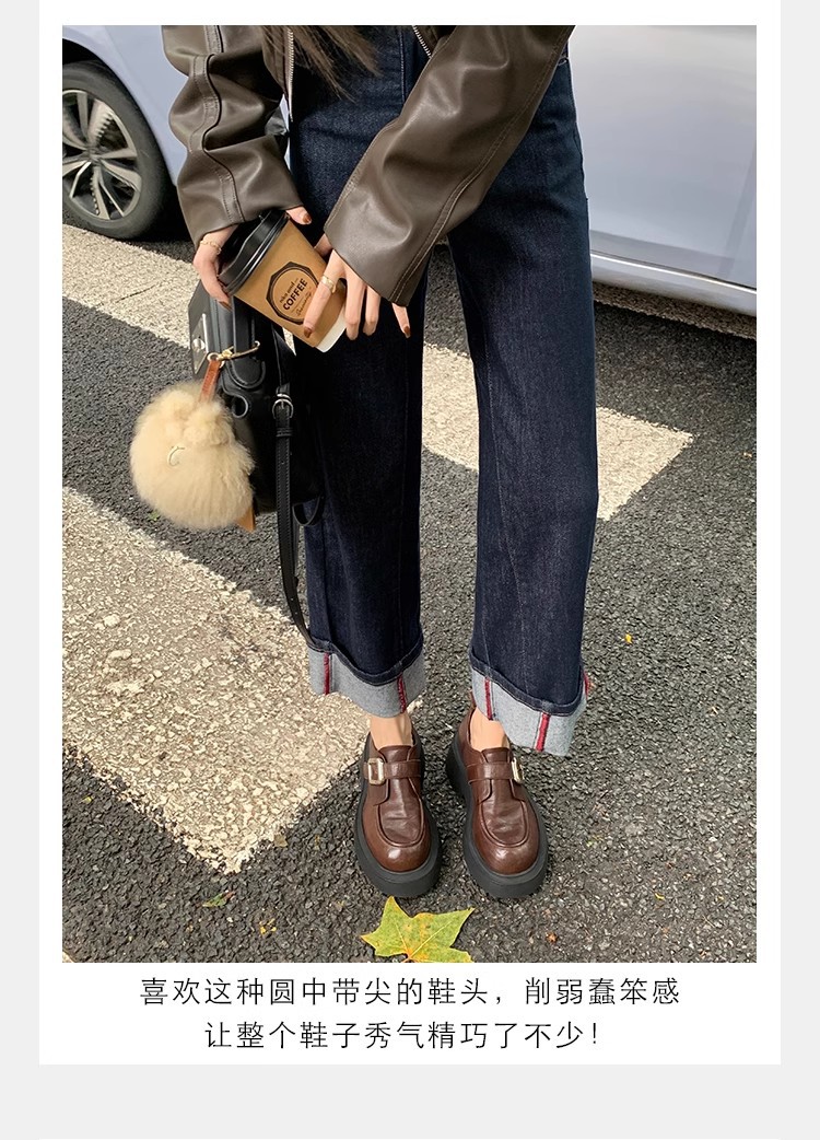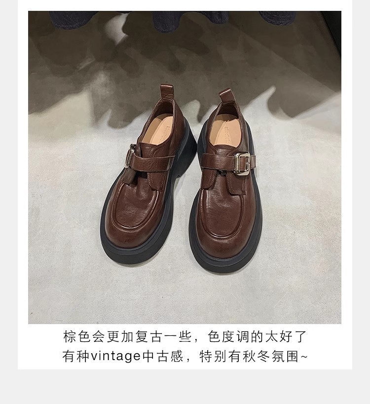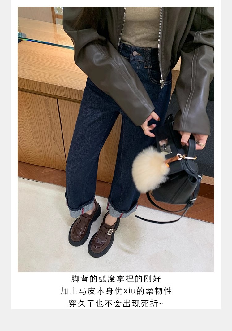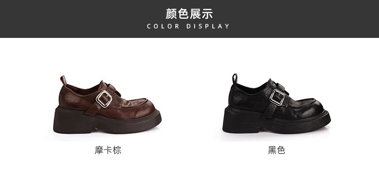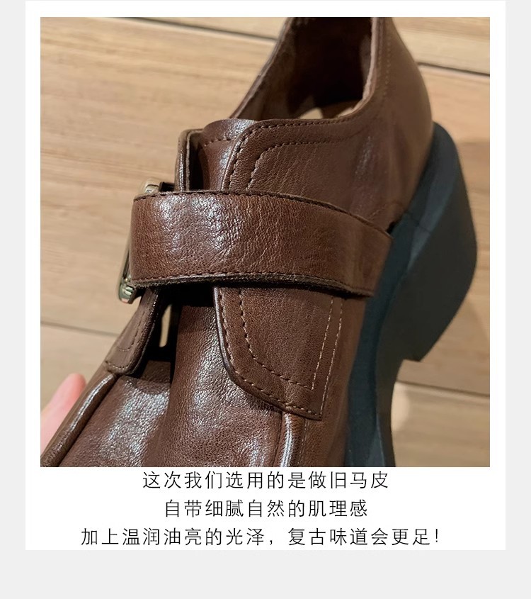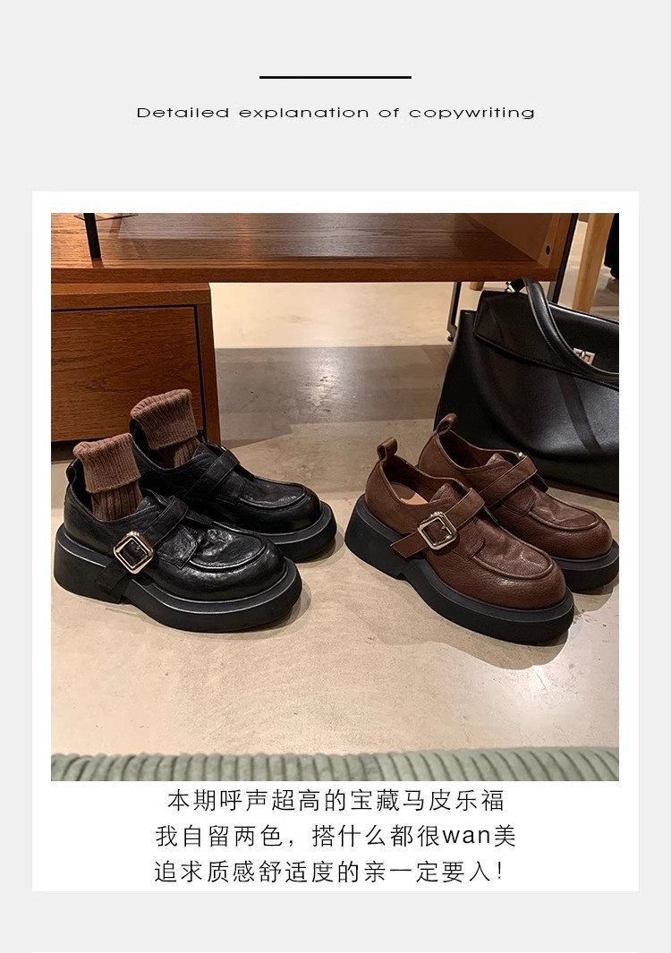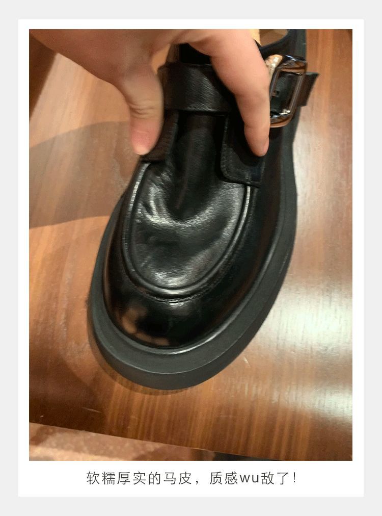 葡萄妈秋冬新款水洗马皮圆头英伦风一脚蹬粗跟乐福单鞋小皮鞋女