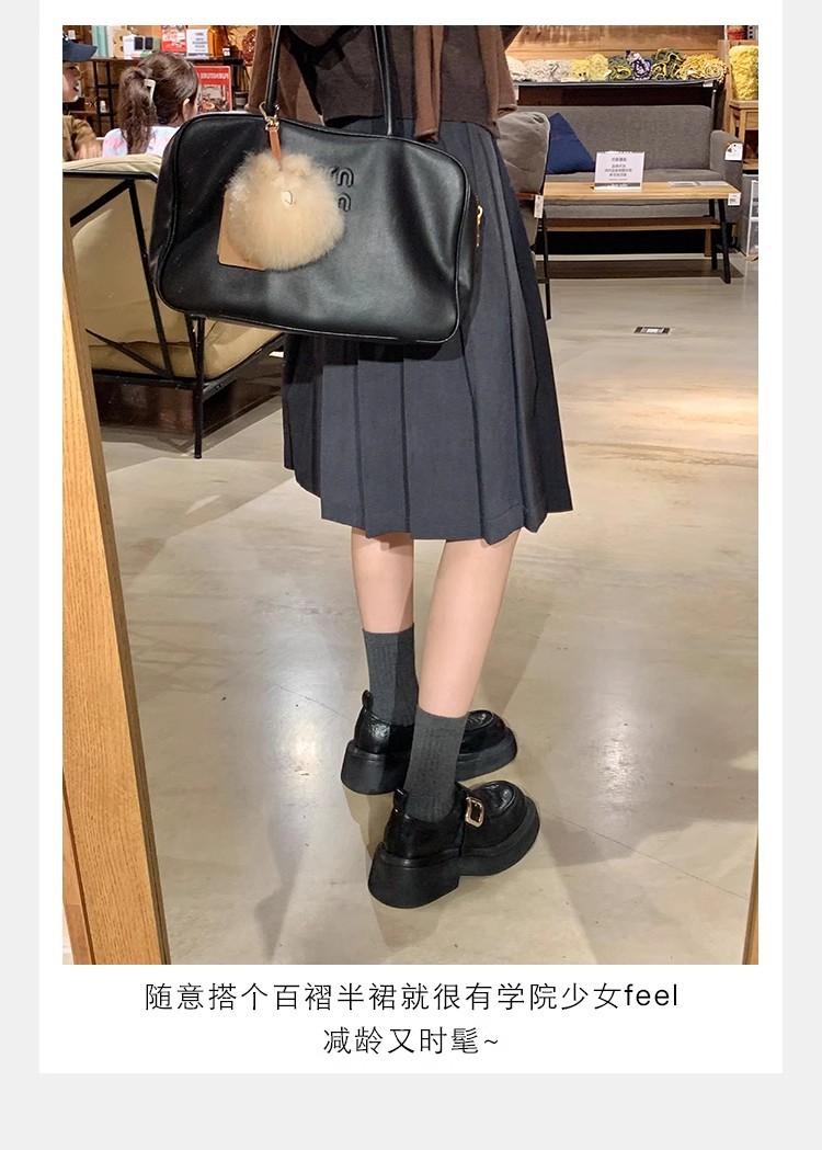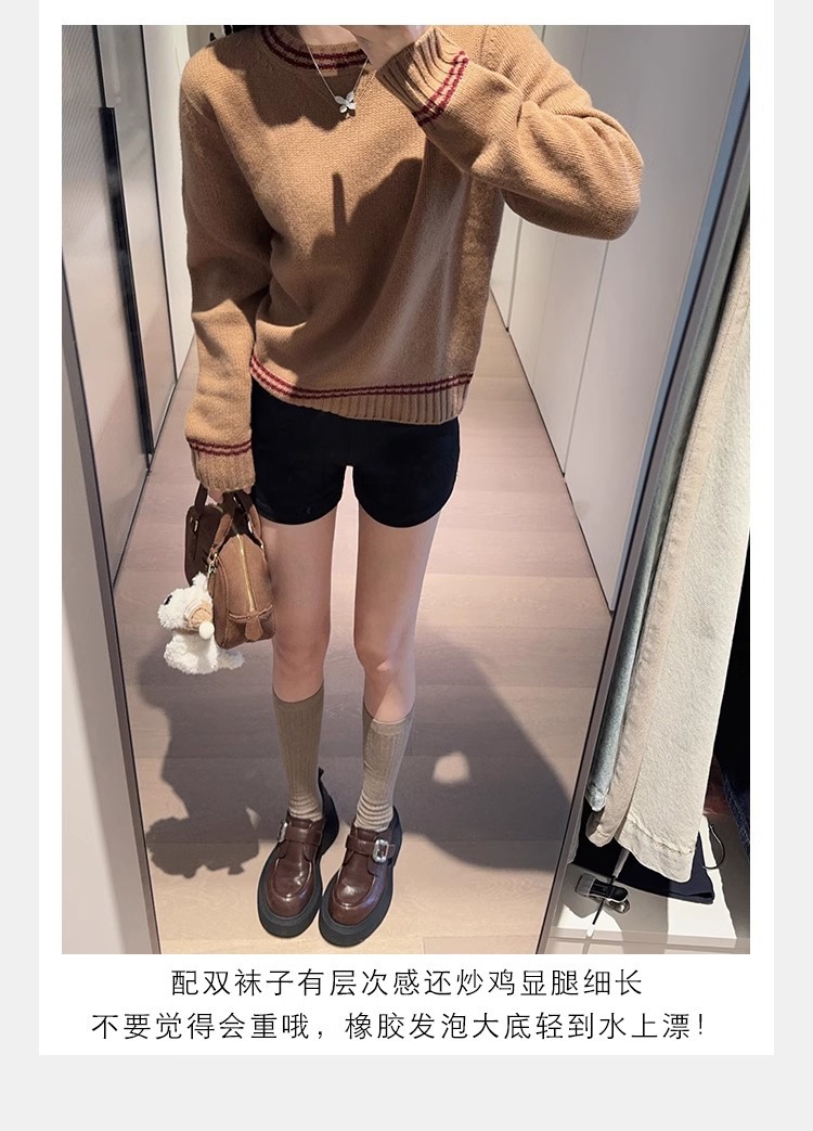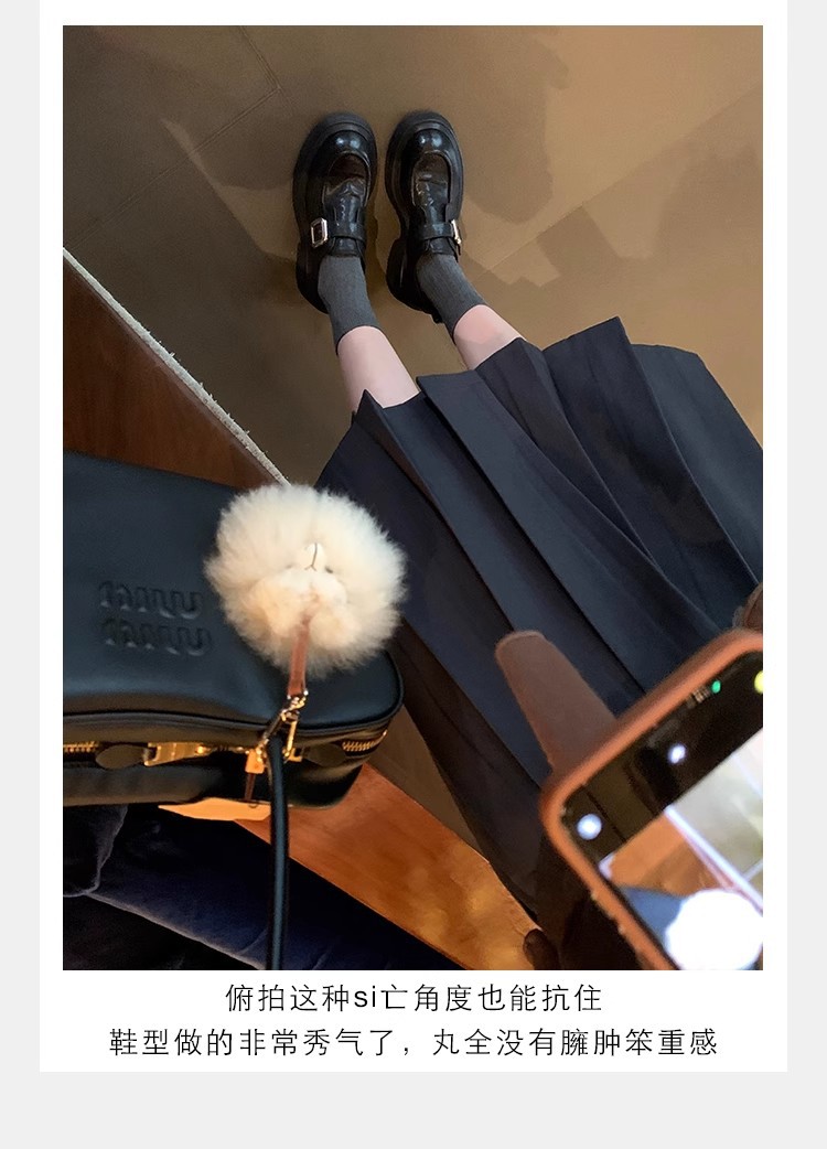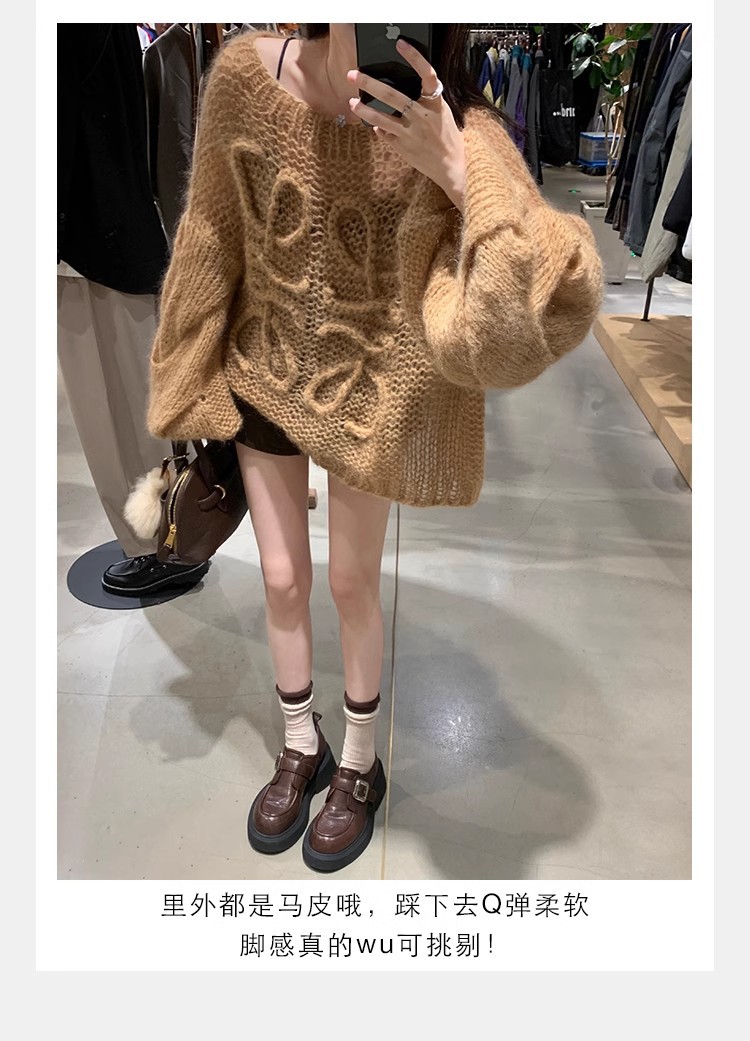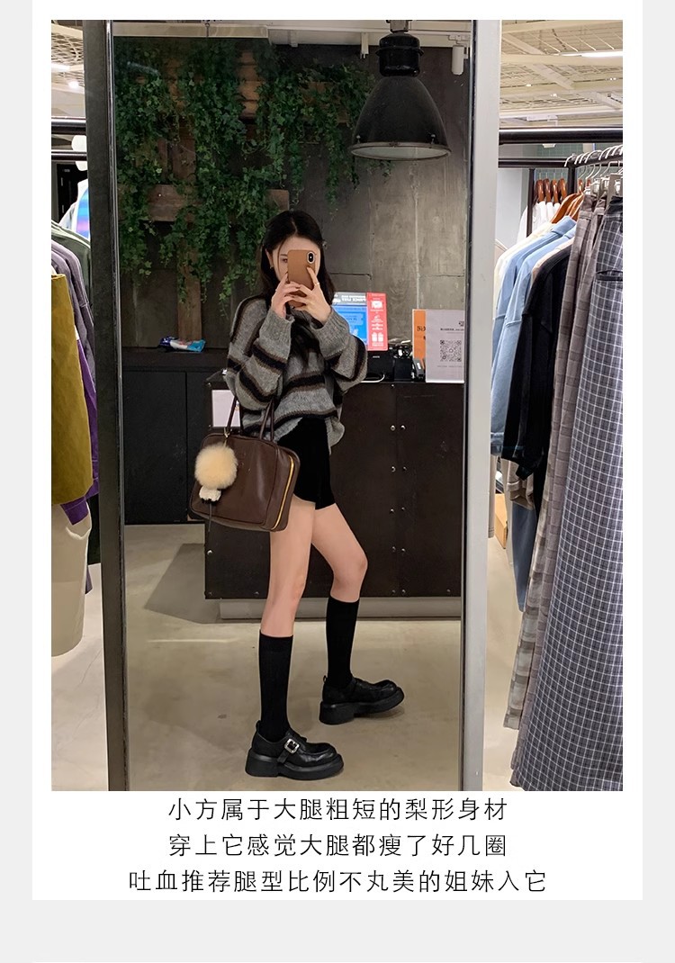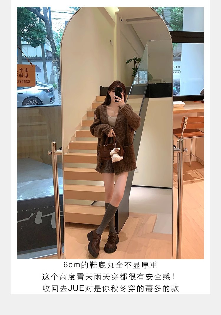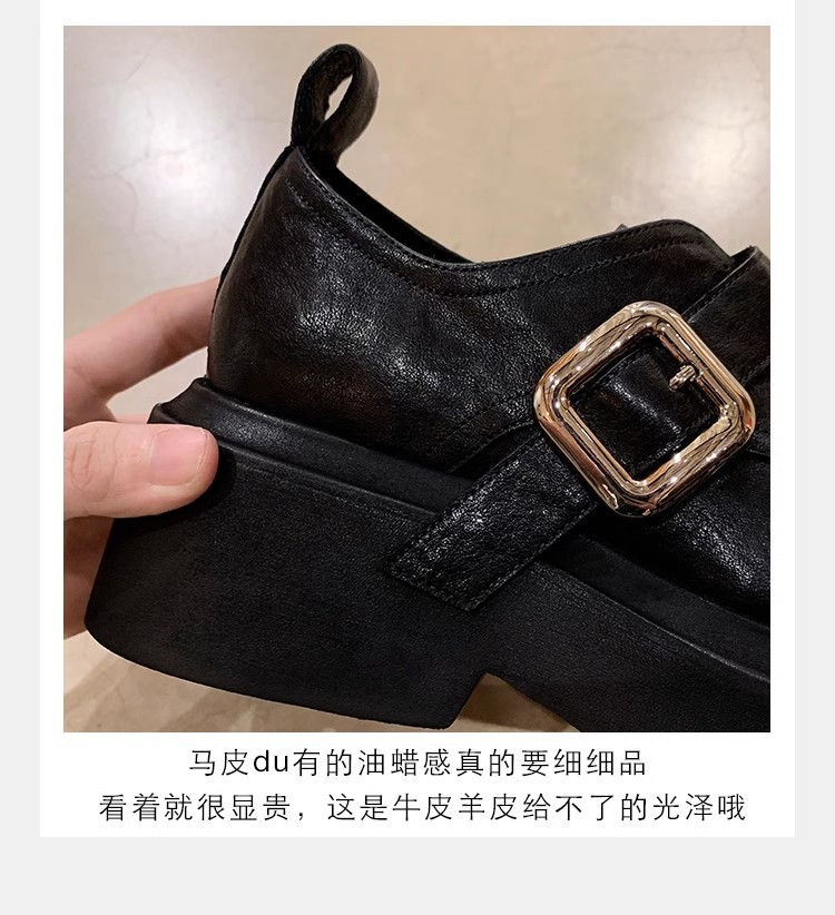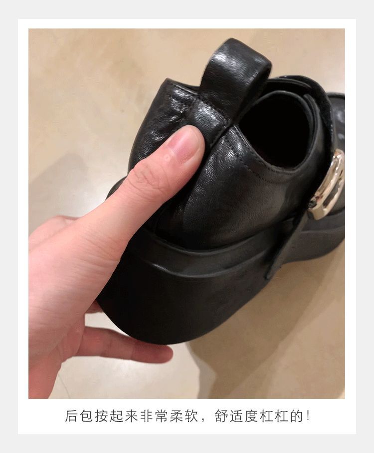 葡萄妈秋冬新款水洗马皮圆头英伦风一脚蹬粗跟乐福单鞋小皮鞋女