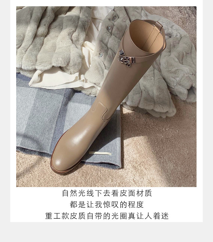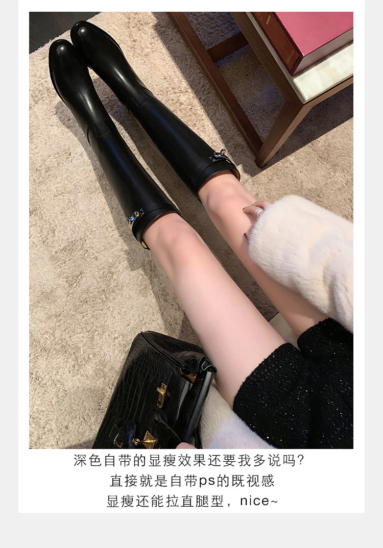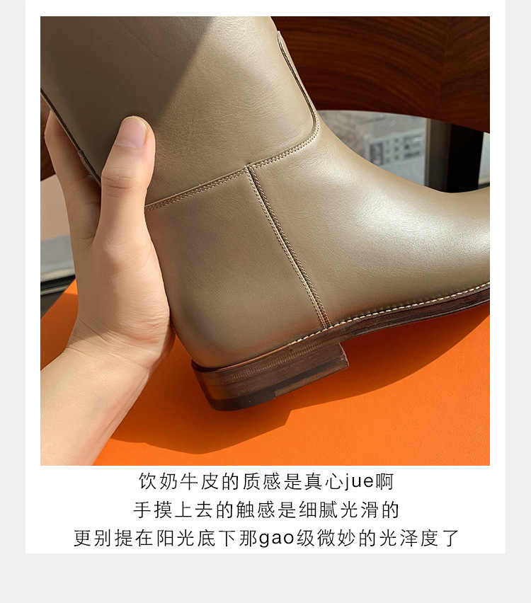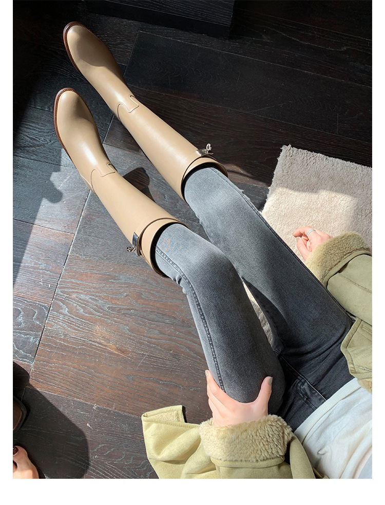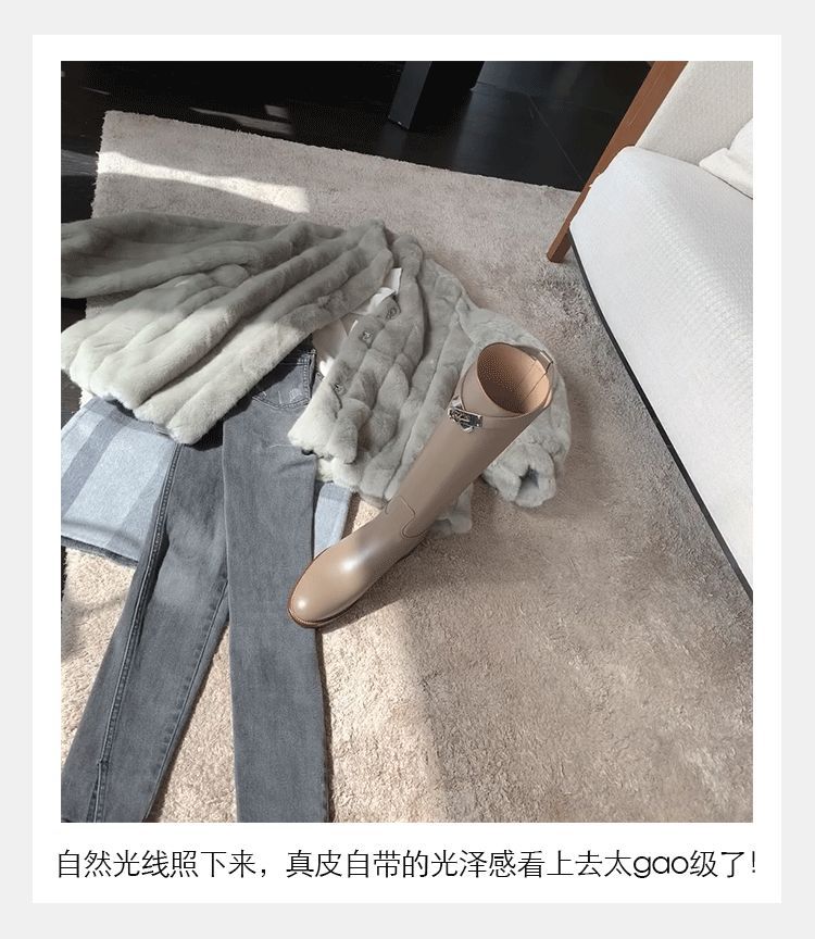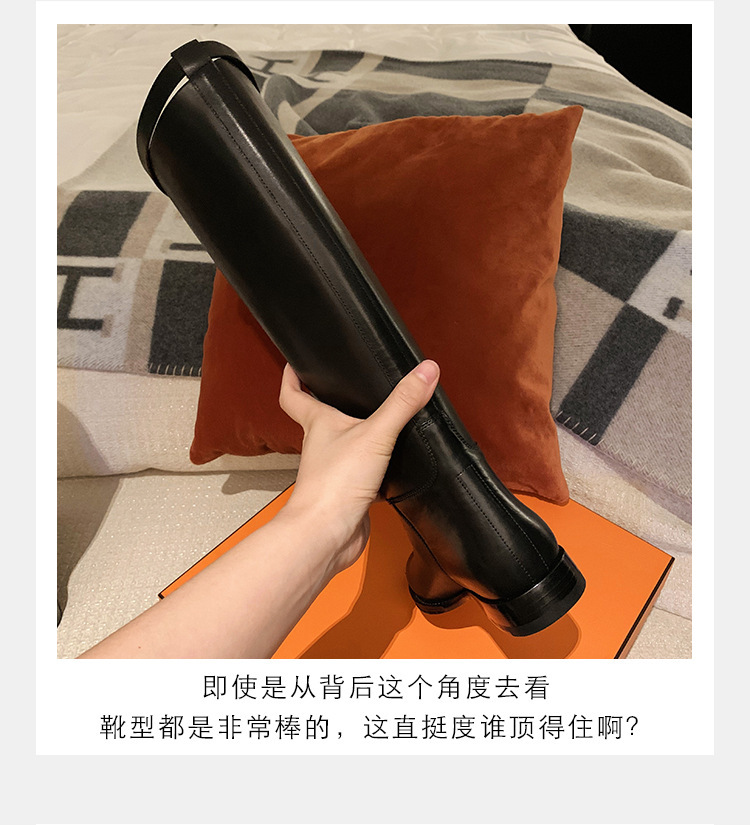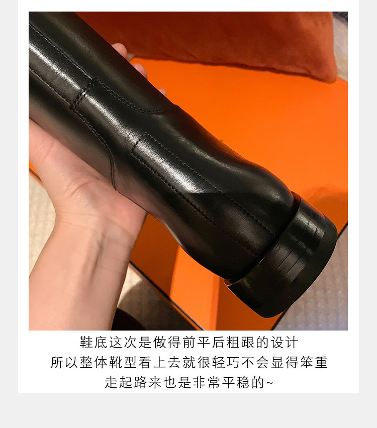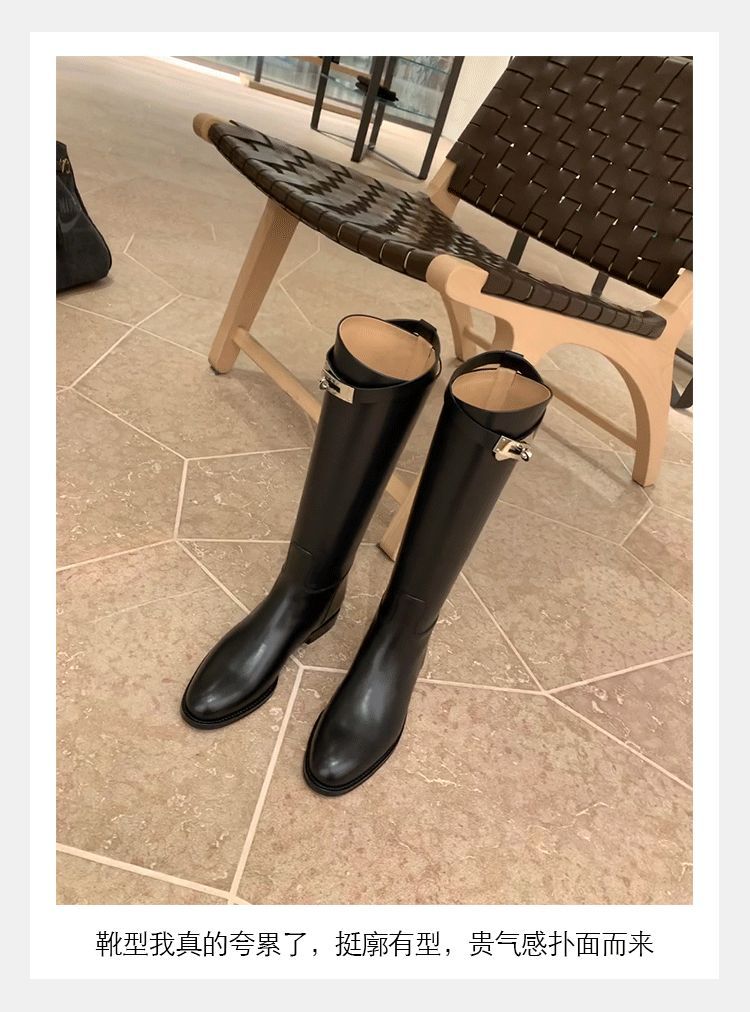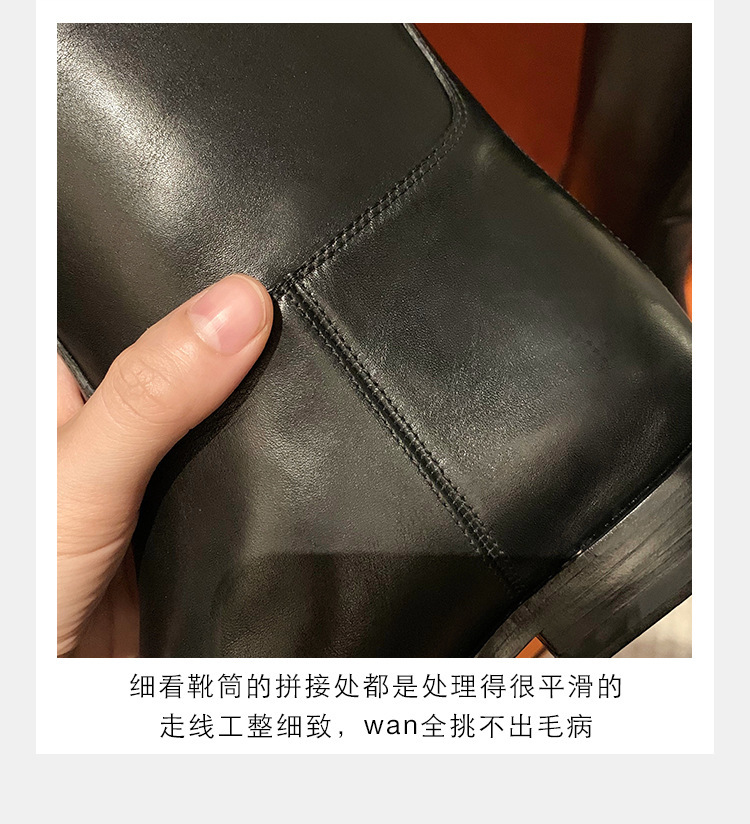 PANDA EYES 葡萄妈同款爱马仕同款秋冬新款尖头小粗跟骑士靴中高筒长女靴