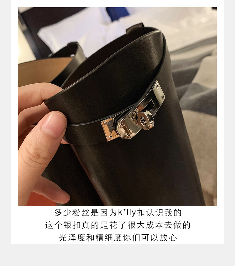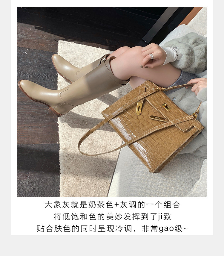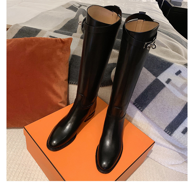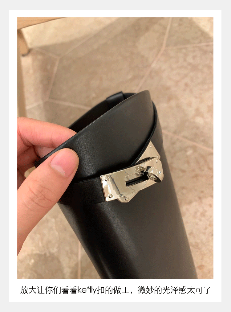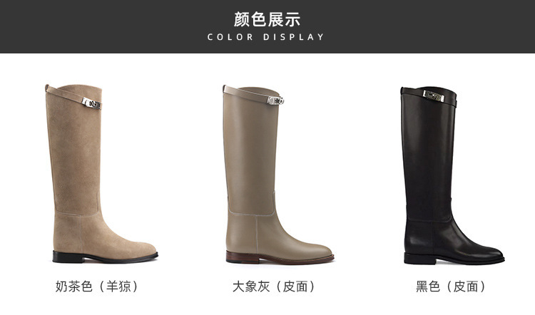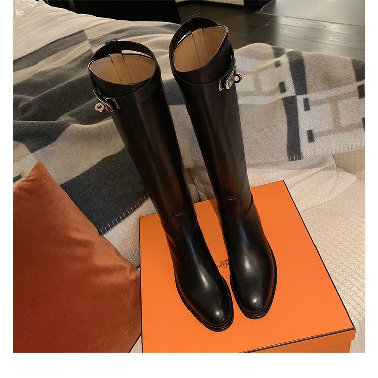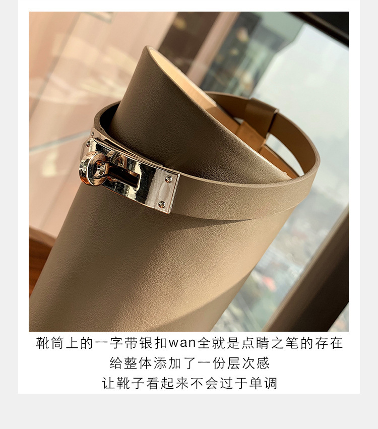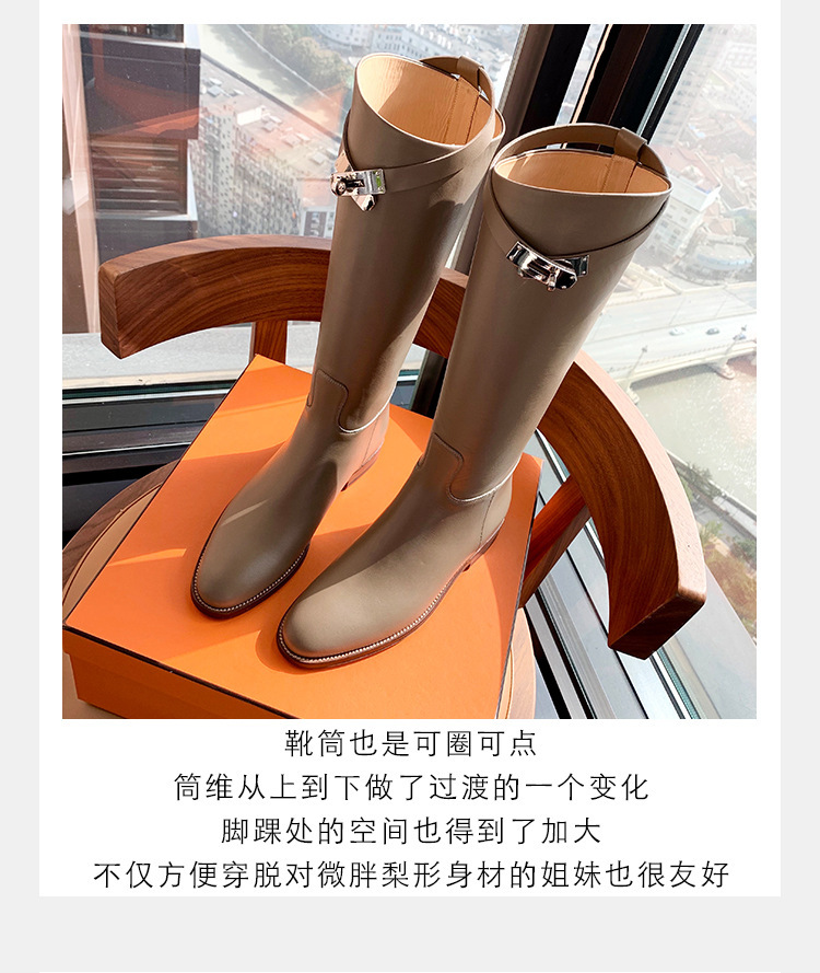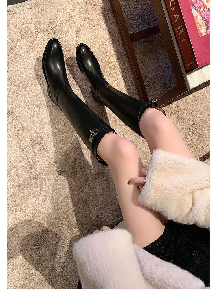 PANDA EYES 葡萄妈同款爱马仕同款秋冬新款尖头小粗跟骑士靴中高筒长女靴